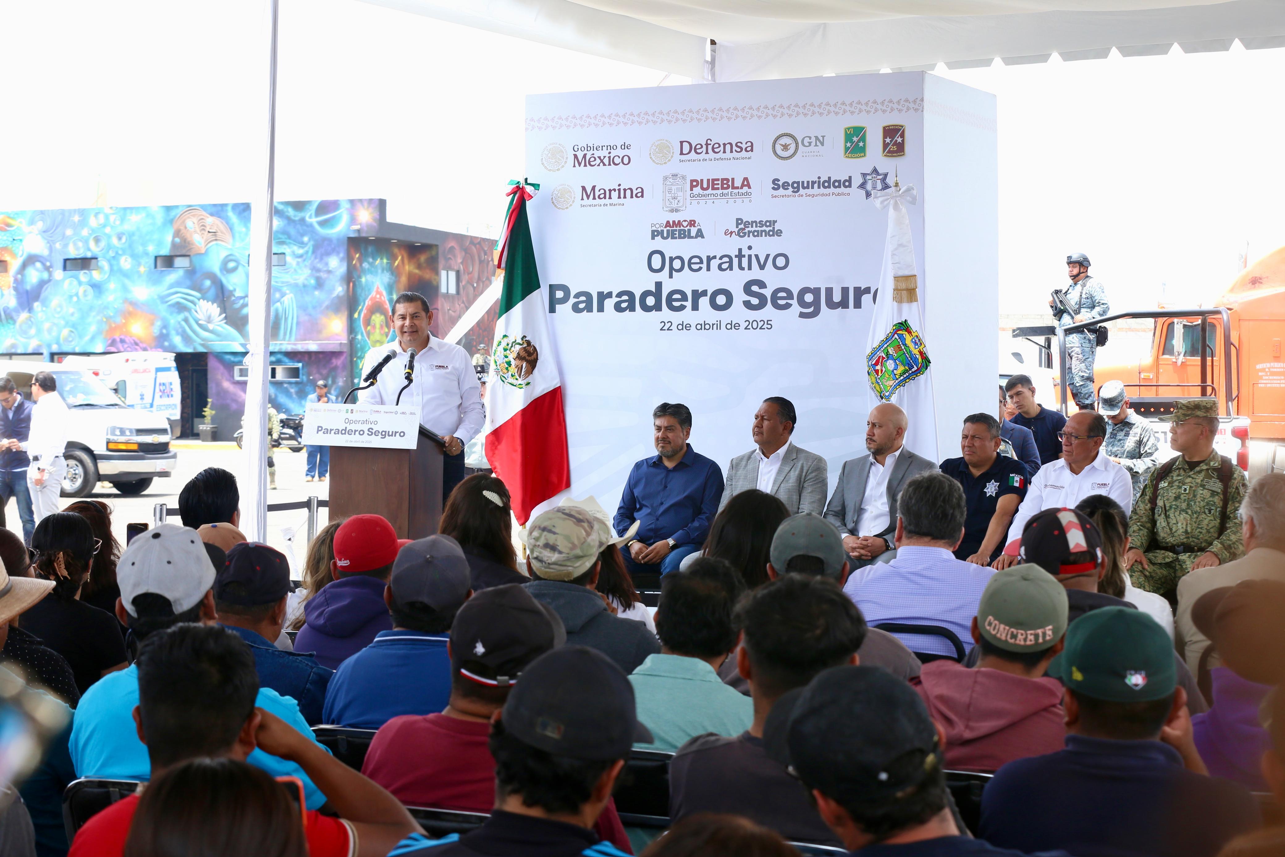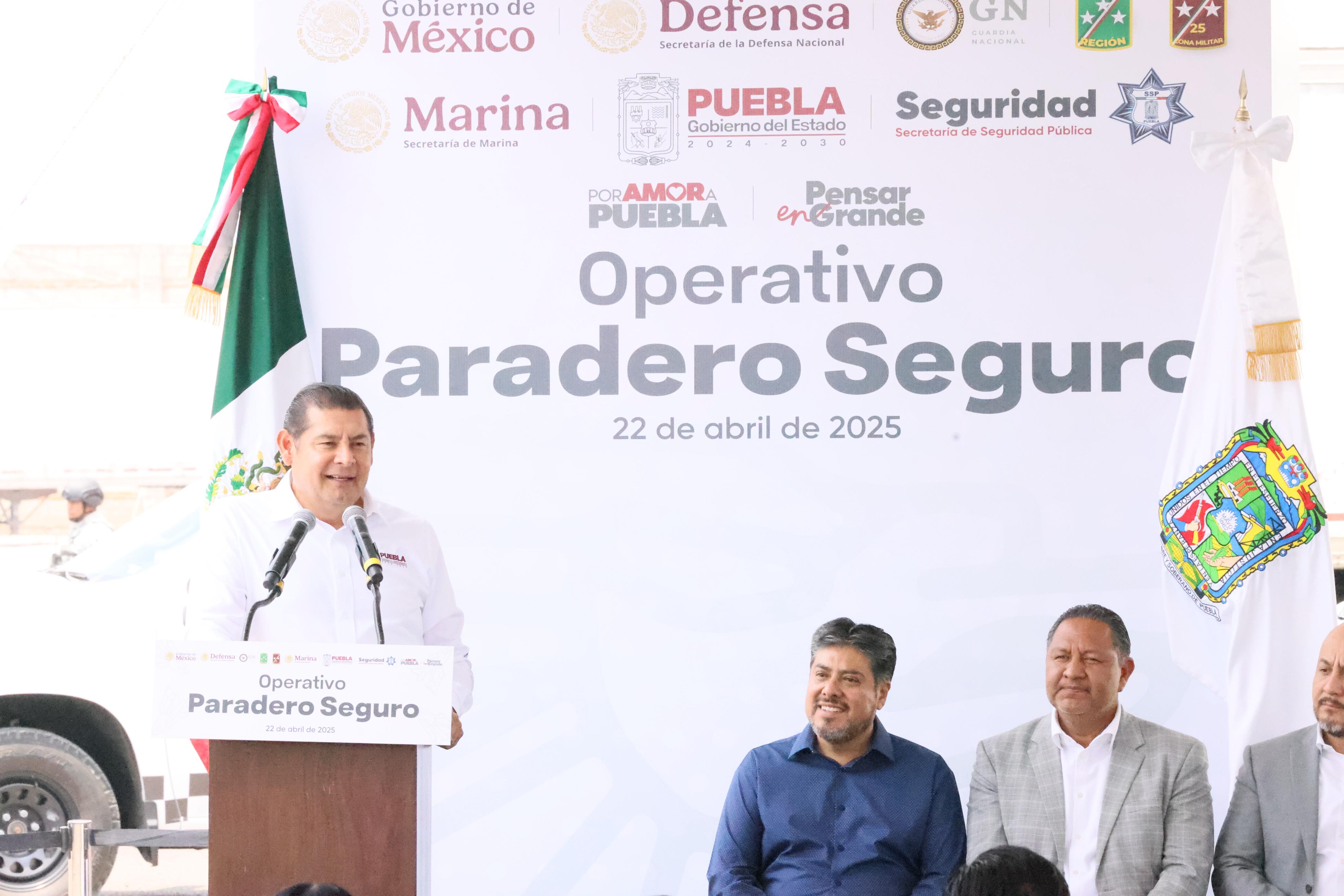 ACAJETE, Pue.- Con la firme intención de otorgar seguridad y protección a la población, en coordinación con los tres órdenes de gobierno y la iniciativa privada, el Gobernador de Puebla, Alejandro Armenta, puso en marcha el "Operativo Paradero Seguro", para que las y los poblanos que transitan en las carreteras lleguen a sus destinos con tranquilidad.