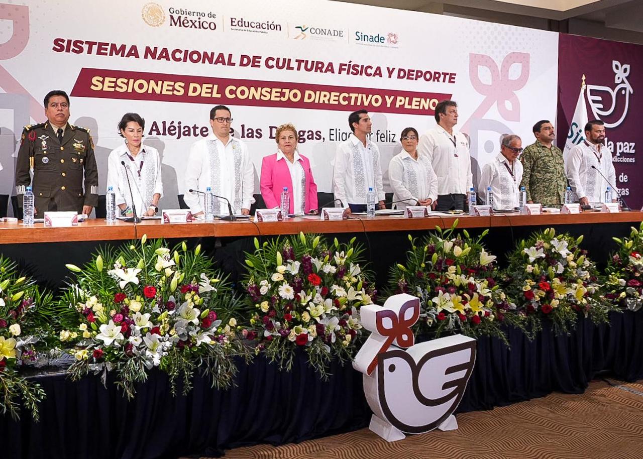 ACAPULCO, Gro.- En el marco de la Primera Sesión Ordinaria del Consejo Directivo del Sistema Nacional de Cultura Física y Deporte (SINADE), que se lleva a cabo en el puerto de Acapulco, Guerrero, la secretaria de Deporte y Juventud, Gaby “La Bonita” Sánchez, participa como representante de la entidad, sumándose a los trabajos de fortalecimiento del deporte en México.