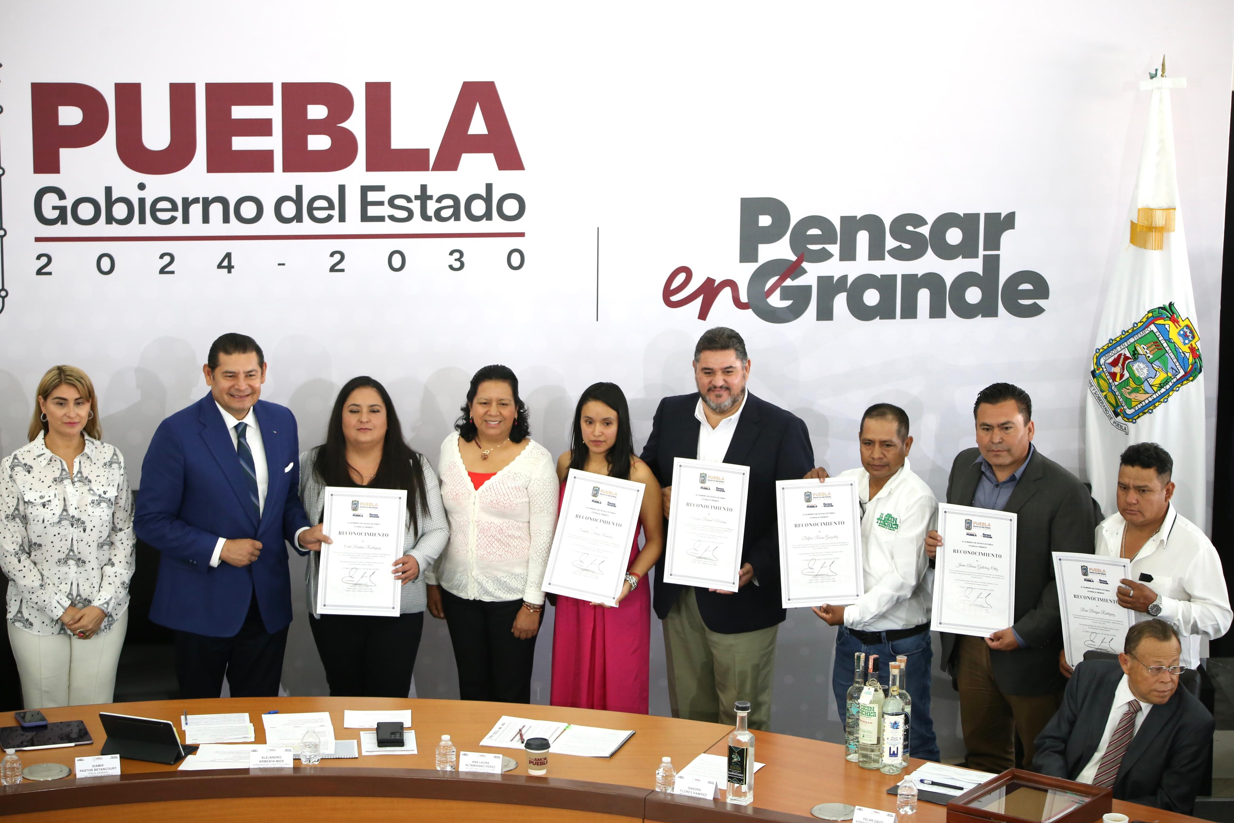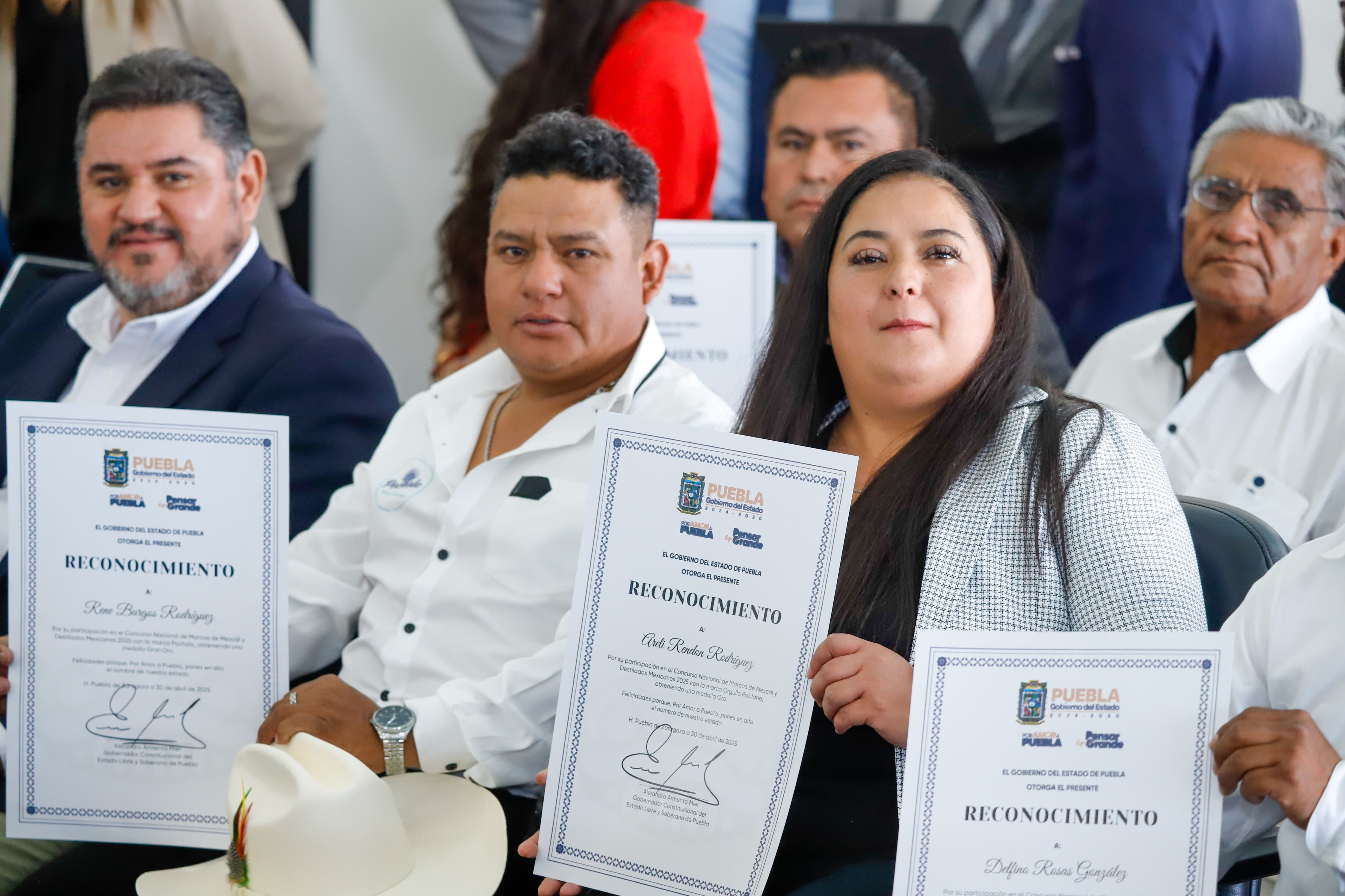 CIUDAD DE PUEBLA, Pue.- El mezcal poblano destaca y brilla en escenarios nacionales e internacionales, el Gobernador de Puebla, Alejandro Armenta, entregó reconocimiento a las y los productores que participaron en la edición XIV del Concurso Nacional de Marcas de Mezcal y Destilados Mexicanos 2025, quienes obtuvieron 60 medallas.