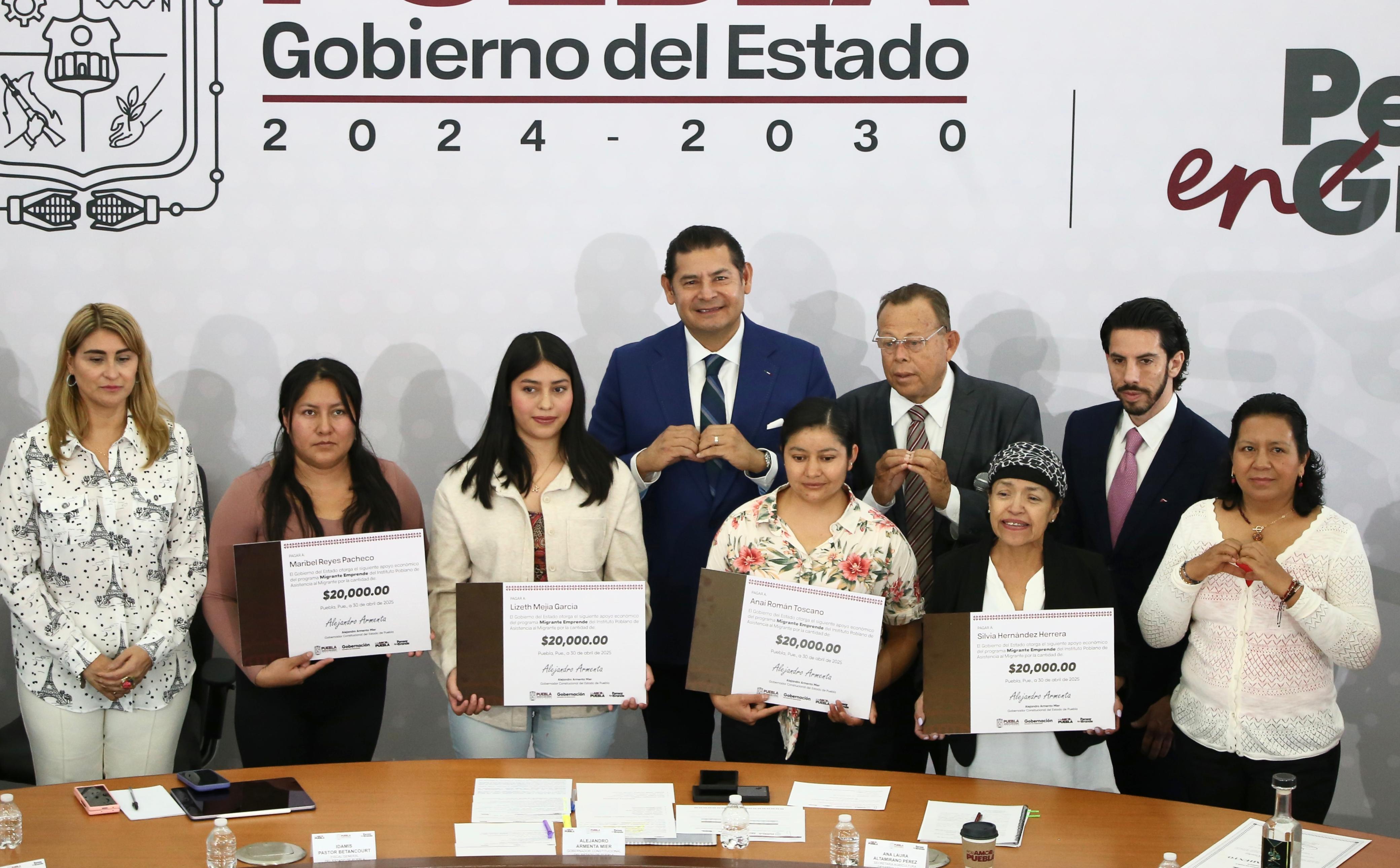 Ciudad de Puebla, Puebla. - Bajo el gobierno humano que atiende a las y los migrantes, el Gobernador del estado, Alejandro Armenta, entregó cheques a beneficiarios del Programa Migrante Emprende, a través de la Secretaría de Gobernación y en coordinación con el Instituto Poblano de Asistencia al Migrante.