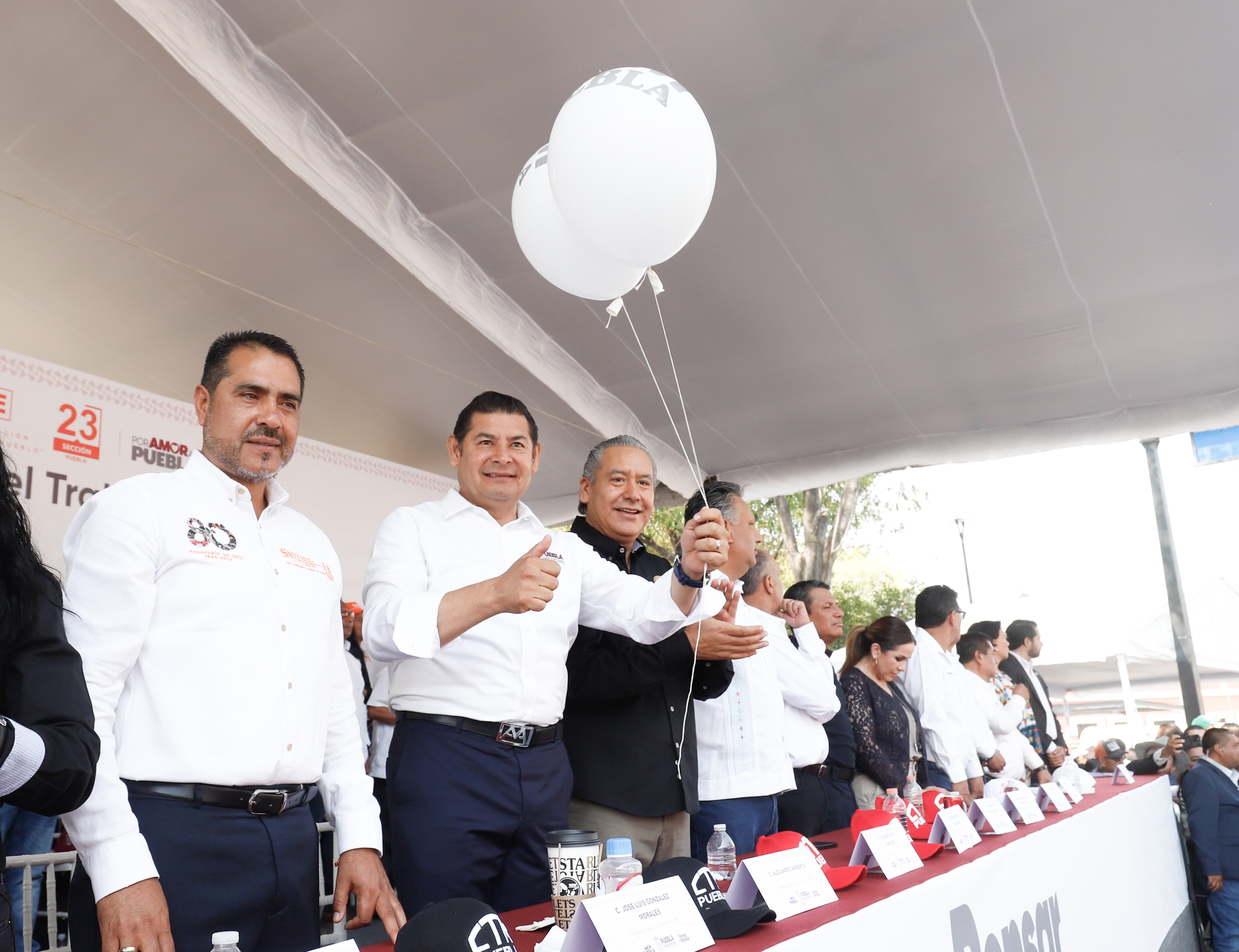 El gobernador fue acompañado por Leobardo Soto Martínez, secretario general de la CTM Puebla y Alfredo Gómez Palacios, secretario general de la Sección 51 del sindicato magisterial (SNTE); así como por integrantes de su gabinete como Samuel Aguilar Pala, secretario de Gobernación y Víctor Gabriel Chedraui, secretario de Desarrollo Económico y Trabajo.