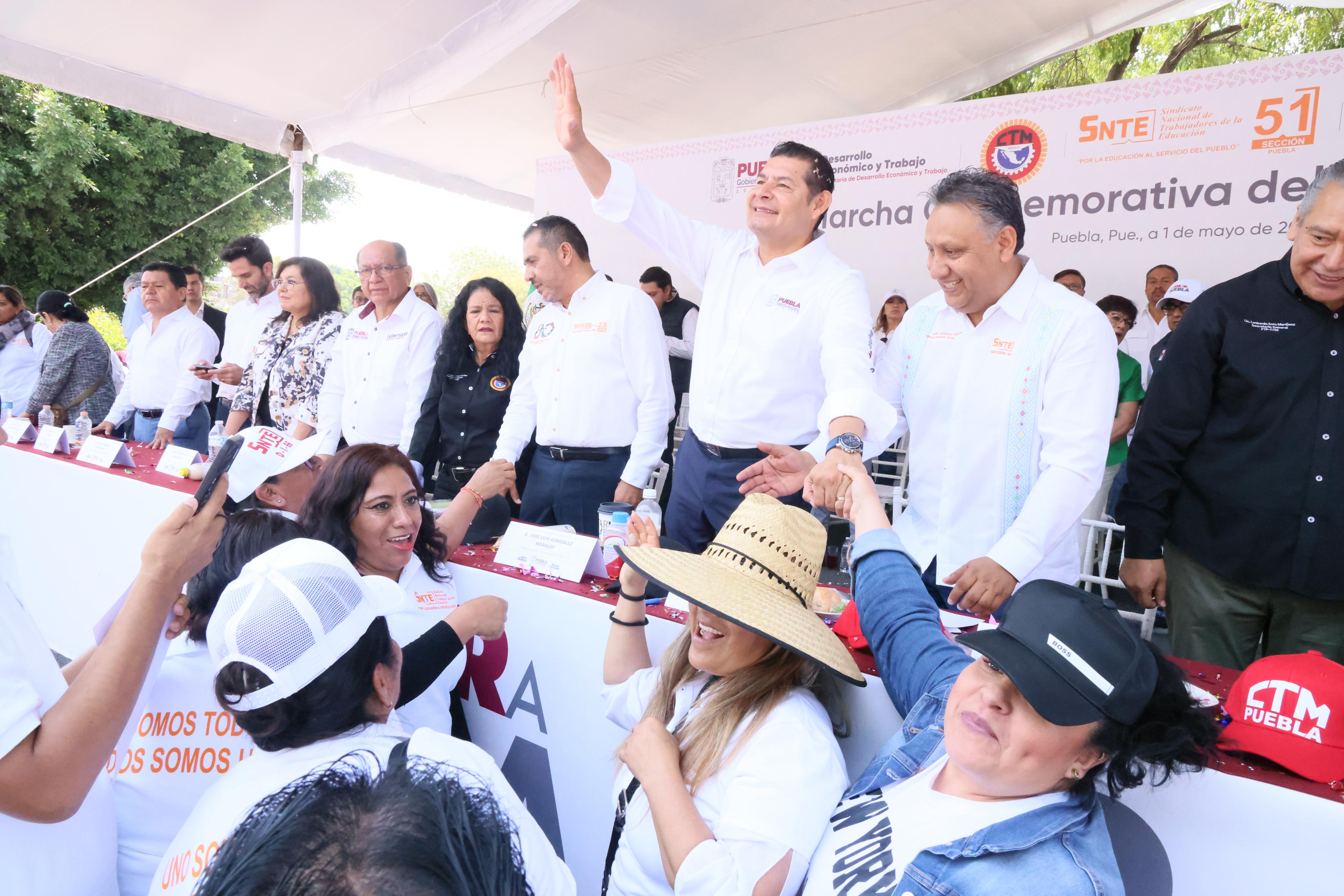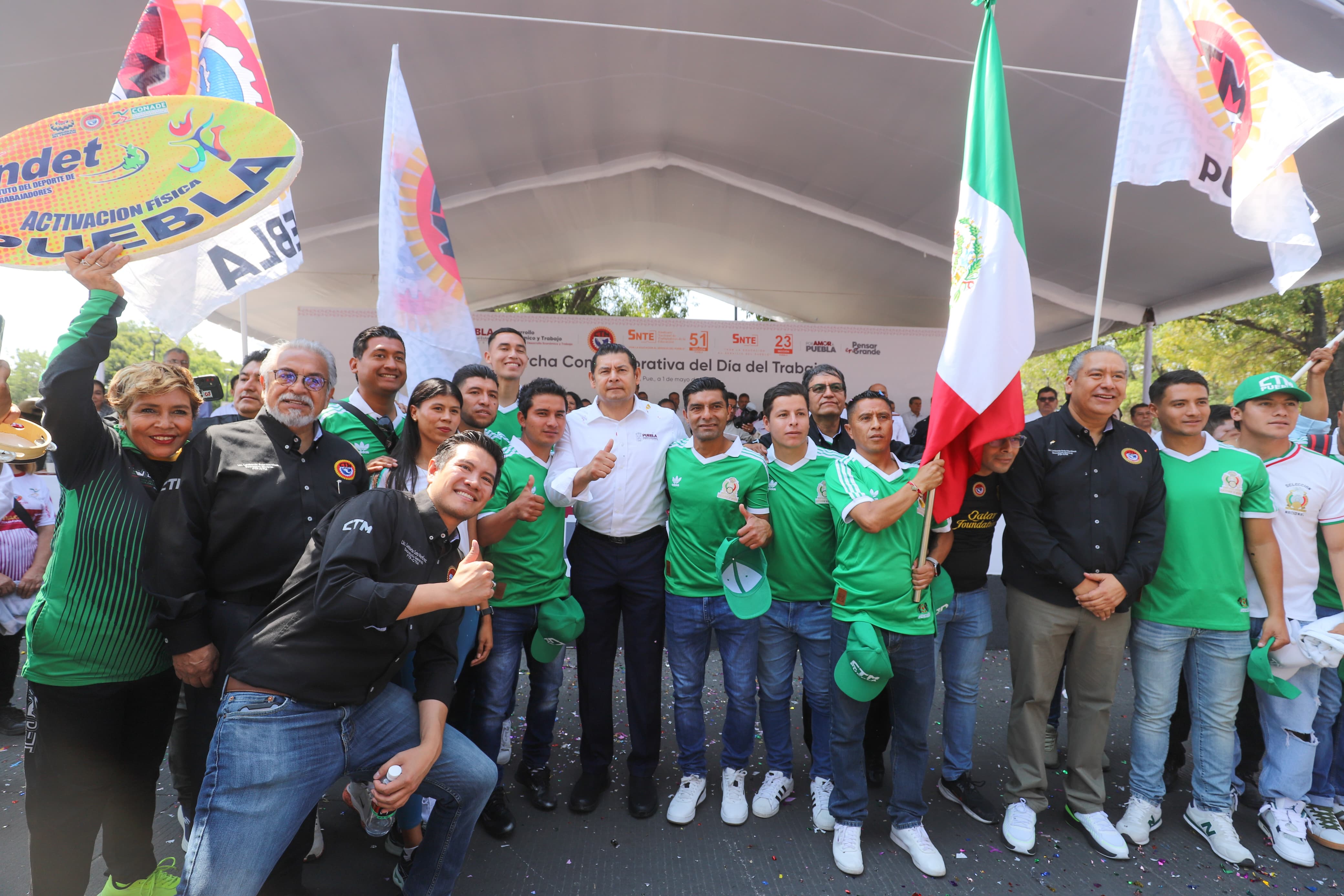 -En la Conmemoración del Día Internacional del Trabajo, el mandatario estatal retomó la cercanía con sindicatos y trabajadores poblanos al marchar este 1o de Mayo; escuchó las demandas y consignas de la clase obrera.