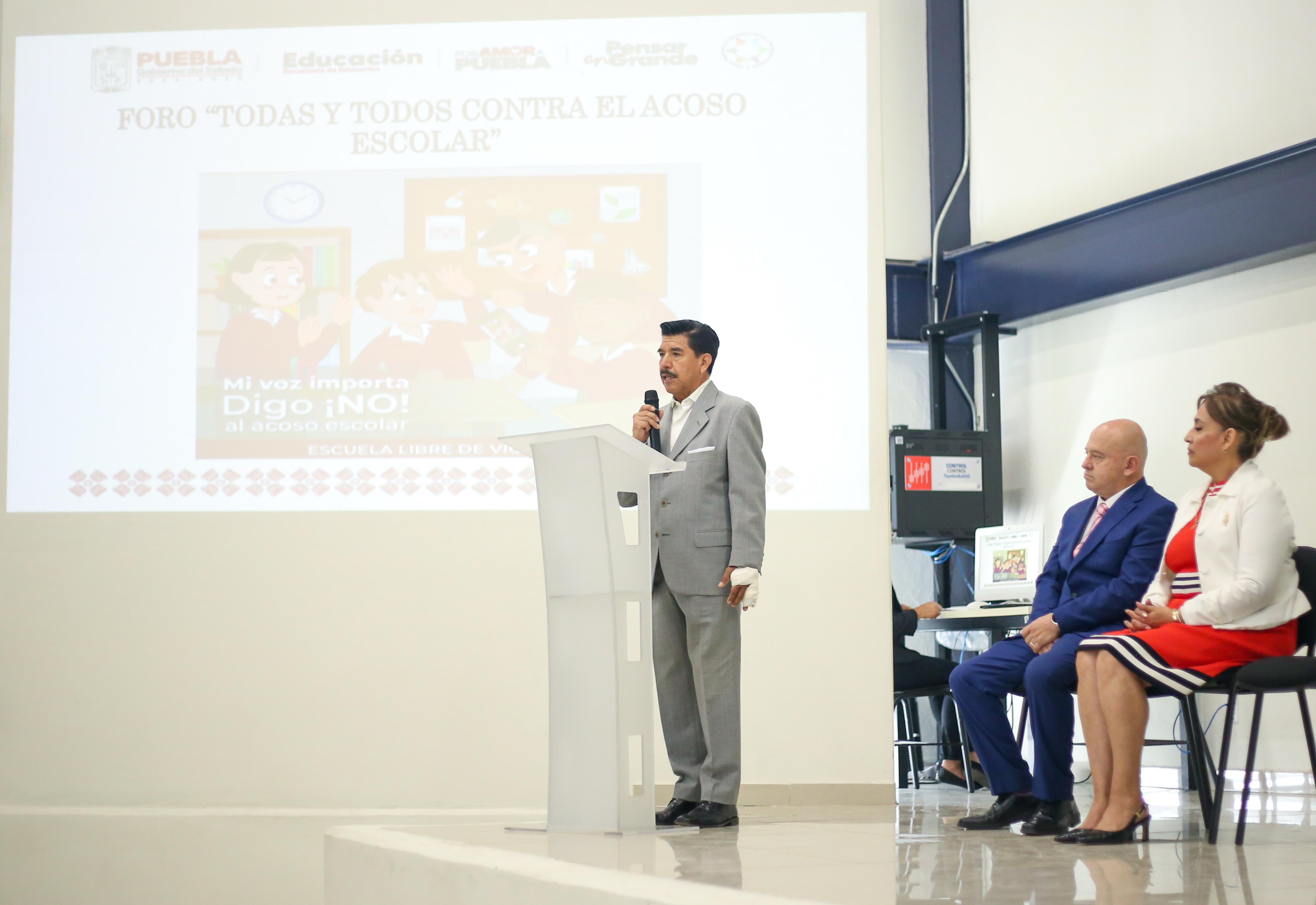 CIUDAD DE PUEBLA, Pue.- Con el objetivo de generar conciencia y acciones concretas para construir entornos escolares seguros, el Gobierno del Estado de Puebla, a través de la Secretaría de Educación, llevó a cabo el primer foro “Todas y Todos Contra el Acoso Escolar”, en el que participaron autoridades educativas y de derechos humanos, así como miembros de la comunidad educativa.