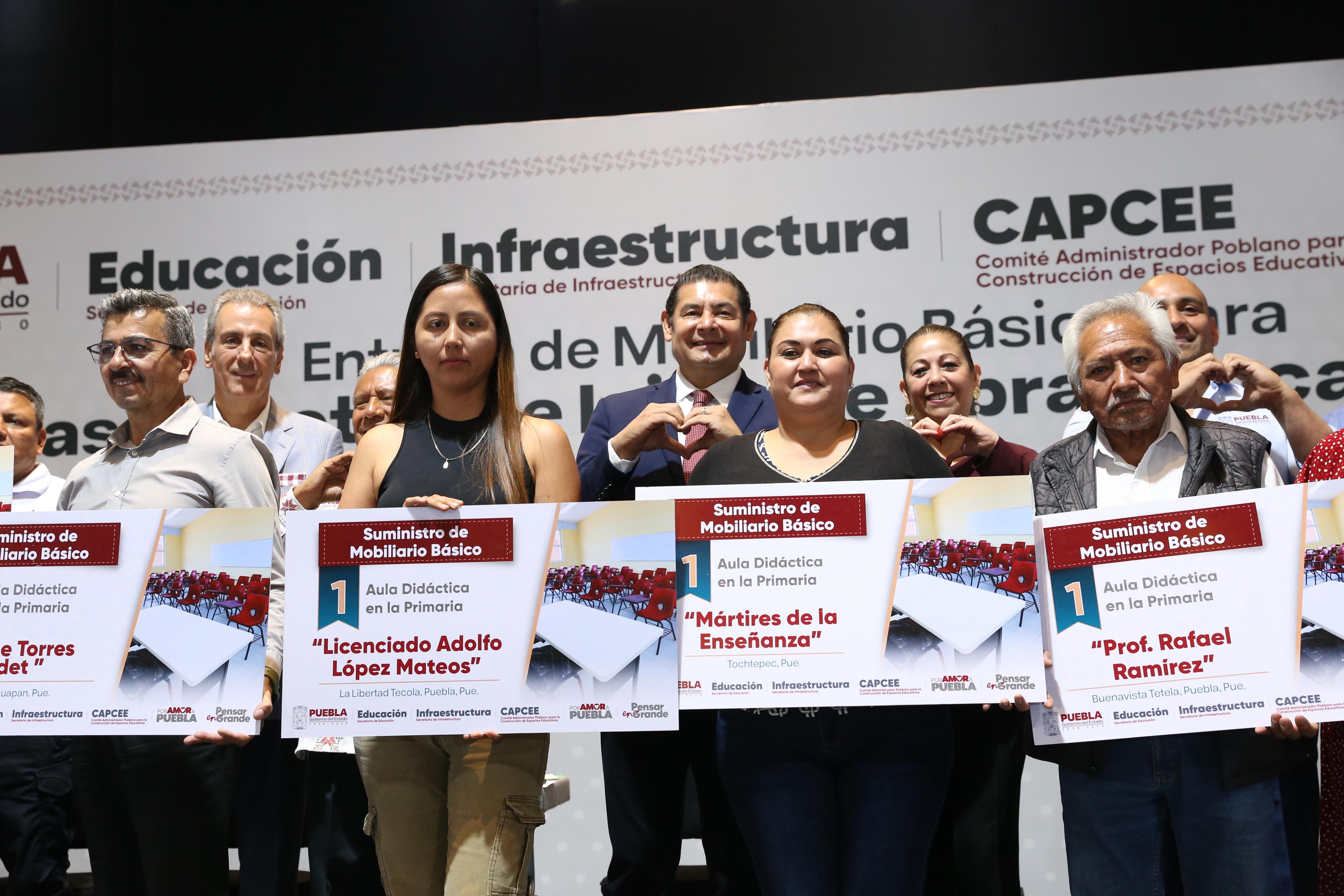 El director general del CAPCEE, Carlos Ochoa Rodríguez, comentó que con la visión transformadora de la presidenta de México, Claudia Sheinbaum y el compromiso humanista del gobernador, Alejandro Armenta, por fortalecer la infraestructura escolar y hacer justicia social, se realizó una inversión de más de 76 millones de pesos con más de 5 mil 300 piezas de mobiliario básico, para aulas didácticas en 42 planteles, de distintos niveles educativos. Además informó que se iniciaron 31 obras de construcción y rehabilitación de aulas y sanitarios, instalación de paneles solares y sistemas de captación pluvial.