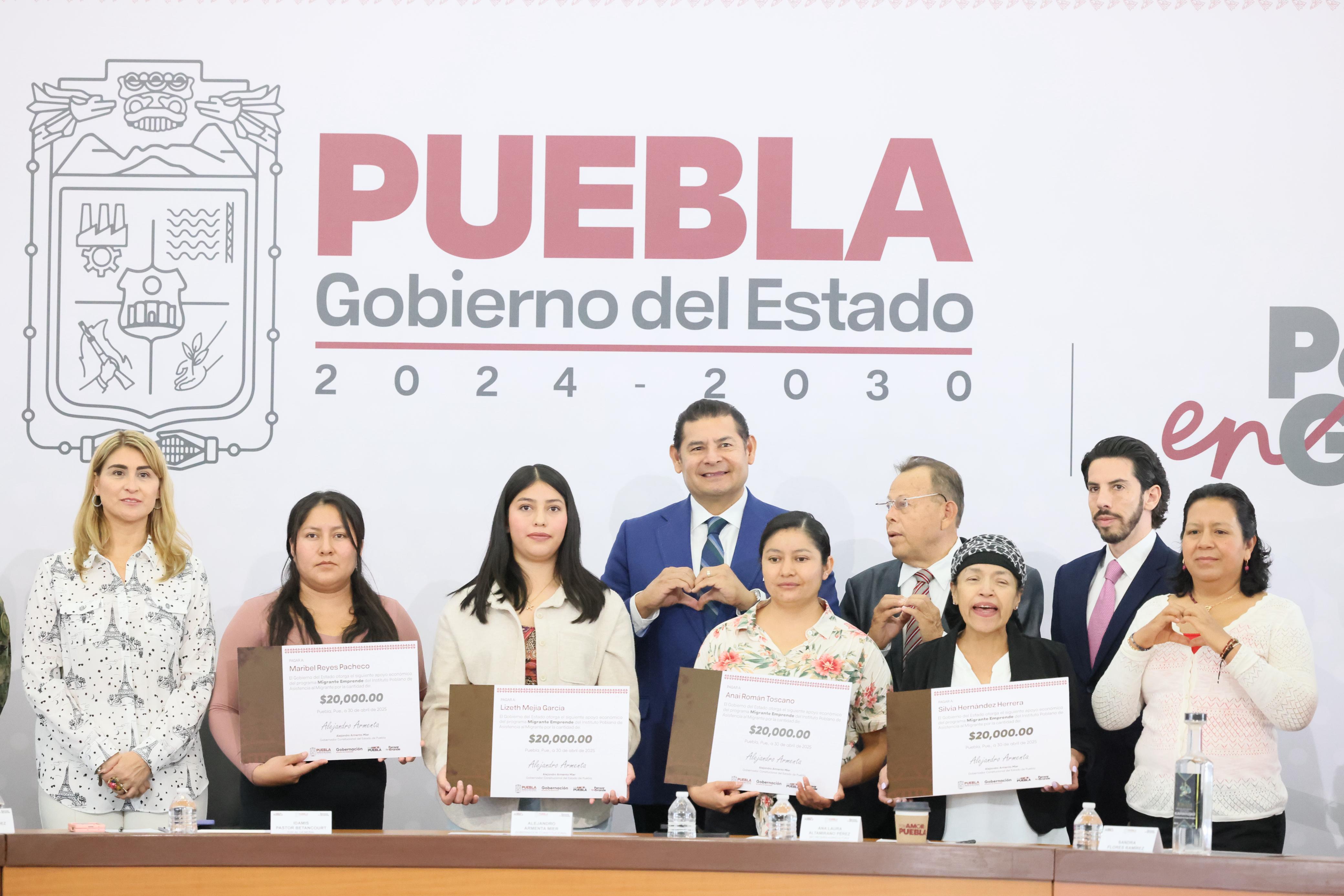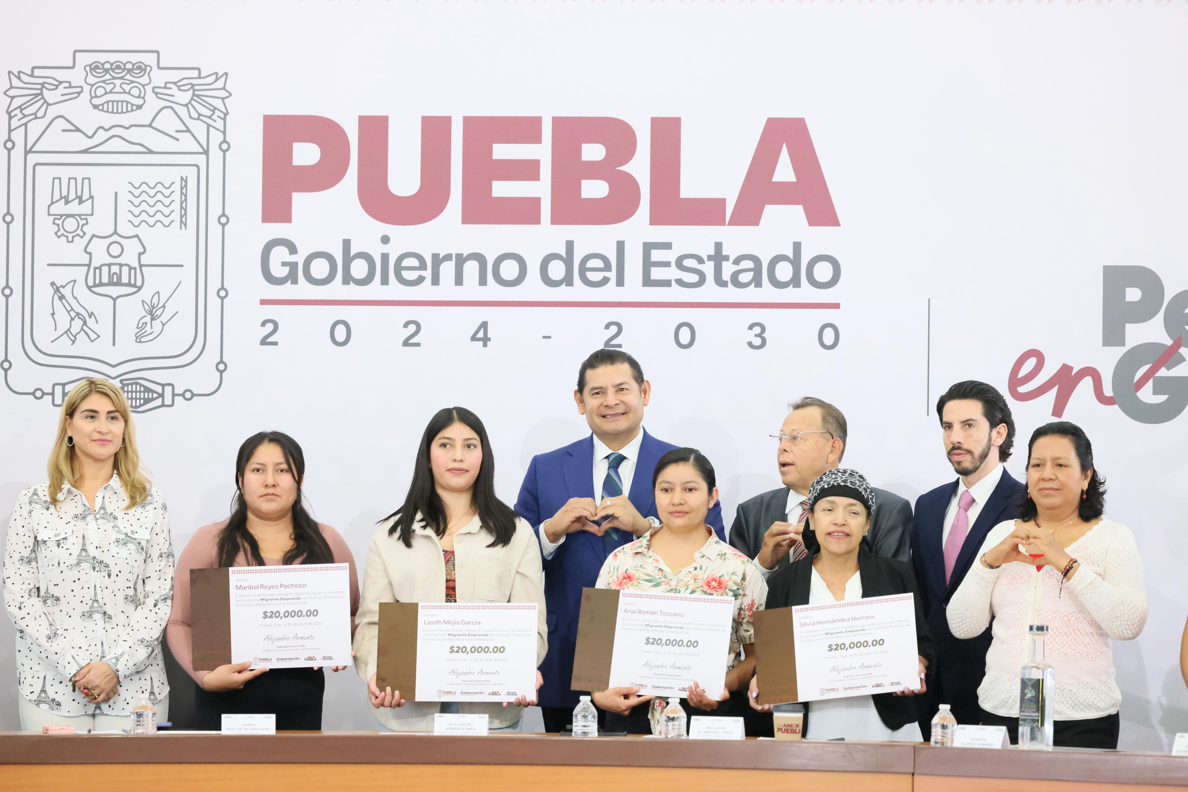 Con el compromiso de fortalecer el sueño poblano y bajo la directriz de la presidenta Claudia Sheinbaum, el gobernador de Puebla, Alejandro Armenta, encabezó la entrega de apoyos económicos a migrantes repatriados para impulsar sus proyectos de emprendimiento. “Nuestras mujeres migrantes son empresarias, son generadoras de empleo, de riqueza, y hoy, por amor a Puebla, piensan en grande”, destacó el mandatario estatal ante líderes migrantes provenientes de Nueva York, Los Ángeles, Passaic y otras regiones.