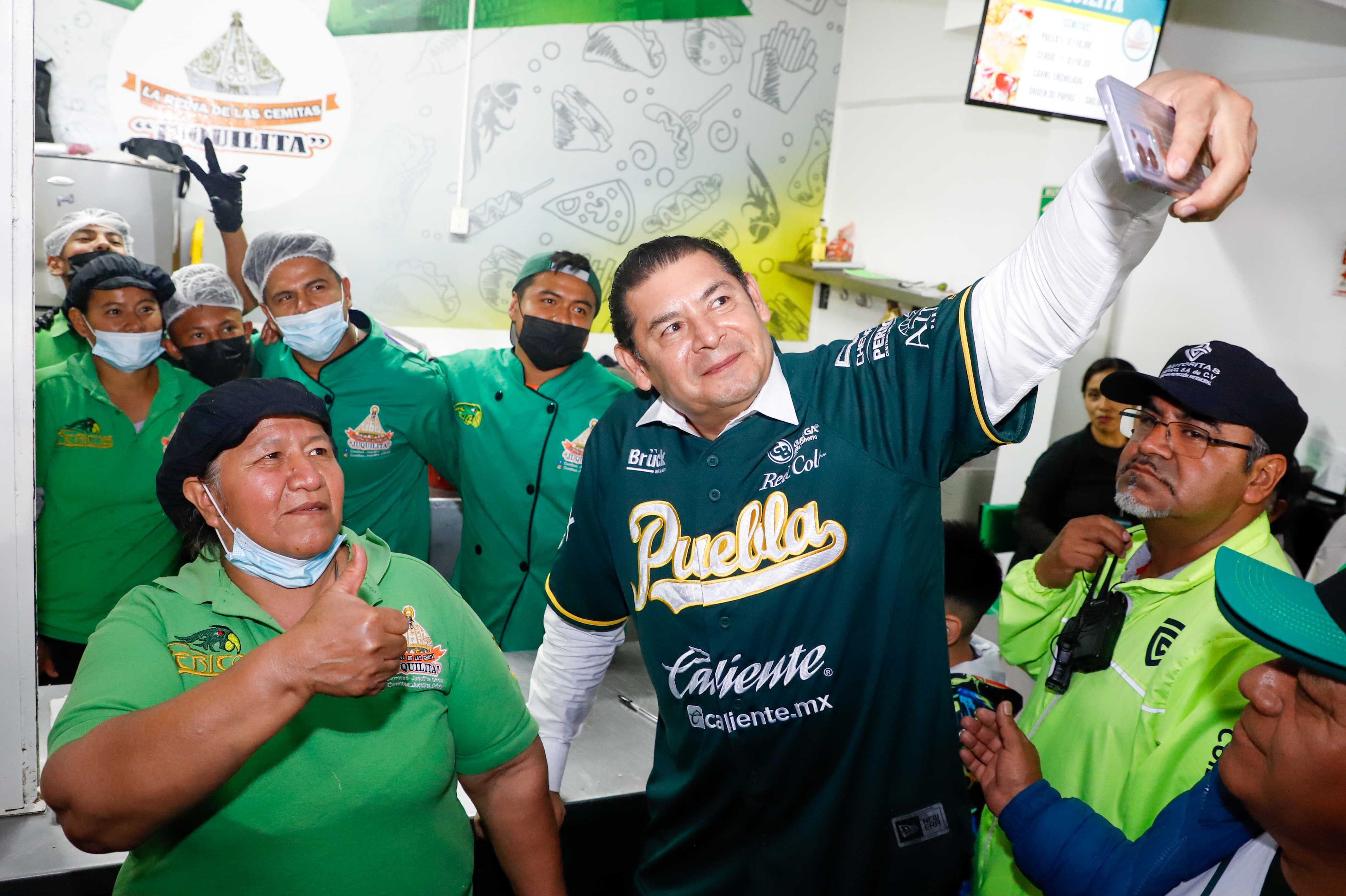 Durante su visita el gobernador Alejandro Armenta degustó de una cemita familiar, que ya es tradición en cualquier partido de los Pericos de Puebla y reforzó la seguridad en estrecha coordinación con los tres órdenes de gobierno y las fuerzas armadas, para tranquilidad de las y los poblanos.
