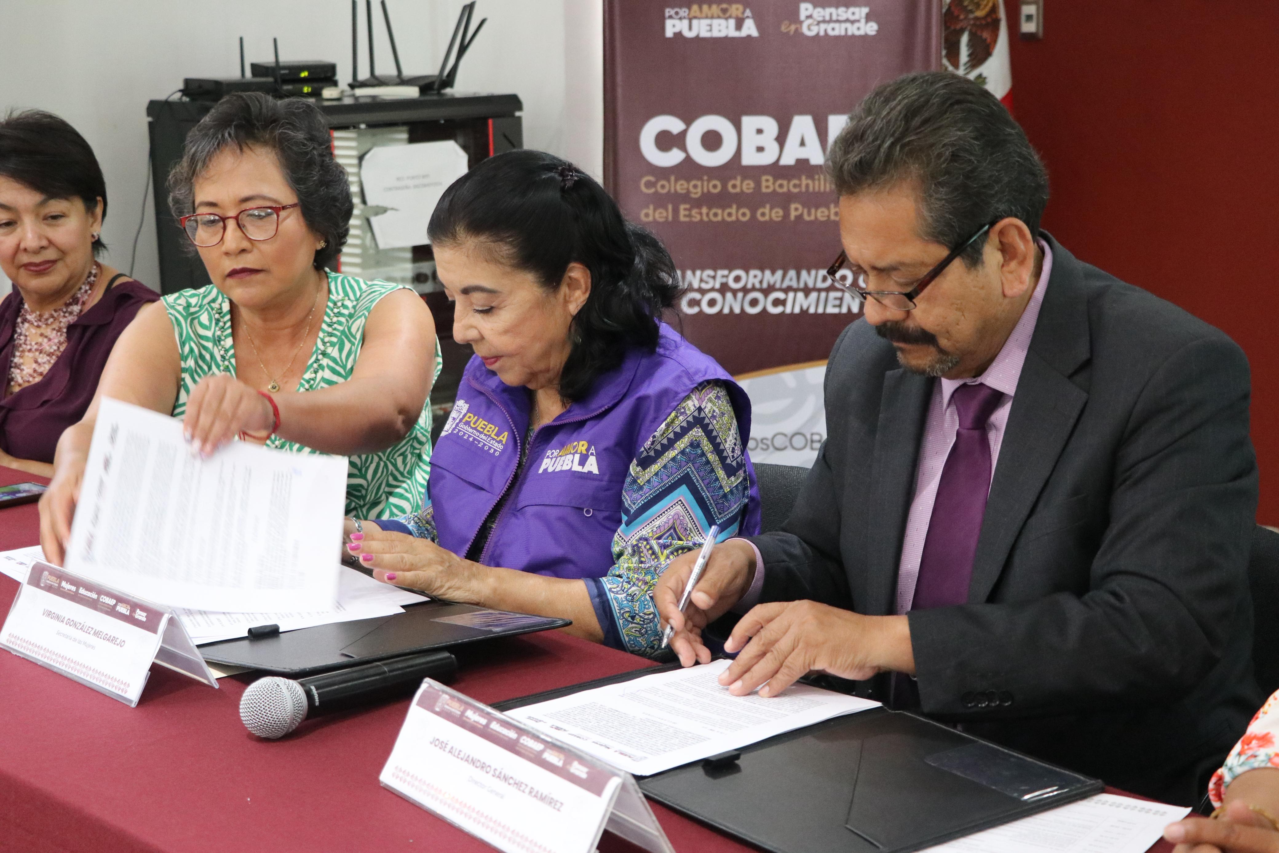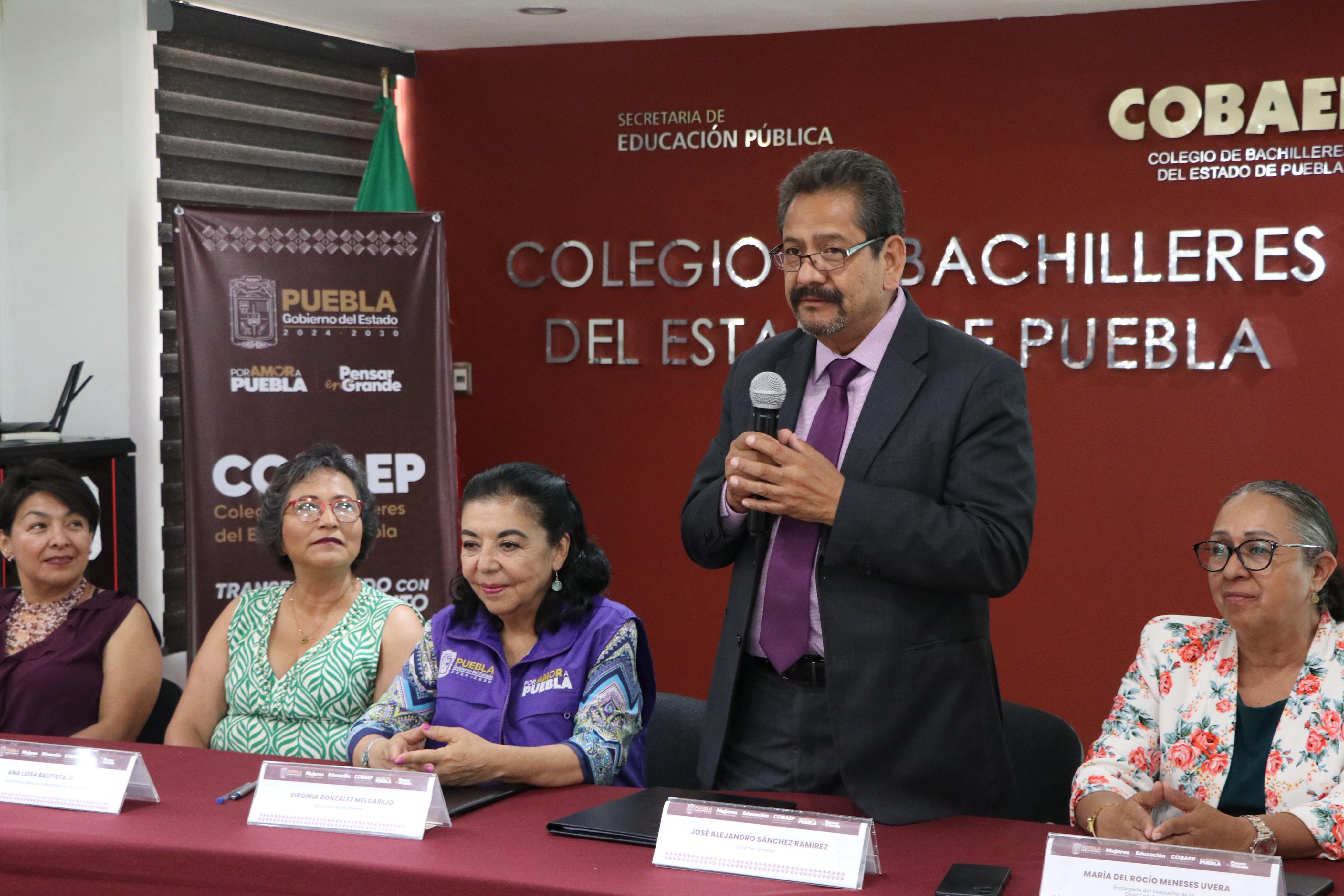 Por su parte, el director general del COBAEP, José Alejandro Sánchez Ramírez, reconoció la importancia de consolidar la equidad al interior del subsistema educativo. Afirmó que hombres y mujeres deben contar con las mismas oportunidades para desarrollarse profesionalmente. Asimismo, señaló que este convenio permitirá ofrecer capacitación especializada, atención integral a la comunidad escolar y sesiones informativas dirigidas al estudiantado, todo ello Por Amor a Puebla.