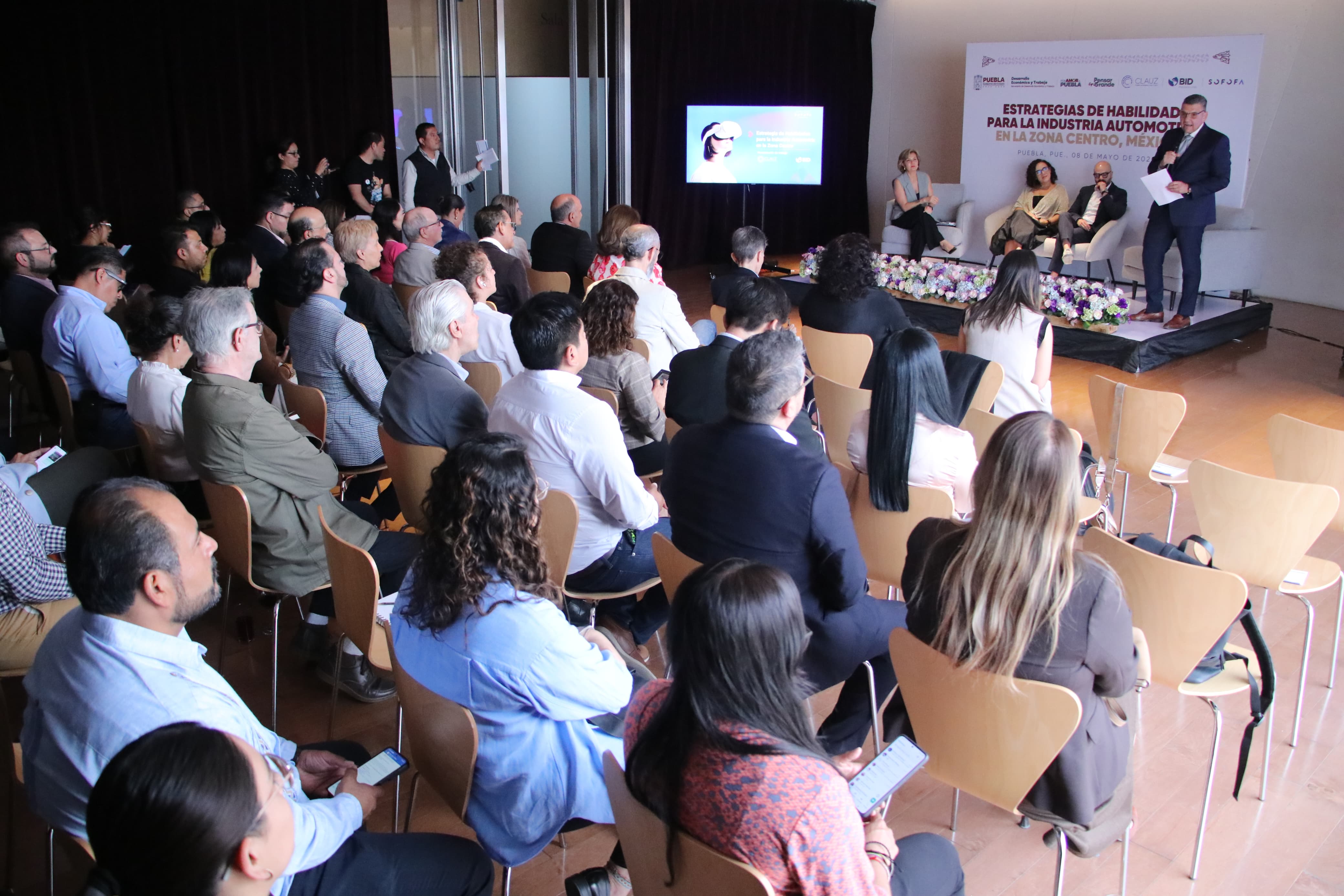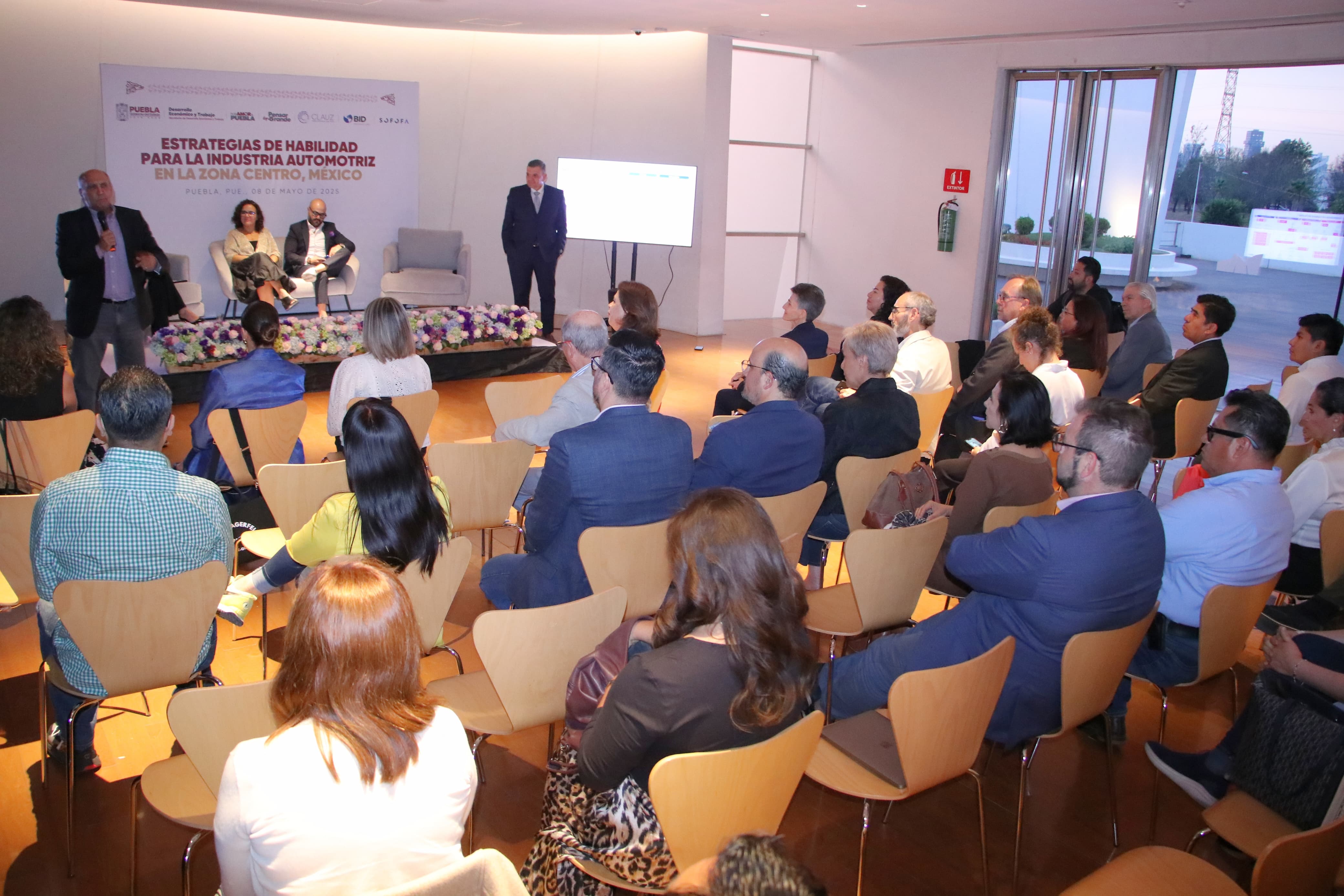 La presentación de la “Estrategia de Habilidades para la Industria Automotriz de Puebla-Tlaxcala” estuvo a cargo de Fernando Pavón Yitzak, representante de la División de Protección Social y Mercados Laborales del BID y Natalia Lidijover, gerente general de OTIC SOFOFA de Chile, organismo consultor especializado en capacitación y desarrollo empresarial sostenible y en la que también participó el secretario de Desarrollo Económico y Trabajo, Víctor Gabriel Chedraui, así como integrantes del Clúster Automotriz Zona Centro (CLAUZ).