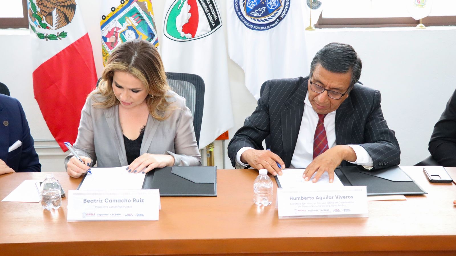 Este acuerdo signado entre la presidenta de la COPARMEX Puebla, Beatriz Camacho Ruiz, y el secretario ejecutivo del CECSNSP, Humberto Eloy Aguilar Viveros, es un trabajo coordinado y significativo con empresas privadas para coadyuvar en la prevención de delitos de manera positiva en la vida de las y los trabajadores y sus familias.