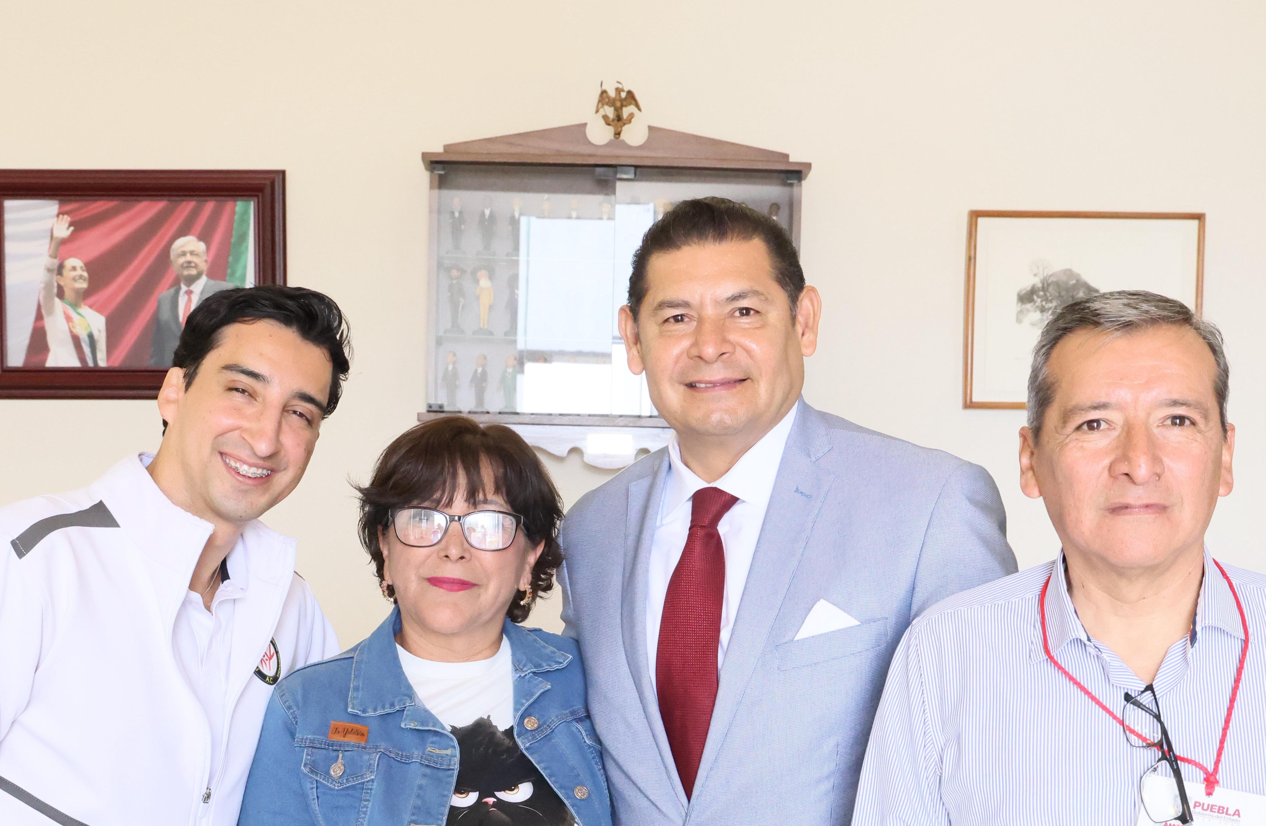 CIUDAD DE PUEBLA, Pue.- El Gobernador del Estado de Puebla, Alejandro Armenta, acompañado por la secretaria de Deporte y Juventud, Gaby “La Bonita” Sánchez, sostuvieron un emotivo encuentro con el exponente de la gimnasia artística, Diego Neumaier Ortiz, joven poblano de 27 años cuya historia de vida es testimonio de superación, perseverancia y pasión por el deporte.