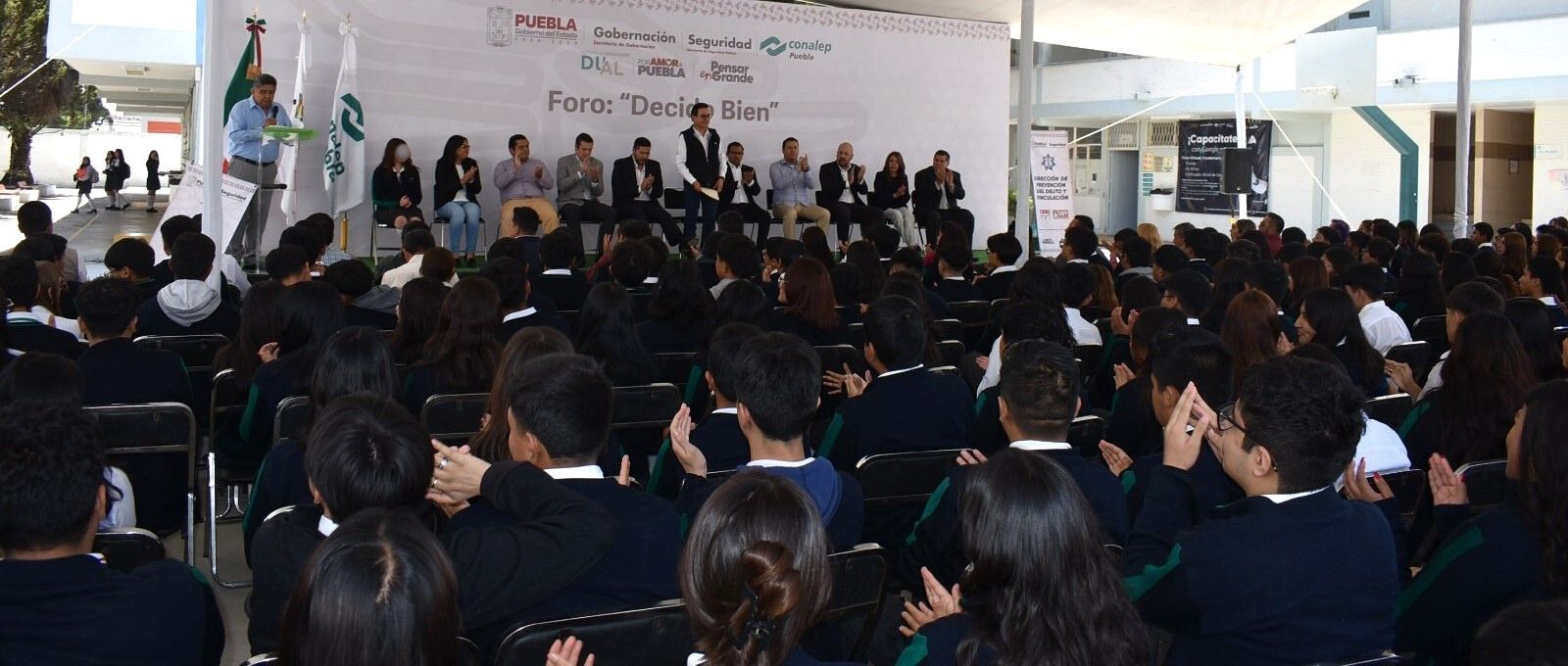 CIUDAD DE PUEBLA, Pue.- A fin de ofrecer a la comunidad educativa herramientas para evitar y erradicar el consumo de drogas, el Colegio de Educación Profesional Técnica del Estado de Puebla (Conalep), en conjunto con el Gobierno del Estado, llevaron a cabo el foro Decido Bien, en el Plantel III ubicado en la unidad habitacional San Bartolo de la capital poblana.