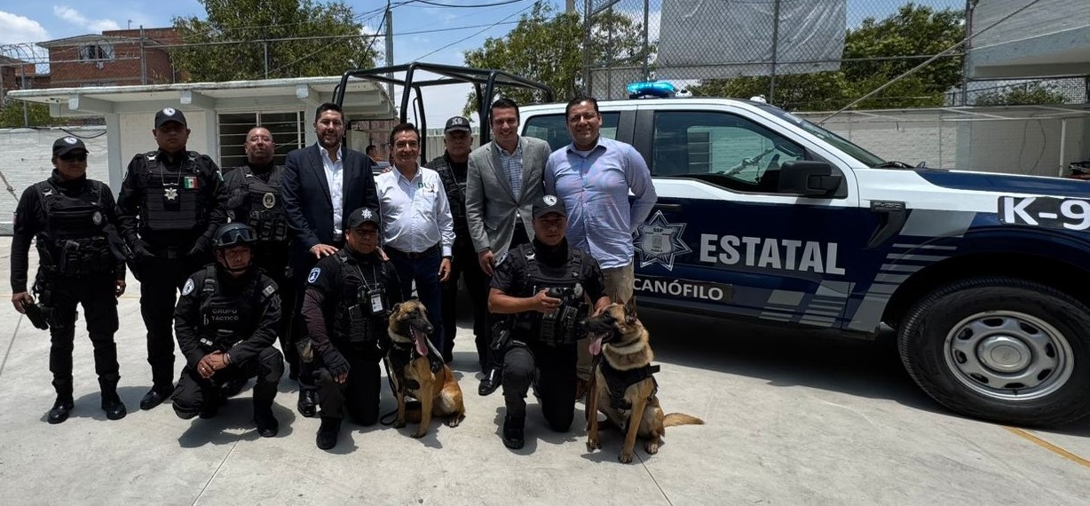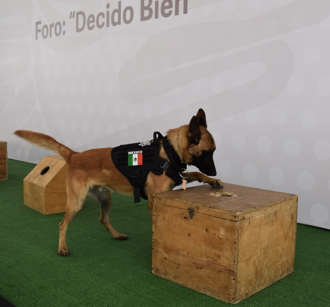 Finalmente, el Escuadrón Canófilo K9 de la SSP, a cargo de Arturo Galván Castañeda, efectuó una demostración de rastreo y localización de estupefacientes con dos binomios caninos.
