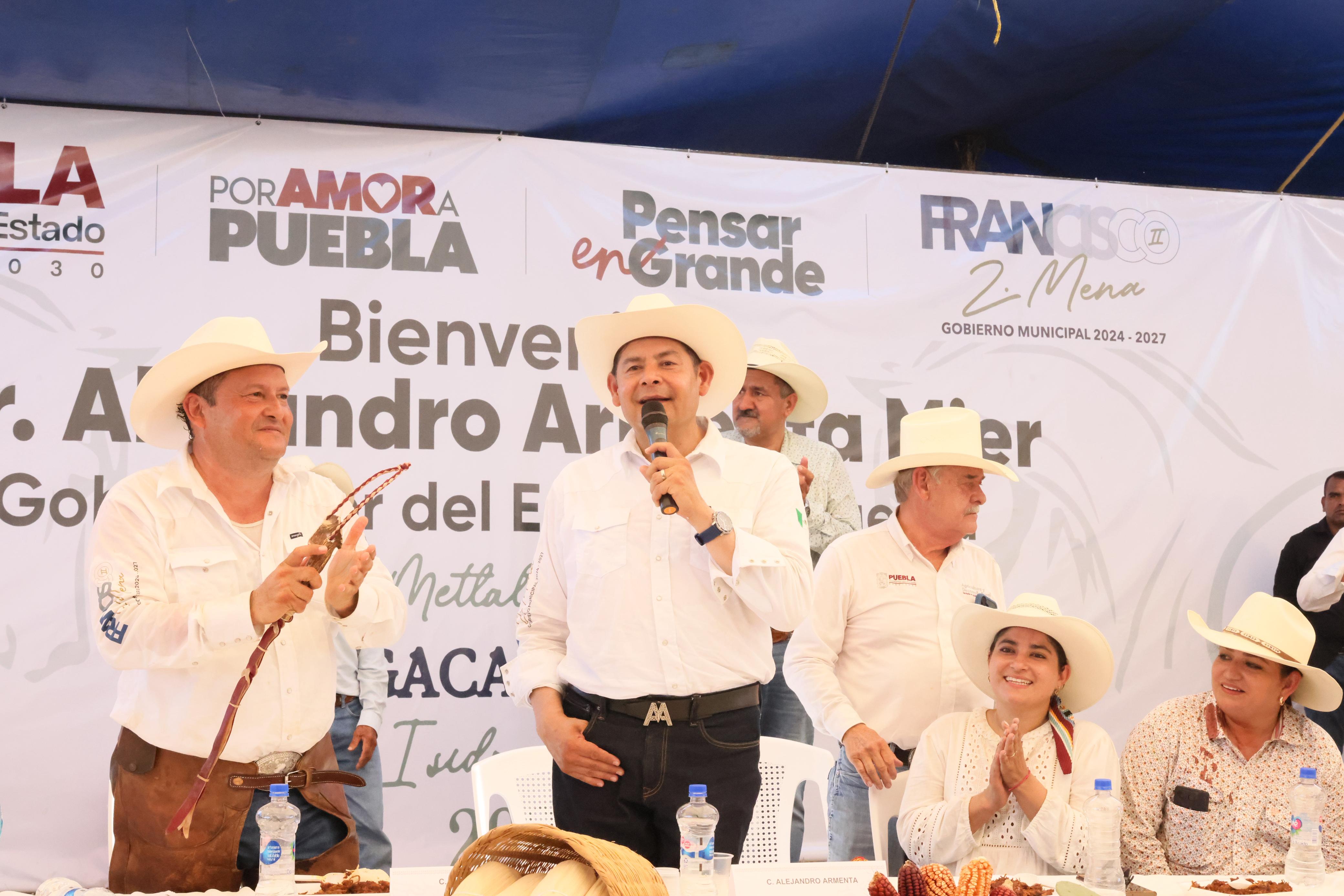 El gobernador Alejandro Armenta reafirmó su compromiso con el sector primario y la industria ganadera, al tiempo que reiteró que Puebla “empieza aquí, en Francisco Z. Mena”, con lo que destacó la necesidad de impulsar el desarrollo en esta región de la Sierra Norte.