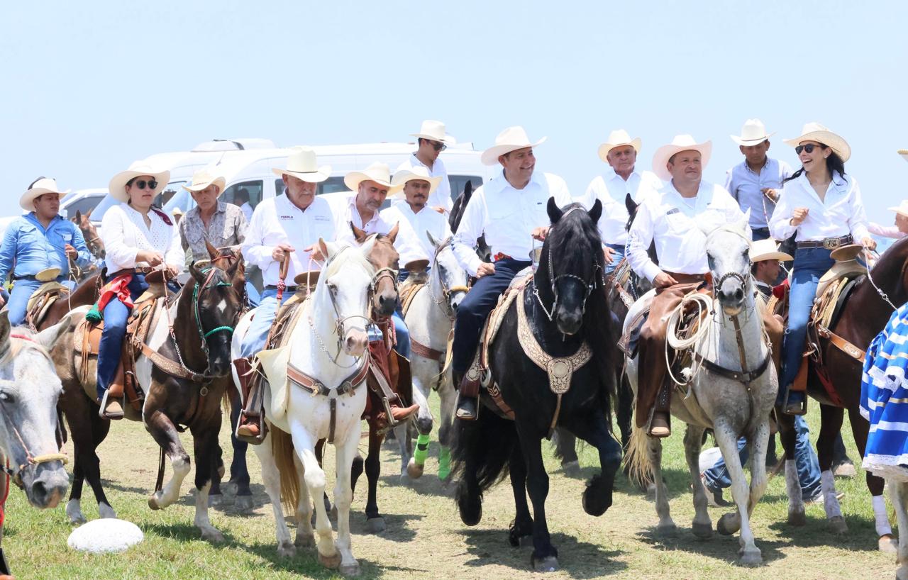 Al tomar nuevamente la palabra, el gobernador Armenta aceptó el reto con entusiasmo; “Estoy puesto. Vamos por una cabalgata de más de diez mil personas entre hombres y mujeres en 2026. Habrá página web para inscripciones y mil premios para los participantes.”