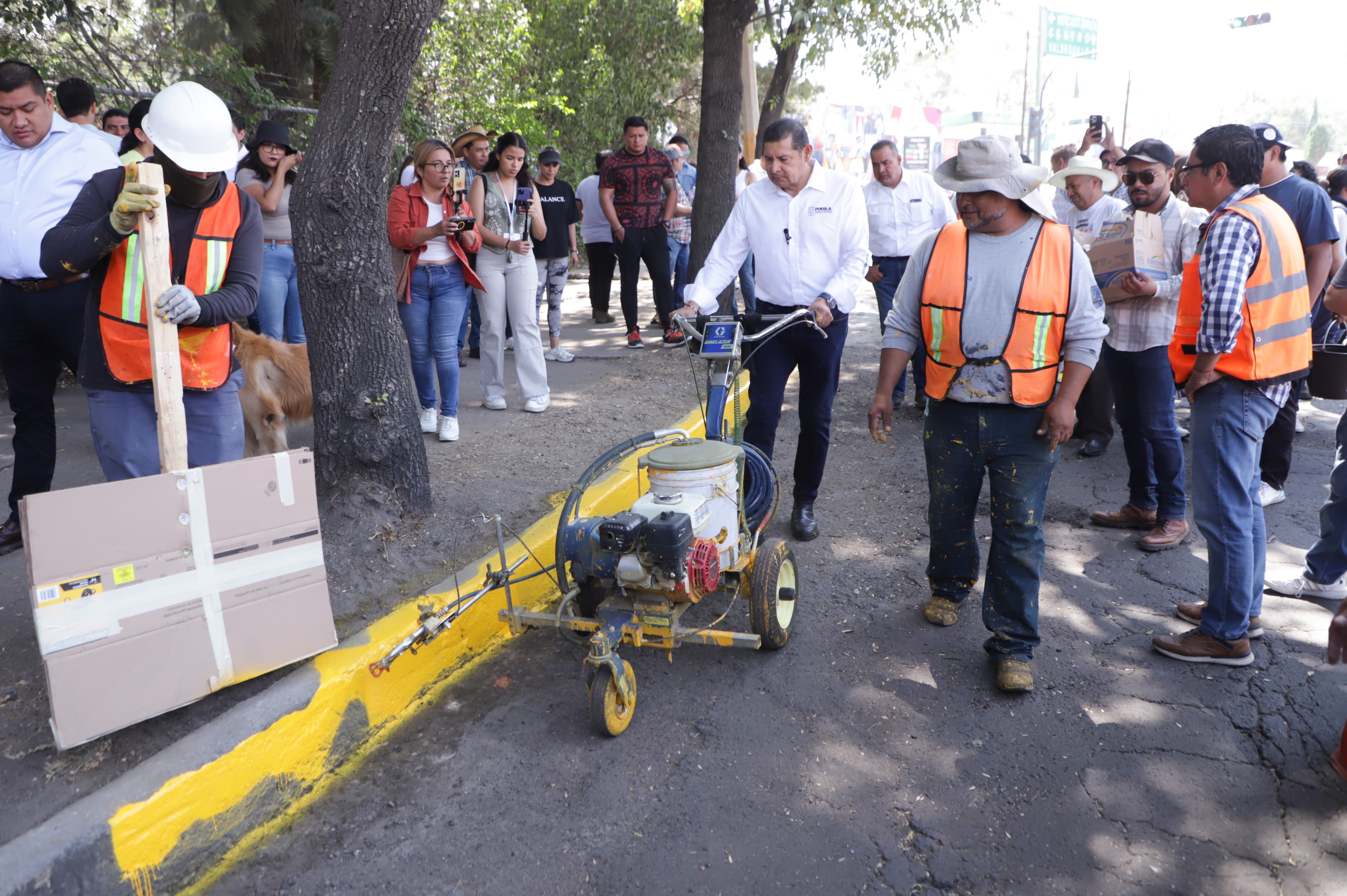 Al tomar la máquina desbrozadora para retirar el exceso de hierba en la banqueta, el gobernador detalló que la faena busca recuperar espacios, y en la Laguna de San Baltazar se trabajará en un perímetro del deporte, en la reconstrucción de banquetas y en establecer una ciclopista para embellecer el lugar.