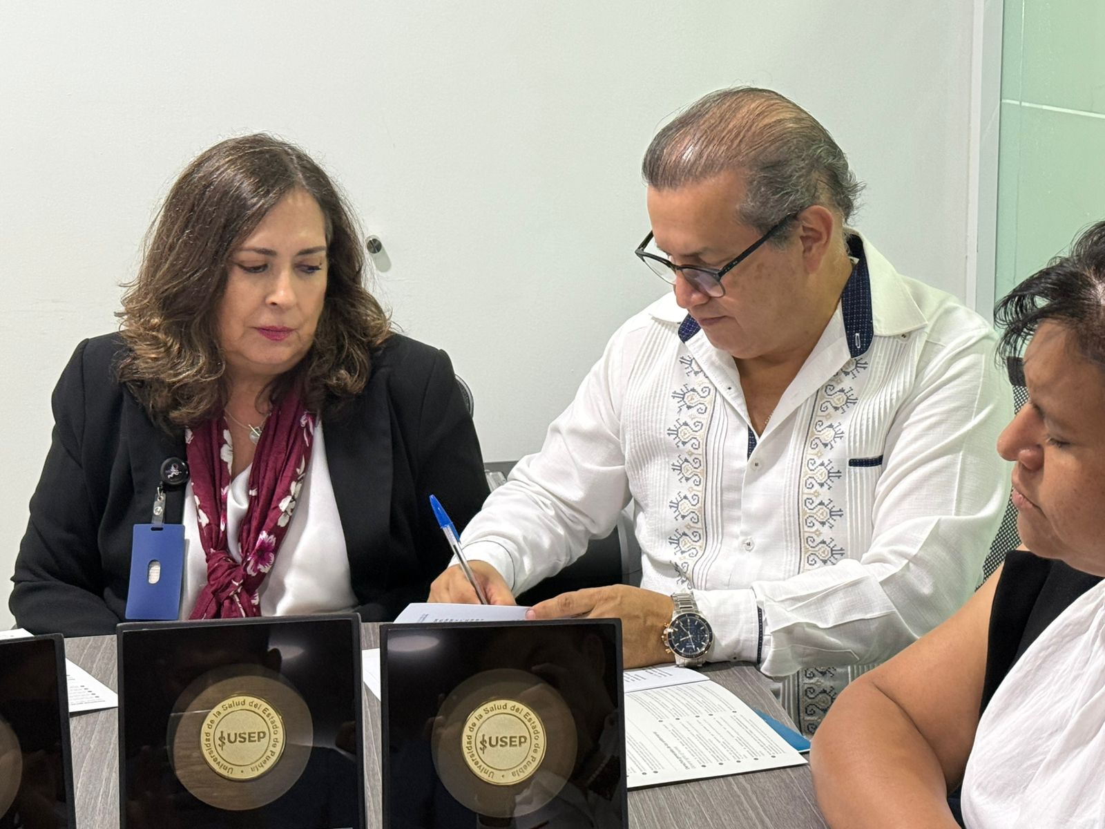 CANCÚN, Q. Roo. – Con la visión de Pensar en Grande y para concretar alianzas con instituciones que prioricen la calidad y humanismo al brindar atención médica, el Gobierno del Estado encabezado por el mandatario Alejandro Armenta, mediante la Universidad de la Salud del Estado de Puebla (USEP), formalizó un convenio de colaboración académica en materia de internado de pregrado con el Hospital Amerimed Cancún.