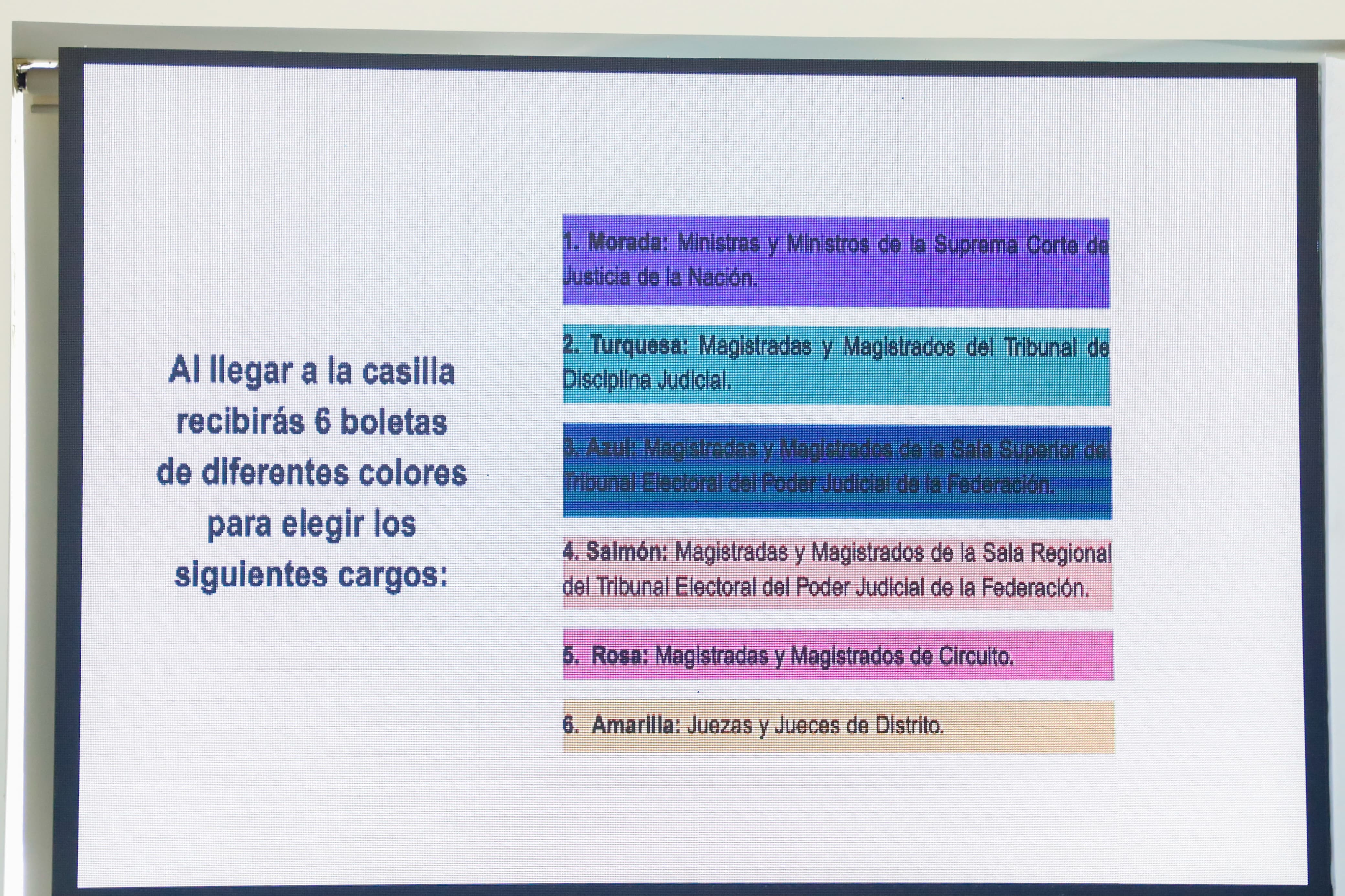 “Históricamente, sólo los poderes Ejecutivo y Legislativo son electos por voto popular. Ahora, con esta reforma, también los ciudadanos decidirán quiénes deben impartir justicia. Este 1 de junio, al acudir a las urnas, cada persona recibirá seis boletas para elegir a sus representantes en los distintos órganos judiciales”, detalló Pineda.