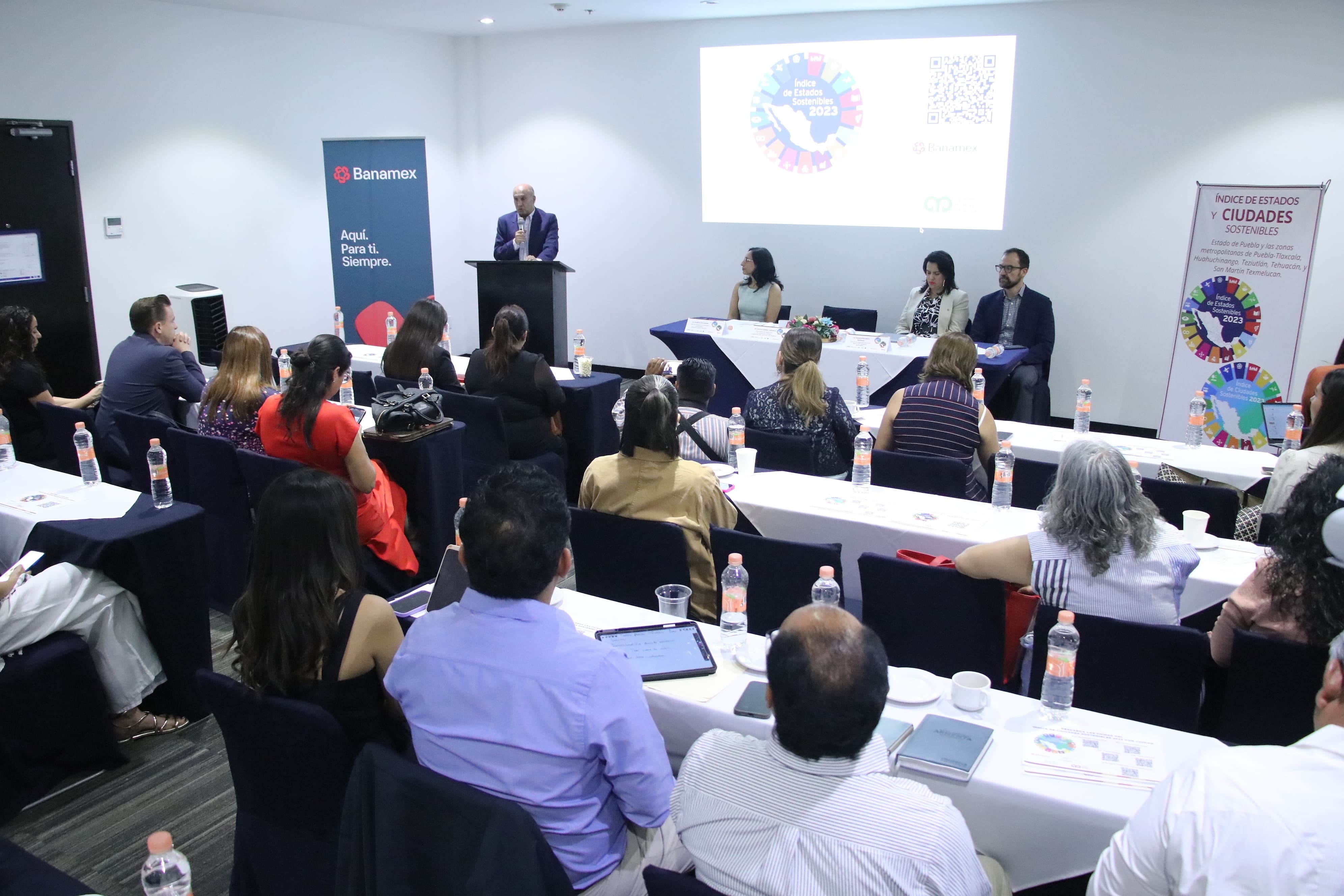 Asimismo, se dieron a conocer los resultados del Índice de Ciudades Sostenibles 2023, el cual evalúa el cumplimiento de los ODS en zonas urbanas. En el caso de Puebla, el índice incluyó a las zonas metropolitanas de Puebla-Tlaxcala, Huauchinango, Tehuacán y San Martín Texmelucan. La mejor posicionada fue Puebla-Tlaxcala, en el lugar 36 de 81 ciudades, mientras que Tehuacán se ubicó en el lugar 62, San Martín Texmelucan en el 71 y Huauchinango en el 81. En el caso de Teziutlán, aún se requiere información adicional para poder calcular el índice completo, aunque ya se reportan algunos indicadores de seguimiento.