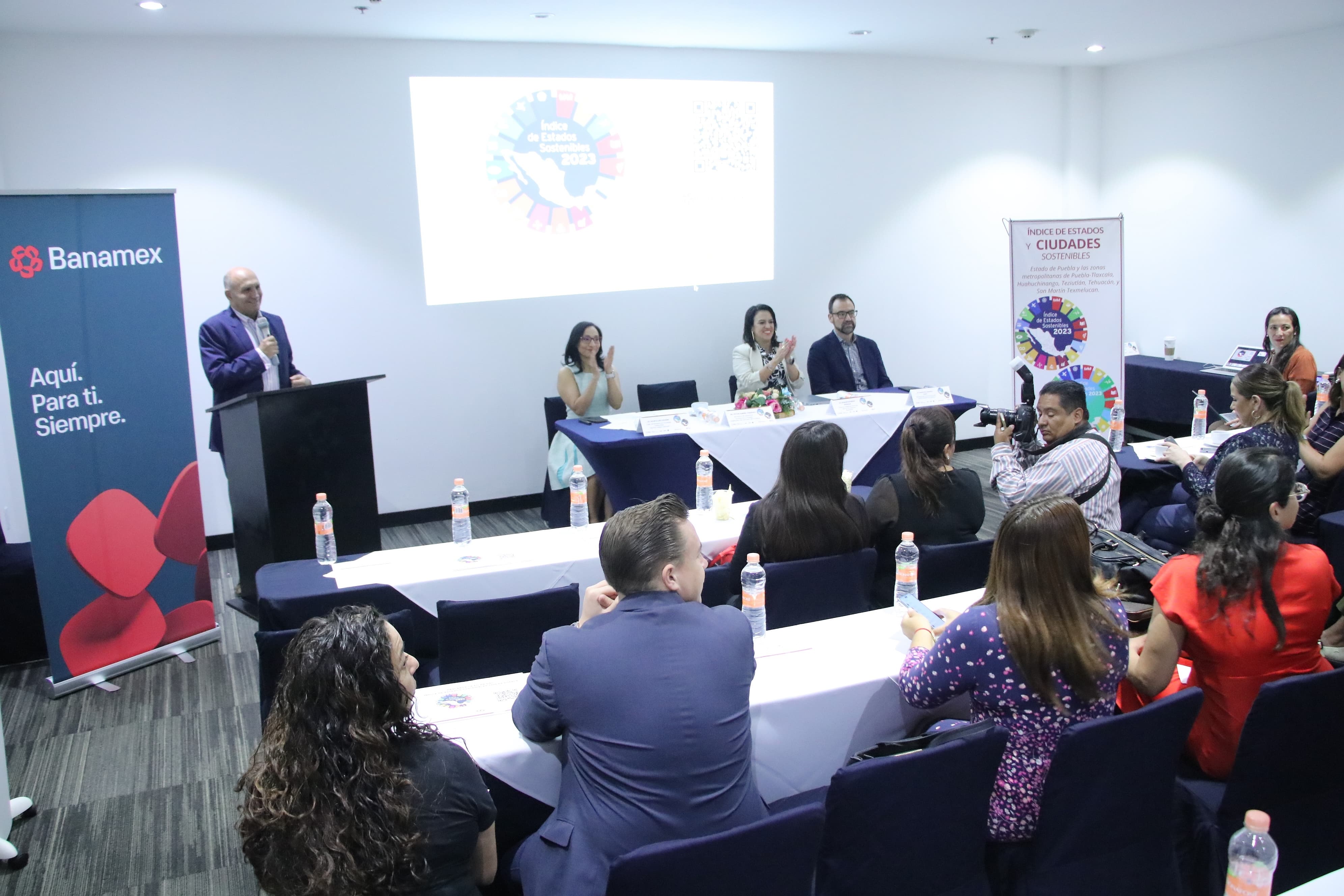 Este miércoles, la Secretaría de Desarrollo Económico y Trabajo (SEDETRA), en colaboración con el Centro Mario Molina y Fundación Banamex, realizó el Taller del Índice de Ciudades y Estados Sostenibles, un espacio de reflexión y diálogo enfocado en revisar los avances del estado y sus principales ciudades en el cumplimiento de las metas de la Agenda 2030.