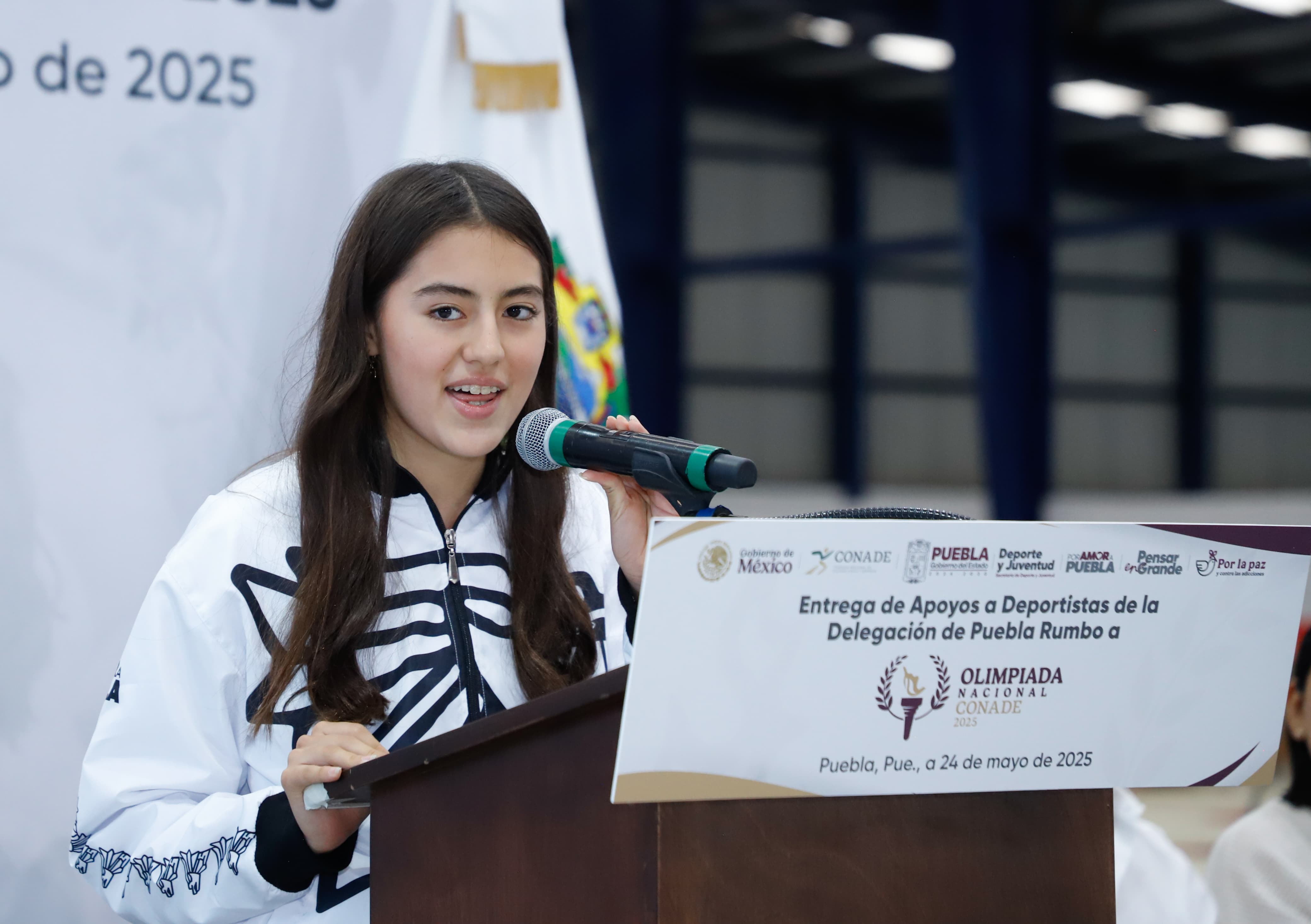 A nombre de la Delegación, la nadadora Dania Ximena Aguirre López agradeció el respaldo recibido y expresó el compromiso de todas y todos los deportistas de Puebla por representar con honor, entrega y disciplina al estado en cada competencia.