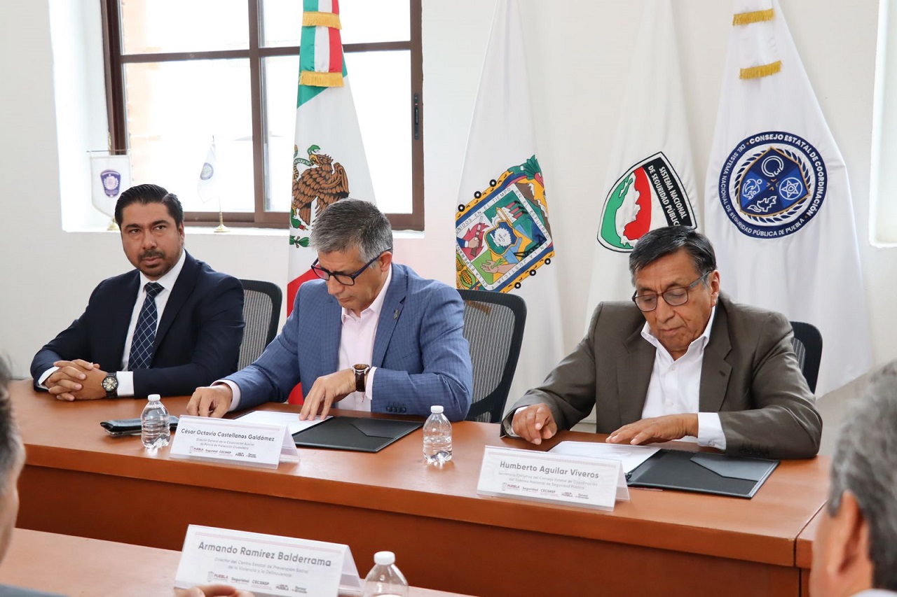 CIUDAD DE PUEBLA, Pue.- Bajo el liderazgo del gobernador Alejandro Armenta, el Consejo Estatal de Coordinación del Sistema Nacional de Seguridad Pública (CECSNSP) y la Policía Auxiliar firmaron un convenio de colaboración con el objetivo de capacitar y desarrollar acciones específicas en materia de Prevención Social de la Violencia y la Delincuencia, a todos los elementos de la corporación auxiliar, a través de los programas implementados por el Centro Estatal de Prevención Social de la Violencia y la Delincuencia.