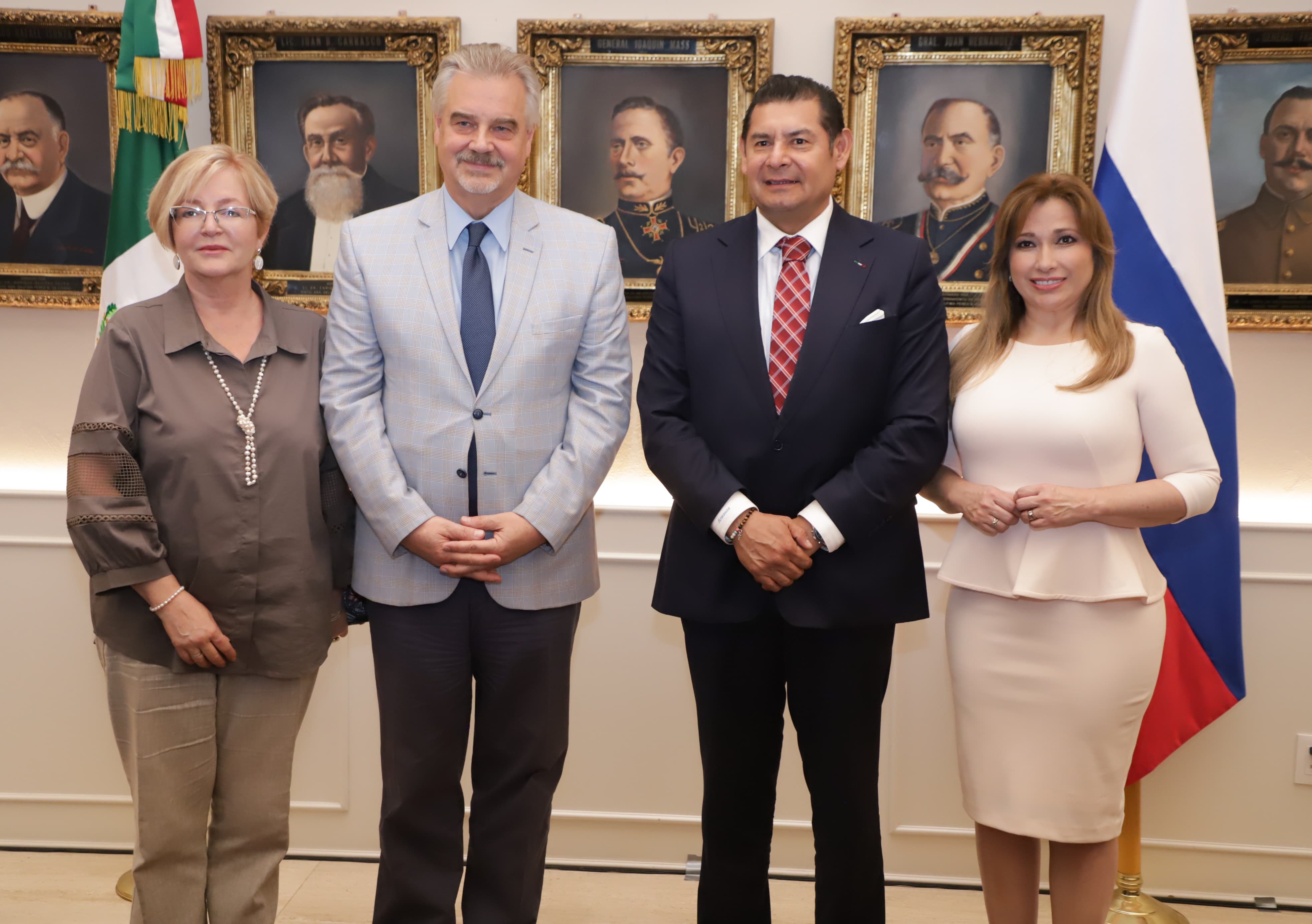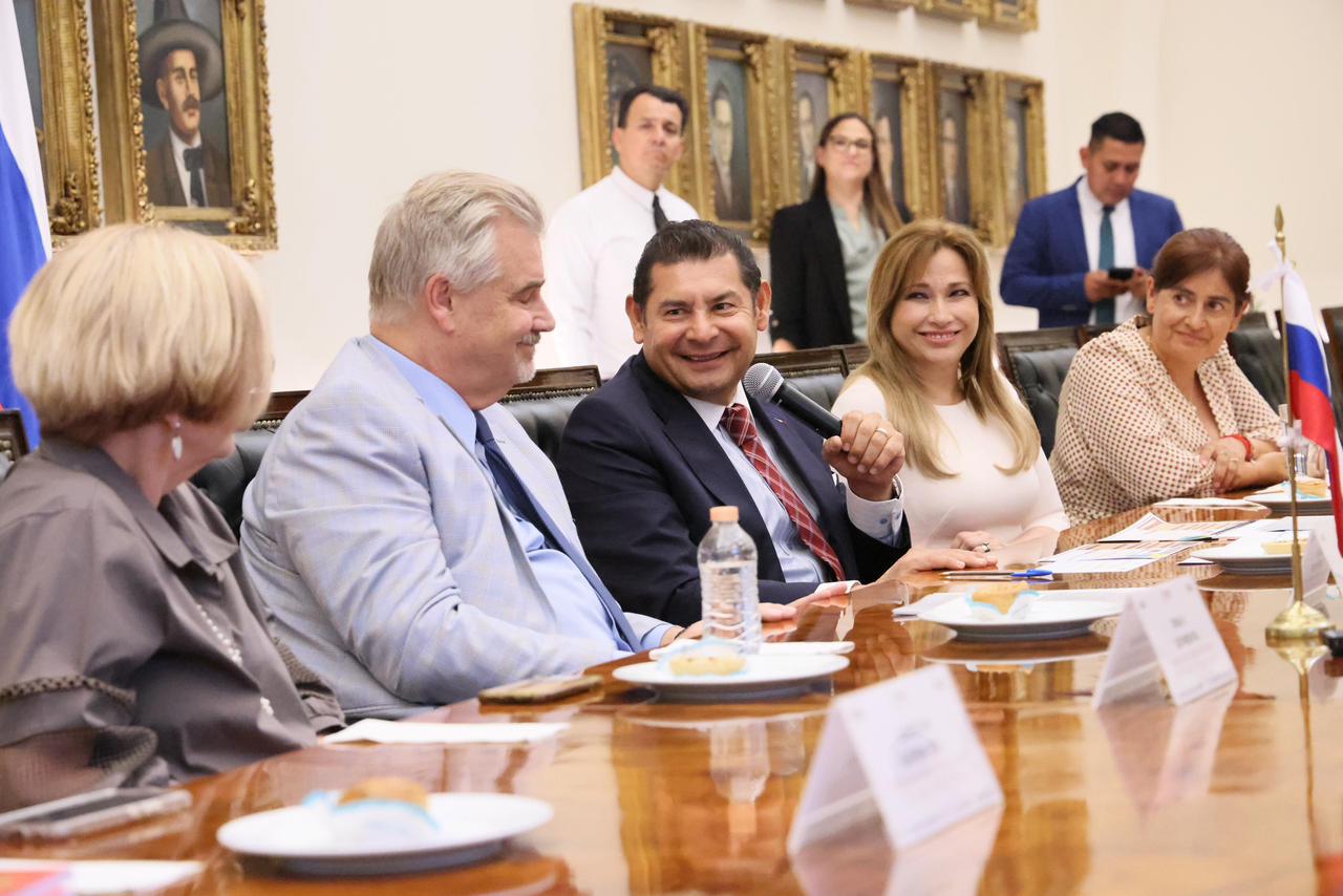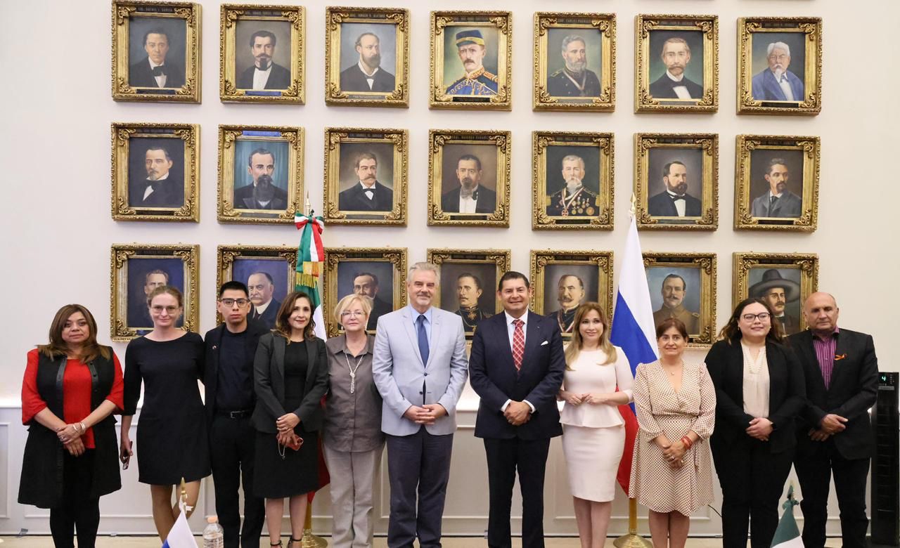 CIUDAD DE PUEBLA, Pue.— En un acto protocolario que subrayó la próxima celebración de 135 años de relaciones diplomáticas entre México y Rusia, el gobernador Alejandro Armenta recibió al Excelentísimo Embajador Nikolay V. Sofinskiy, en el Salón Gobernadores del Antiguo Palacio de Gobierno. La reunión tuvo como objetivo consolidar los lazos culturales, educativos y tecnológicos entre Puebla y la Federación Rusa.