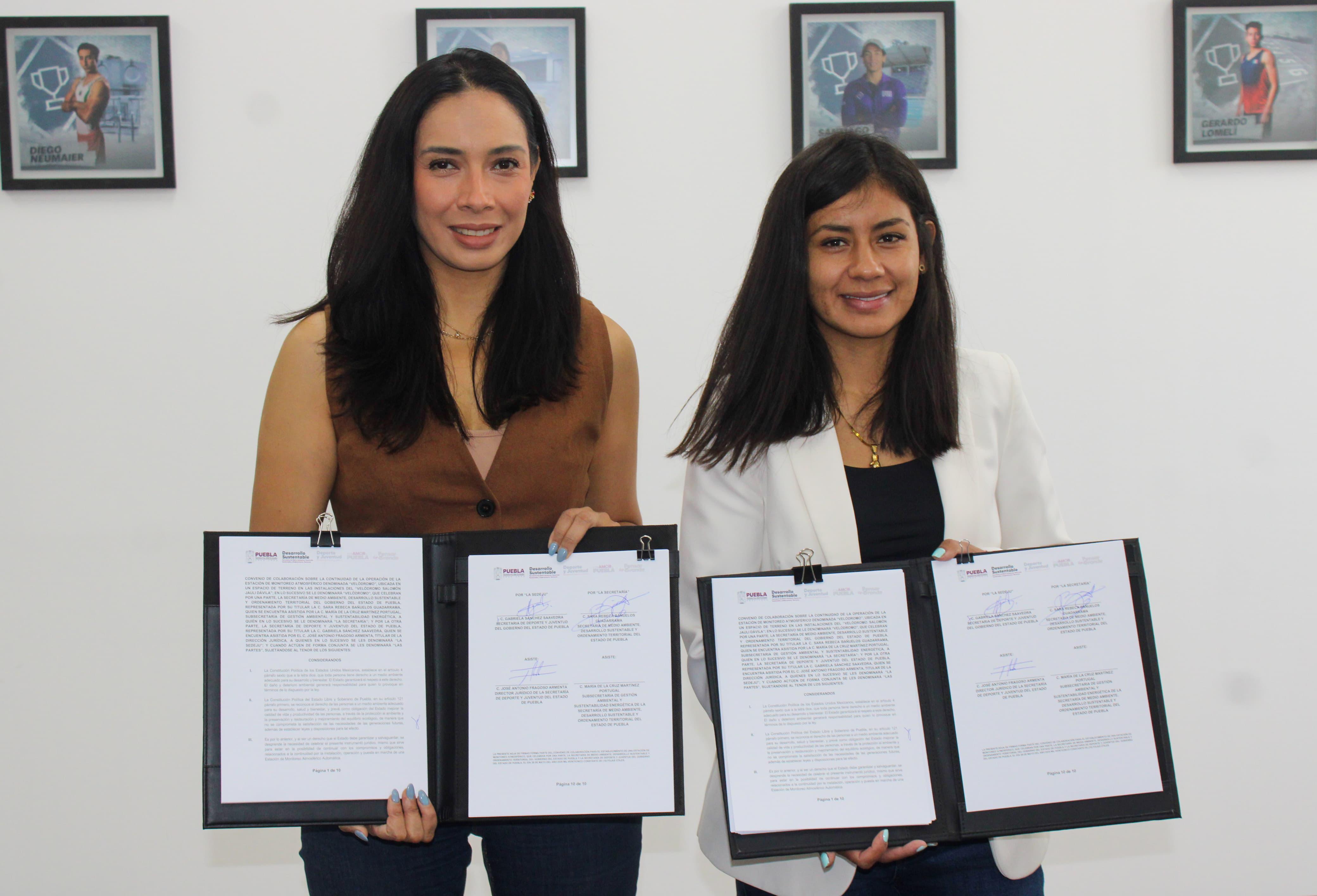 CIUDAD DE PUEBLA, Pue.- El Gobierno del Estado de Puebla, encabezado por Alejandro Armenta, reafirma su compromiso por el cuidado del medio ambiente. En este sentido, la Secretaría de Deporte y Juventud, dirigida por Gaby “La Bonita” Sánchez, y la Secretaría de Medio Ambiente, a cargo de Rebeca Bañuelos Guadarrama, llevaron a cabo la firma de un convenio de colaboración.