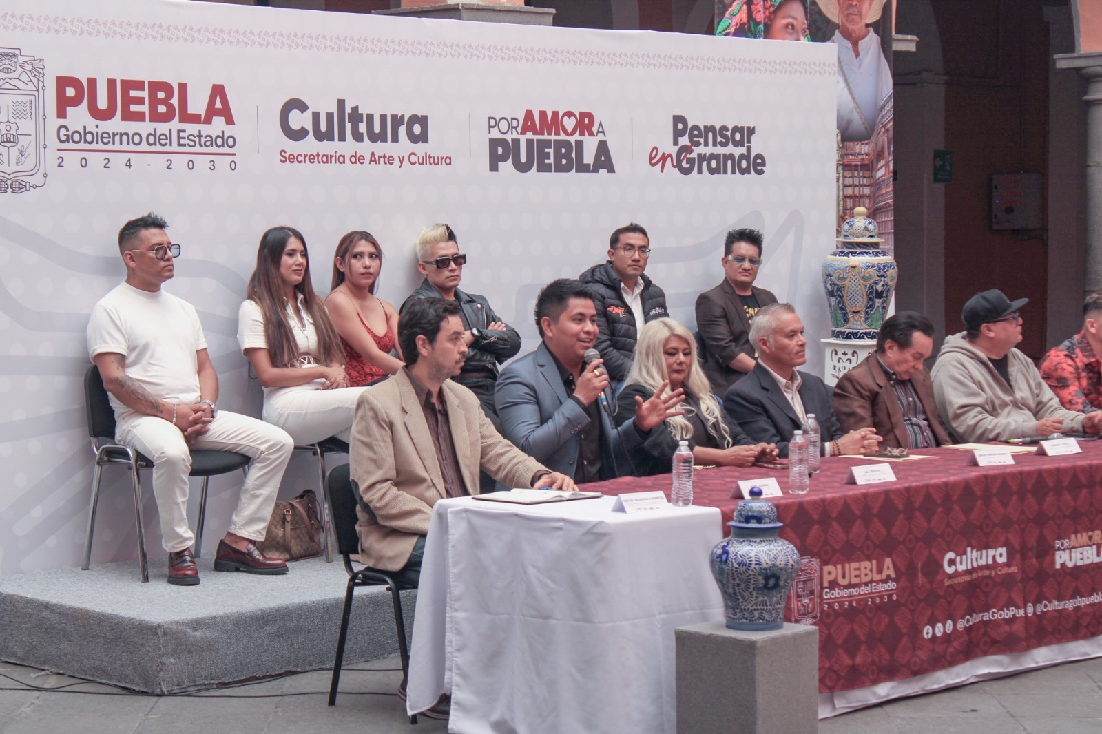 En la presentación también estuvieron Lila Priego, directora general de Músicos Poblanos Unidos; Julián Tapia, director general de Soulmex Evolution; Rafael Navarro Guerrero, director de Planeación y Proyectos de la Gerencia del Centro Histórico y Patrimonio Cultural del Municipio de Puebla; así como representantes de las agrupaciones participantes.