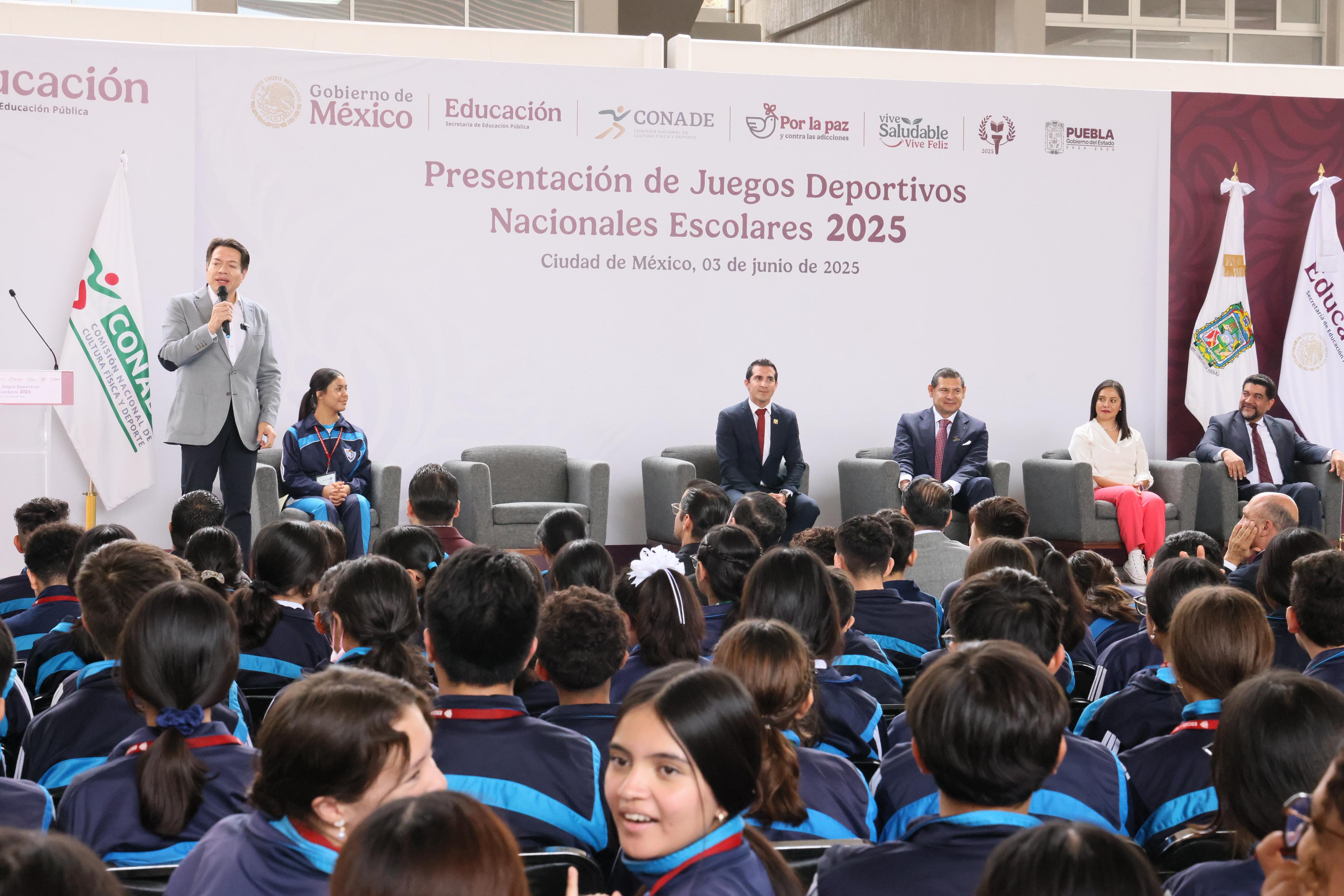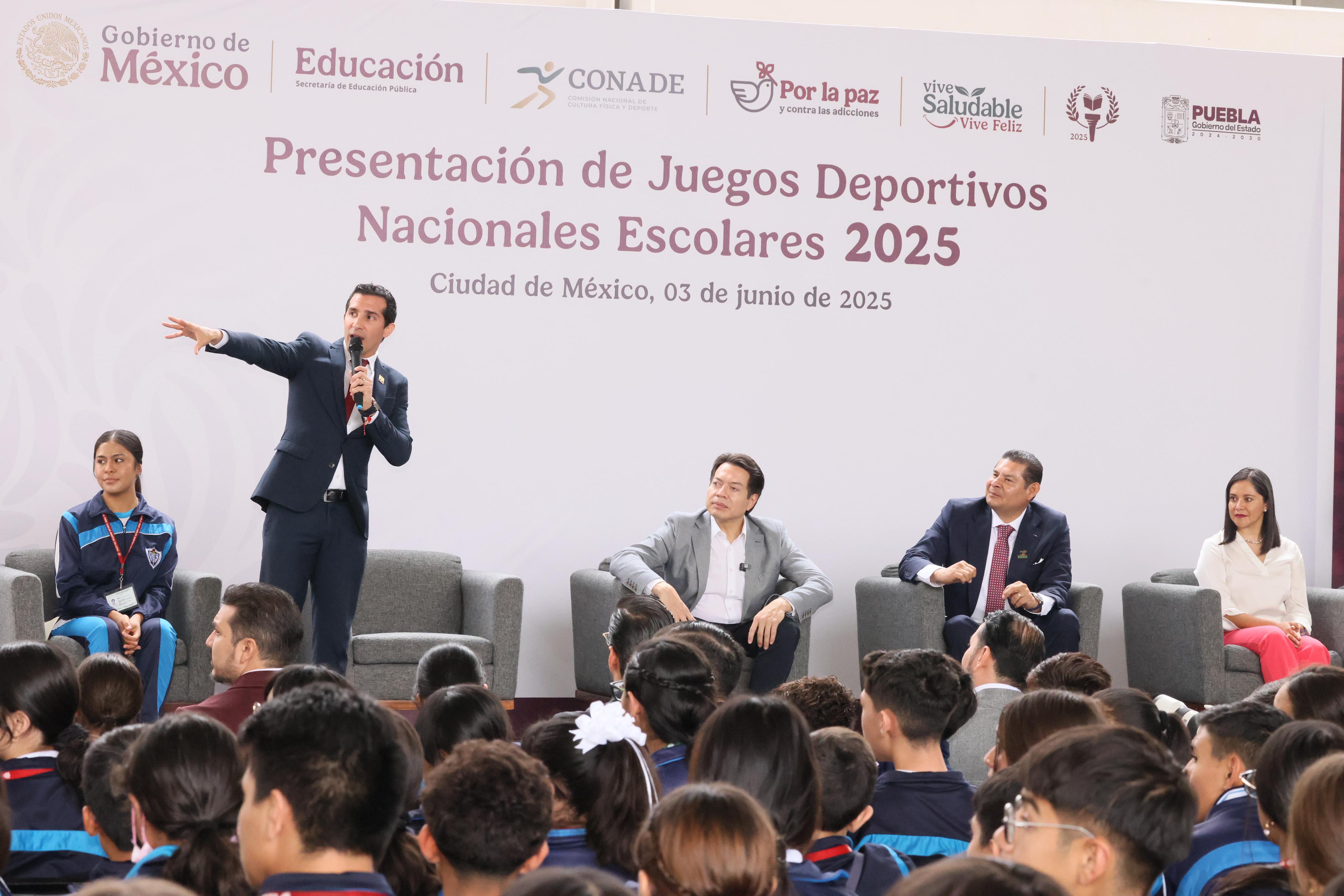 CIUDAD DE MÉXICO.- Durante la Presentación de los Juegos Deportivos Nacionales Escolares 2025, el secretario de Educación federal, Mario Delgado afirmó que el director de la Comisión Nacional del Deporte (CONADE) encontró en el gobernador Alejandro Armenta, a un apasionado del deporte y la educación y en Puebla, al lugar idóneo para albergar esta importante justa deportiva.