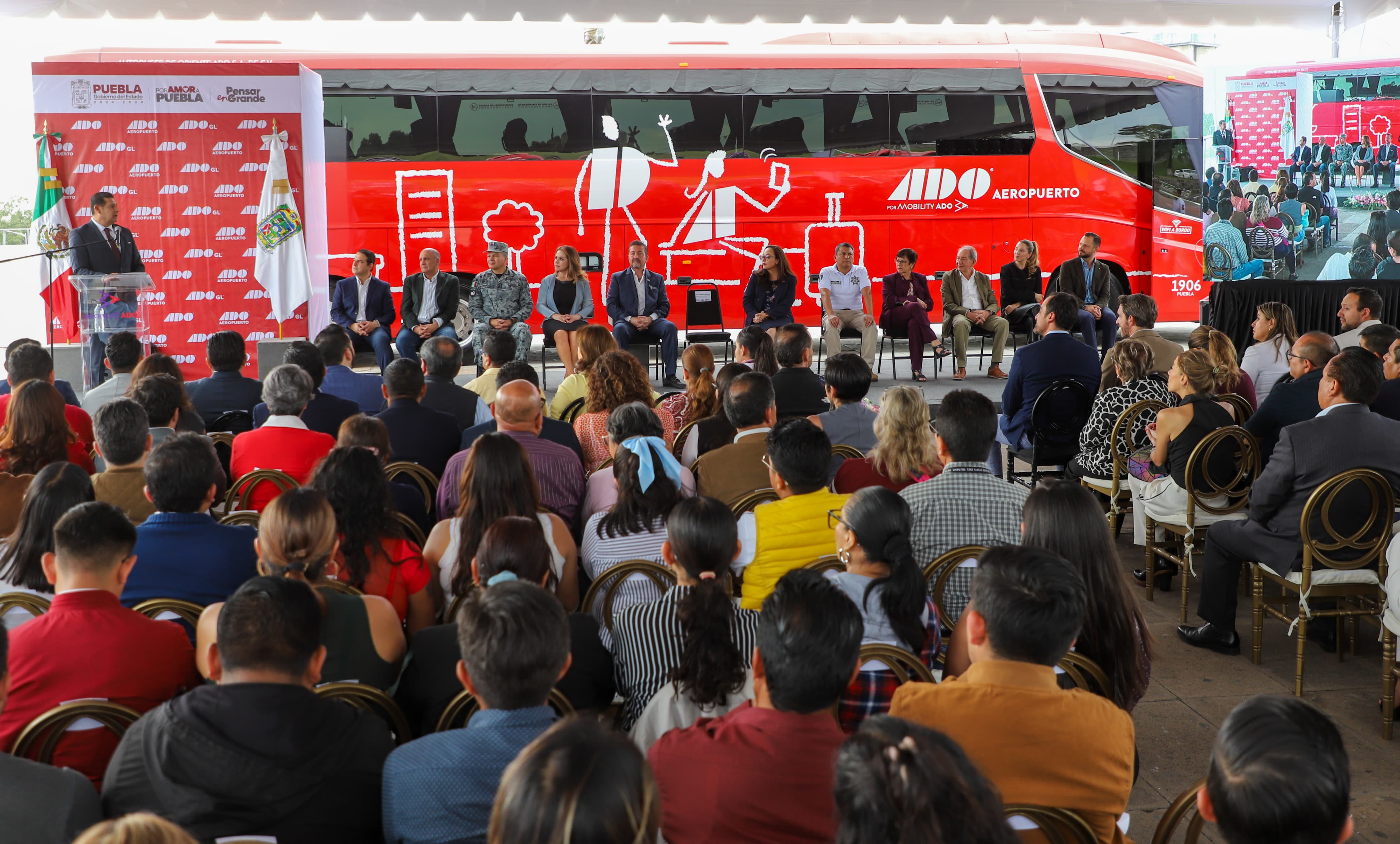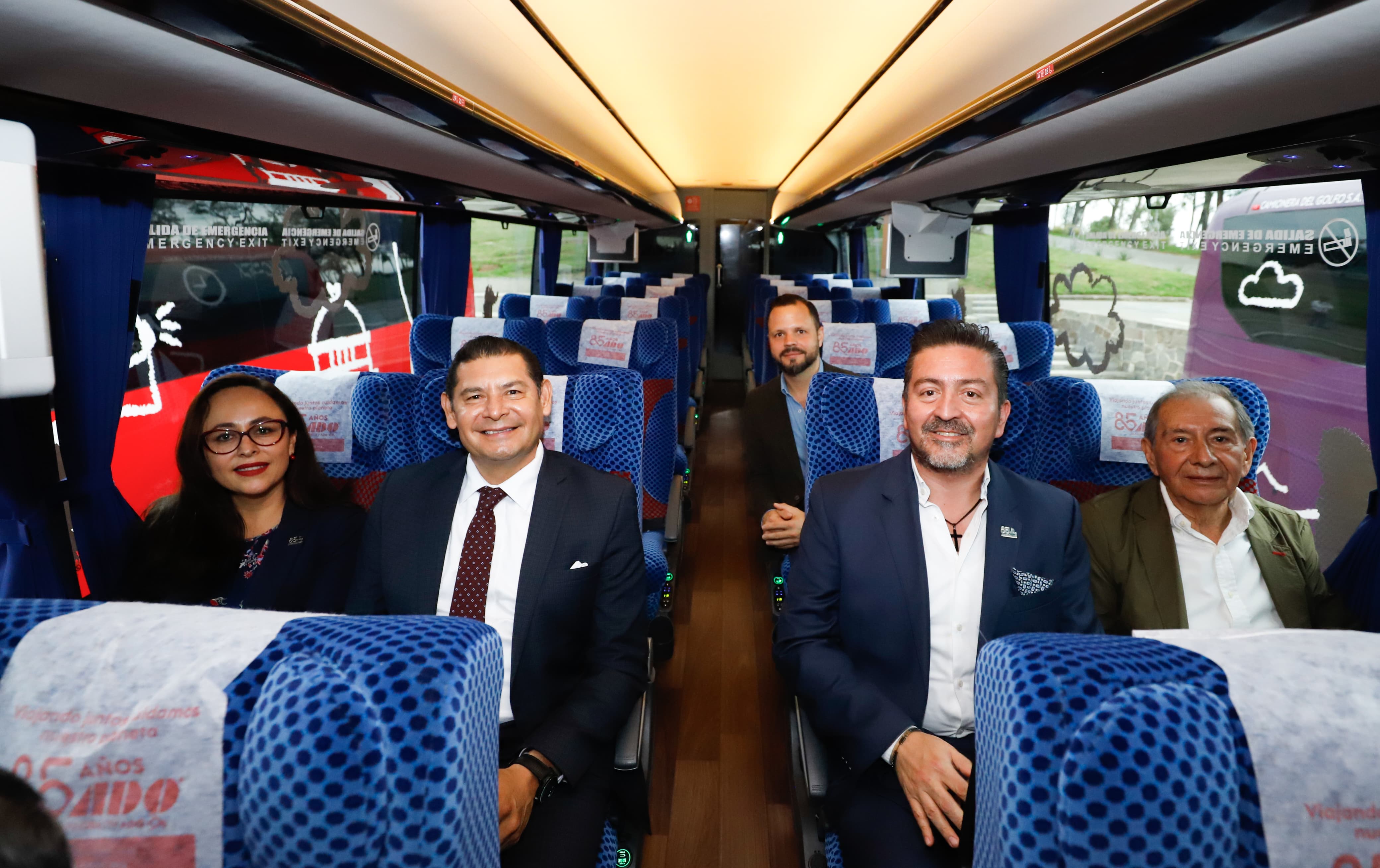 -El gobernador de Puebla, Alejandro Armenta asistió a la presentación de las nuevas unidades de la empresa Mobility ADO, con una inversión de 100 mdp.
