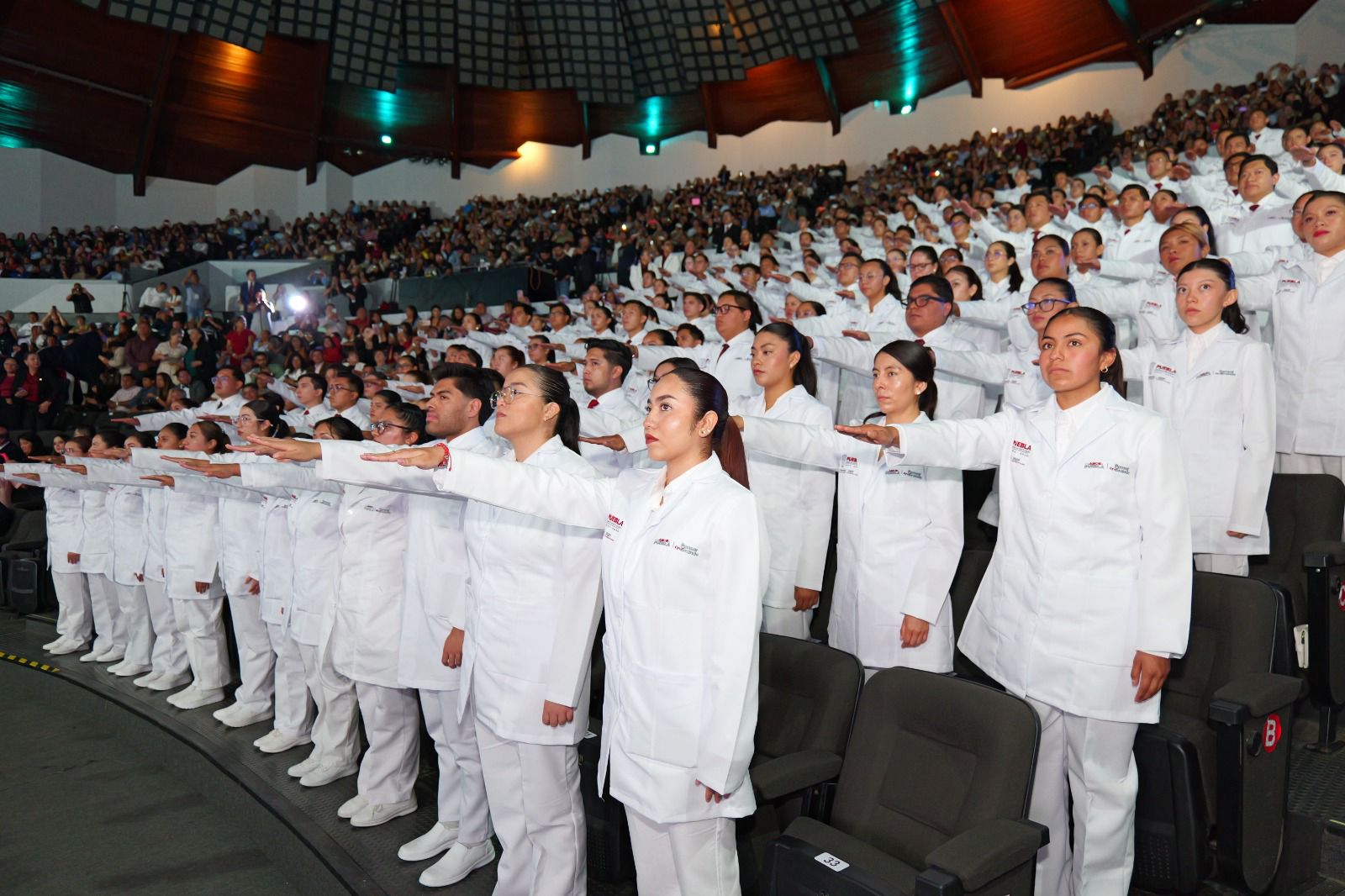 Al encabezar el evento, el secretario de Educación, Manuel Viveros Narciso, celebró el esfuerzo de las y los egresados para alcanzar sus metas, así como el apoyo de sus familias. Auguró que las y los futuros profesionales de la salud harán un trabajo destacado al cuidar la salud de la población Por Amor a Puebla.