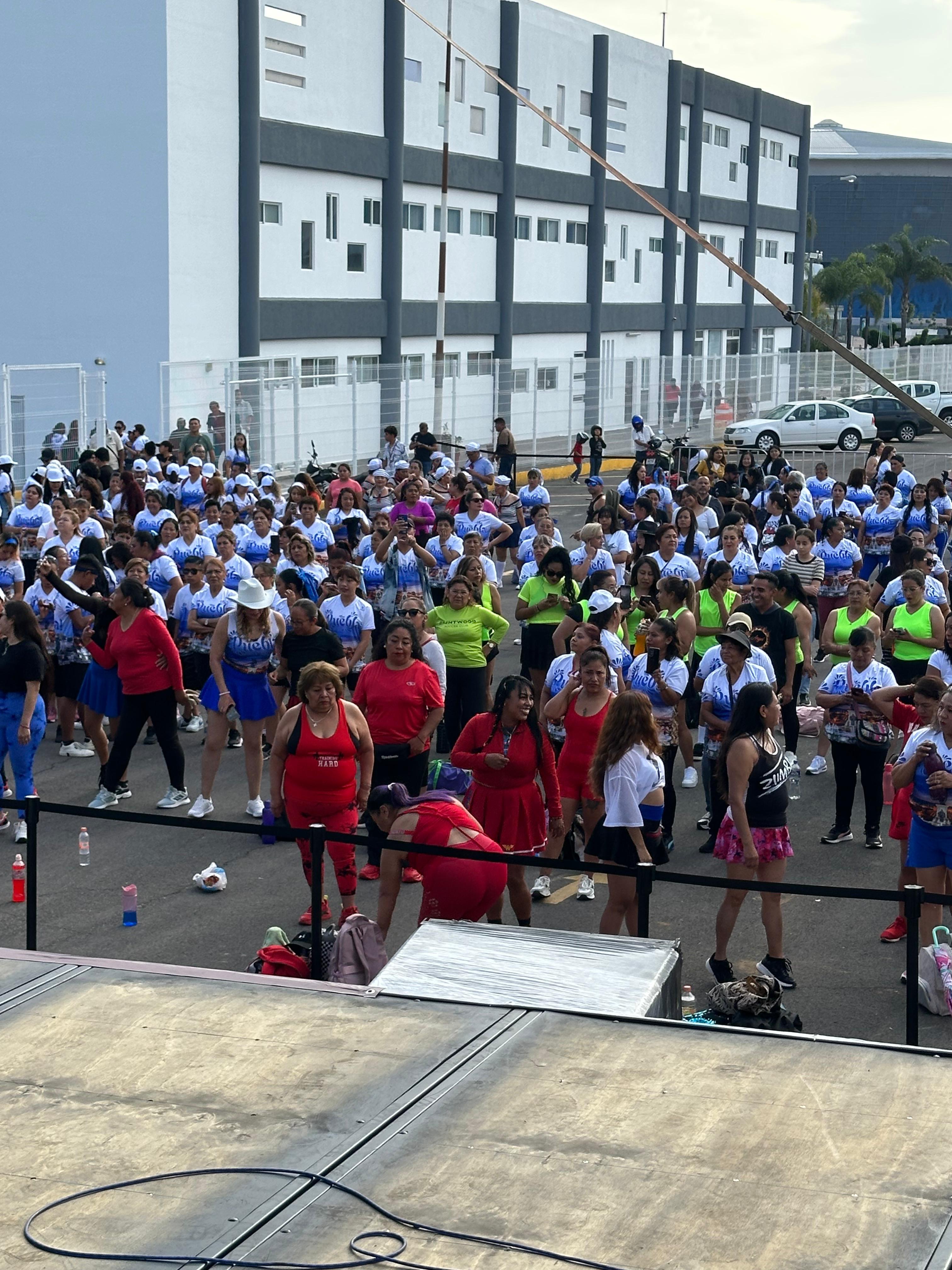 Este evento lleno de energía se realizó en el estacionamiento de la dependencia y reunió a cerca de 800 personas de todas las edades, principalmente mujeres, quienes disfrutaron de una vibrante jornada de ejercicio, baile y diversión.