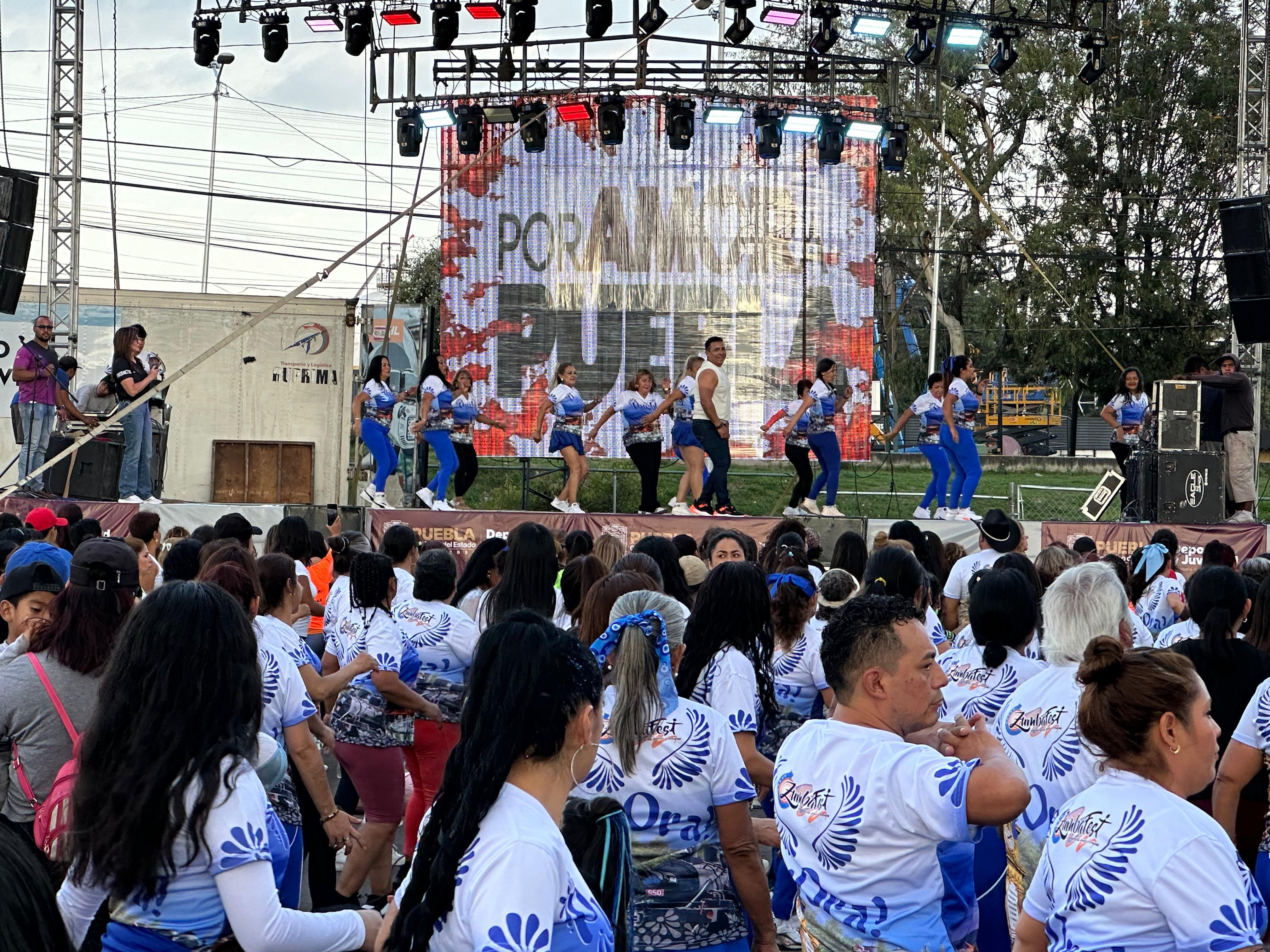 CIUDAD DE PUEBLA, Pue.- El Gobierno del Estado, encabezado por Alejandro Armenta, busca la participación de la comunidad con acciones a favor del deporte y la salud a través de la Secretaría de Deporte y Juventud dirigido por Gaby “La Bonita” Sánchez, quien apoyó la realización del “Zumba Fest 2025”.