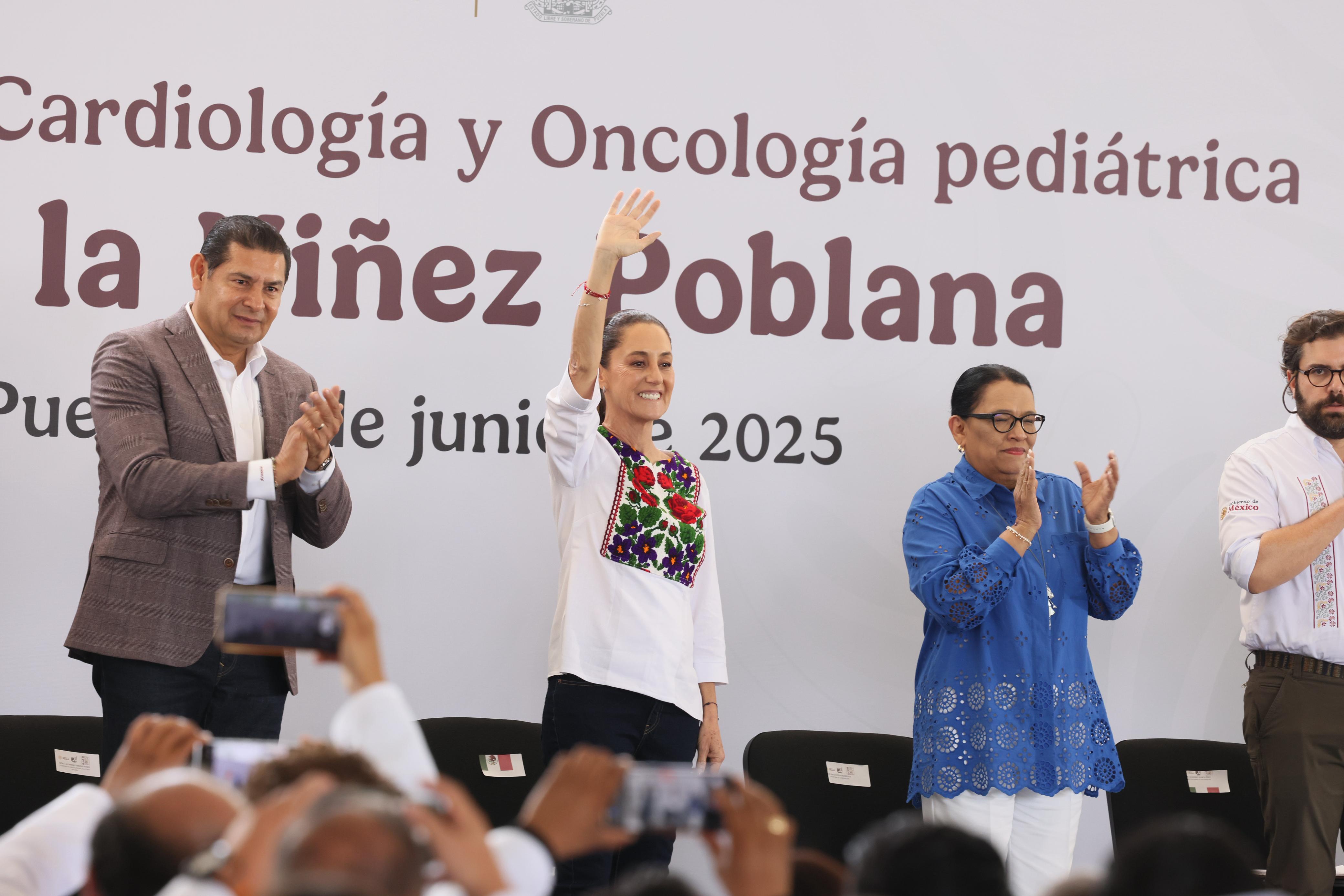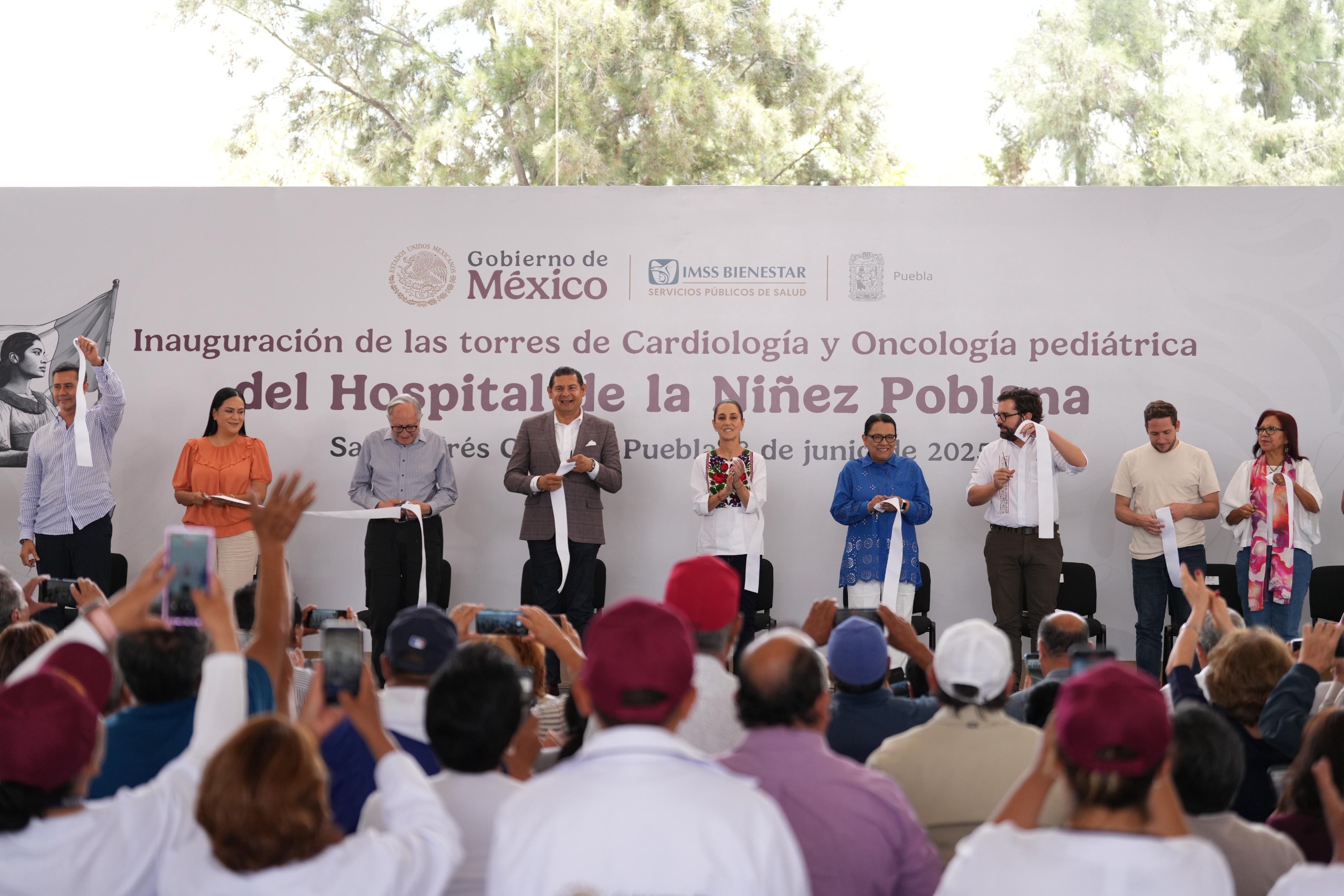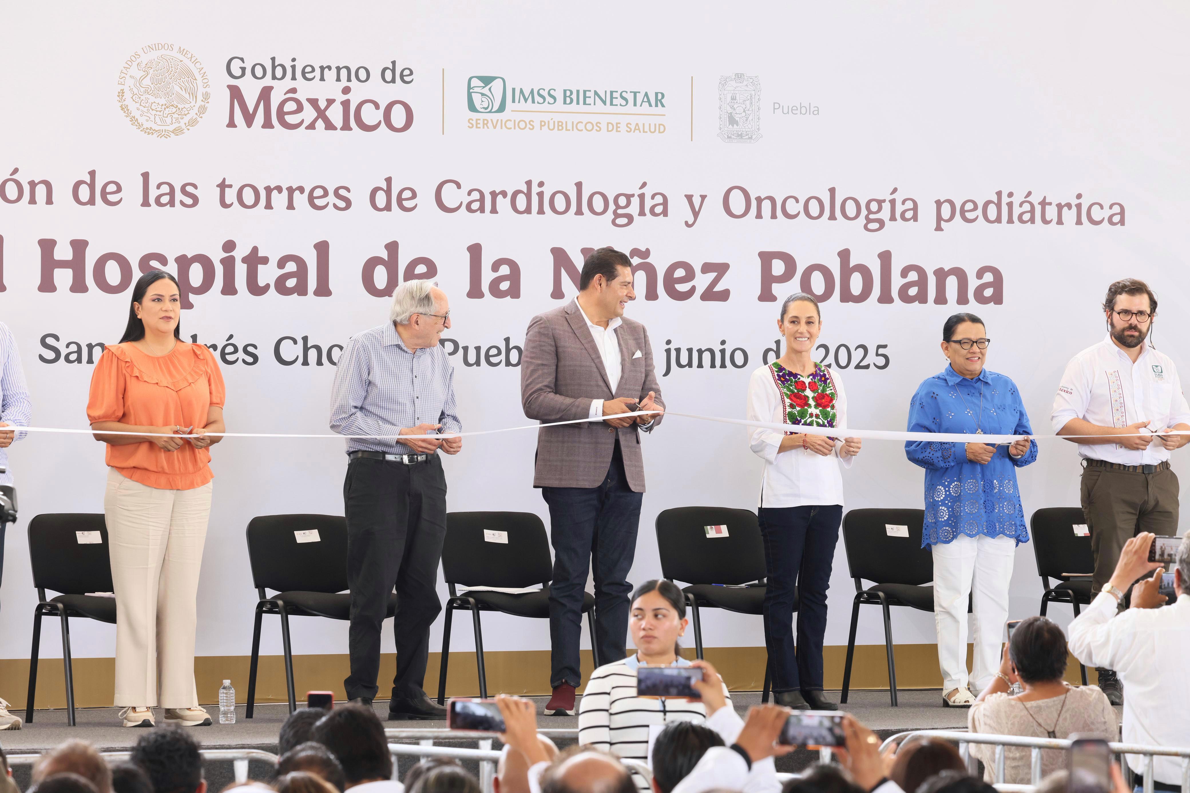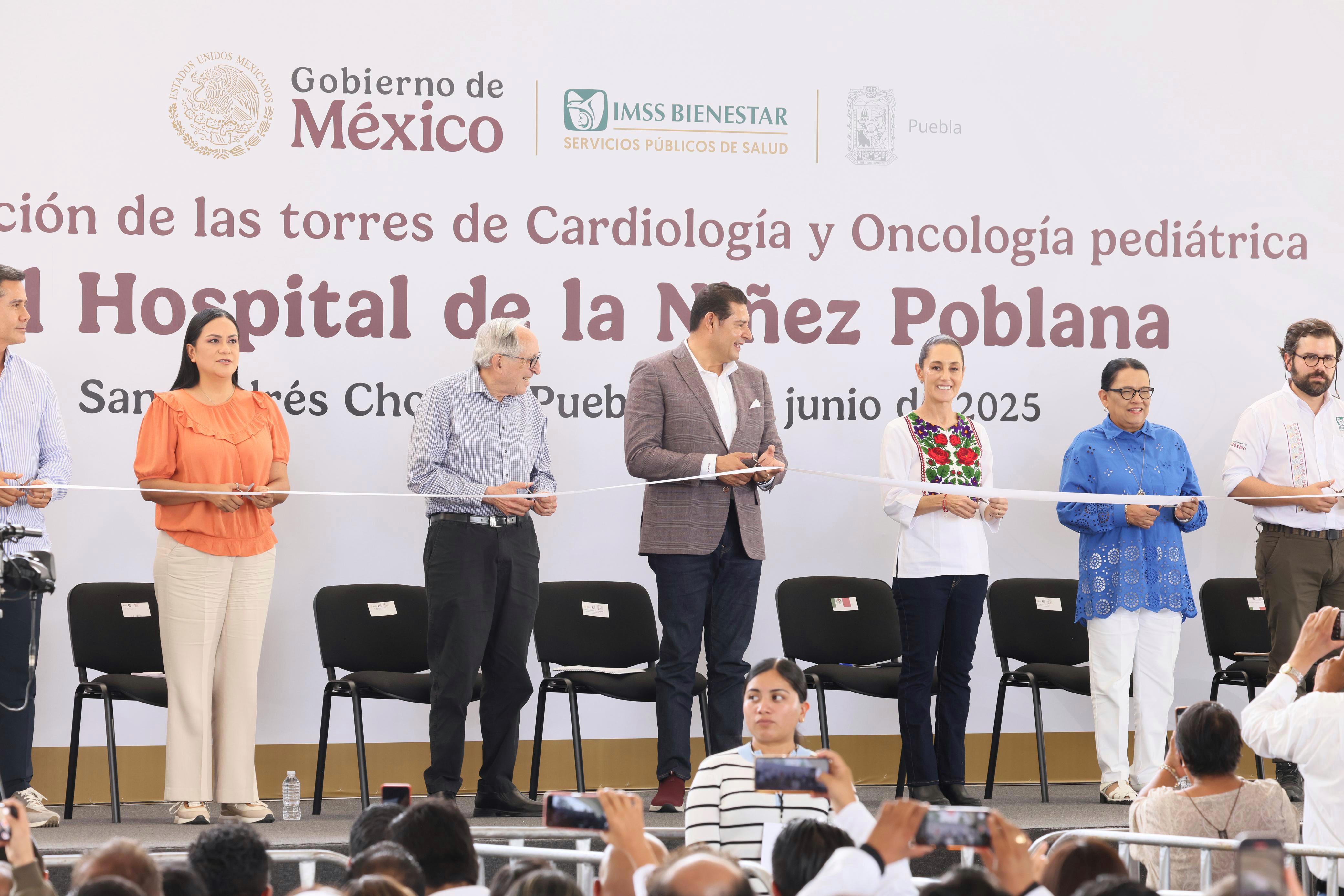 CIUDAD DE PUEBLA, Pue.- La presidenta Claudia Sheinbaum inauguró dos nuevas torres médicas en el Hospital de la Niñez Poblana que representan una mejora en la atención para niñas y niños enfermos de cáncer y con problemas cardíacos. La mandataria explicó que este hospital no le pide nada a ningún otro del mundo pues cuenta con los mejores equipos, las mejores instalaciones. “Es algo realmente único y extraordinario”.