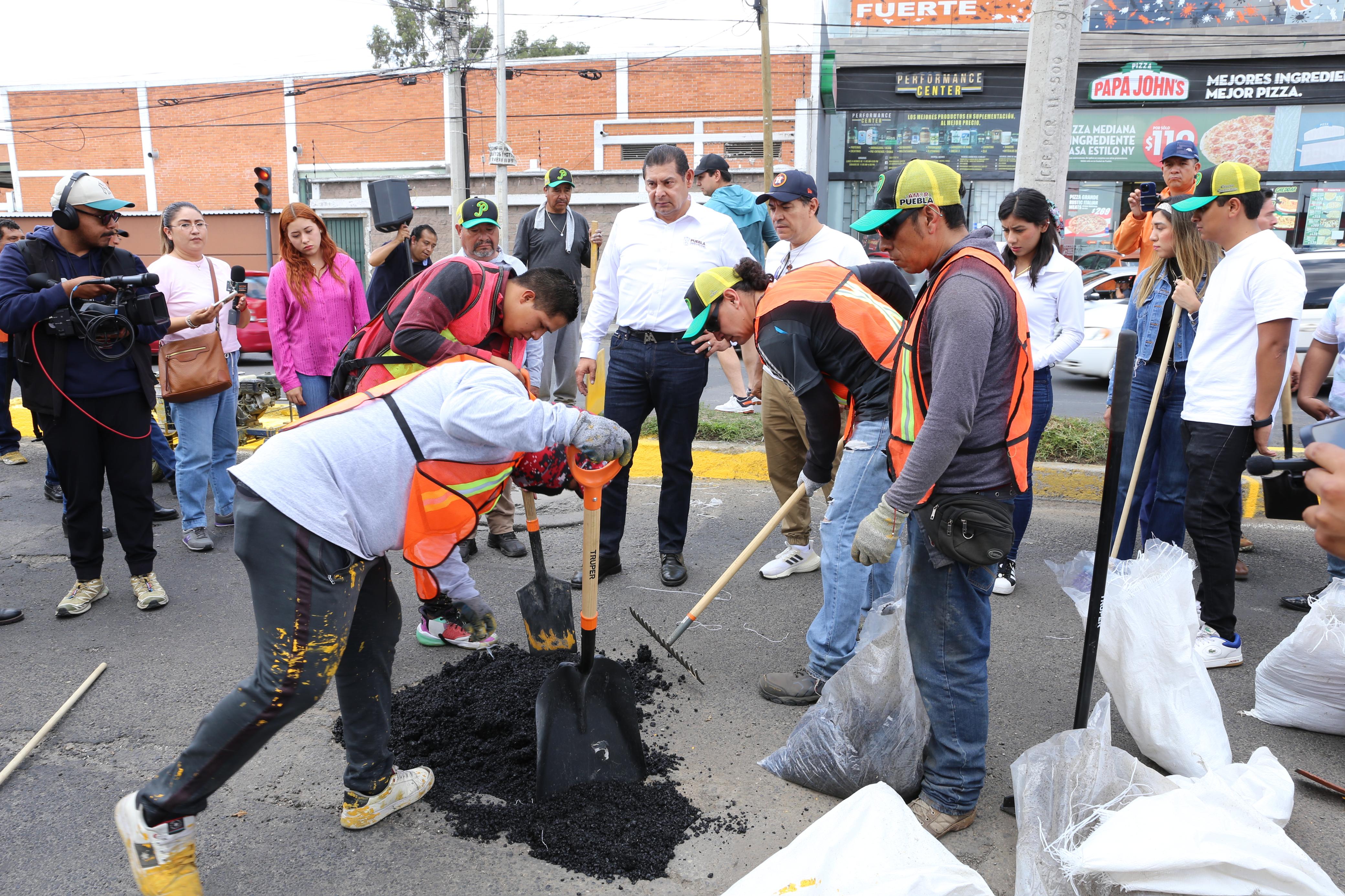 -“Los poblanos nos pidieron que bacheáramos y eso hacemos, de lunes a domingo, de día y de noche”, afirmó el mandatario.