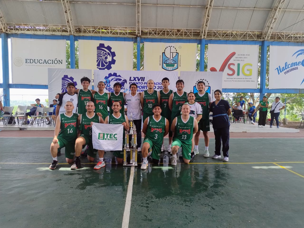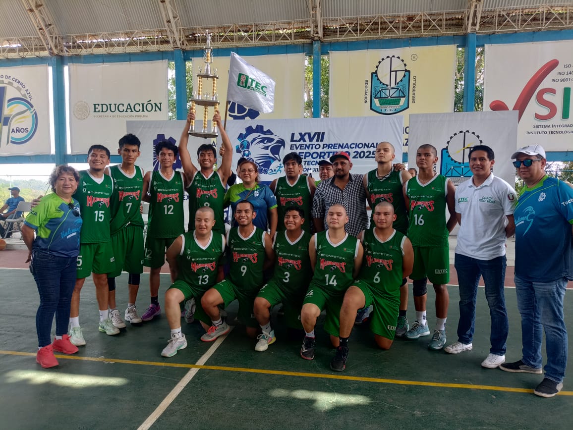 CERRO AZUL, Veracruz.– Como resultado del esfuerzo y dedicación, el equipo varonil de baloncesto del Instituto Tecnológico Superior de Teziutlán (TecNM Teziutlán) obtuvo el primer lugar en el LXVII Evento Prenacional Deportivo que organiza el Tecnológico Nacional de México (TecNM), Región XII, tras imponerse con marcador de 73 a 37 ante el equipo anfitrión.