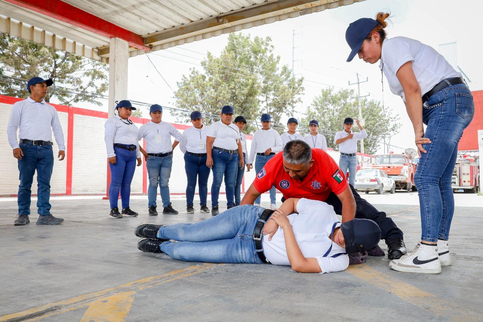 CIUDAD DE PUEBLA, Pue.- En cumplimiento al compromiso del Gobierno del Estado de Puebla, de promover la capacitación continua, las y los integrantes de las brigadas de Protección Civil de la Policía Auxiliar participaron en sesiones de formación especializadas en “Uso y Manejo de extintores”, “Primeros auxilios y Atención médica de urgencias” y “Evacuación, búsqueda y rescate”, con el objetivo de fortalecer sus habilidades y garantizar una respuesta eficaz ante situaciones de emergencia.