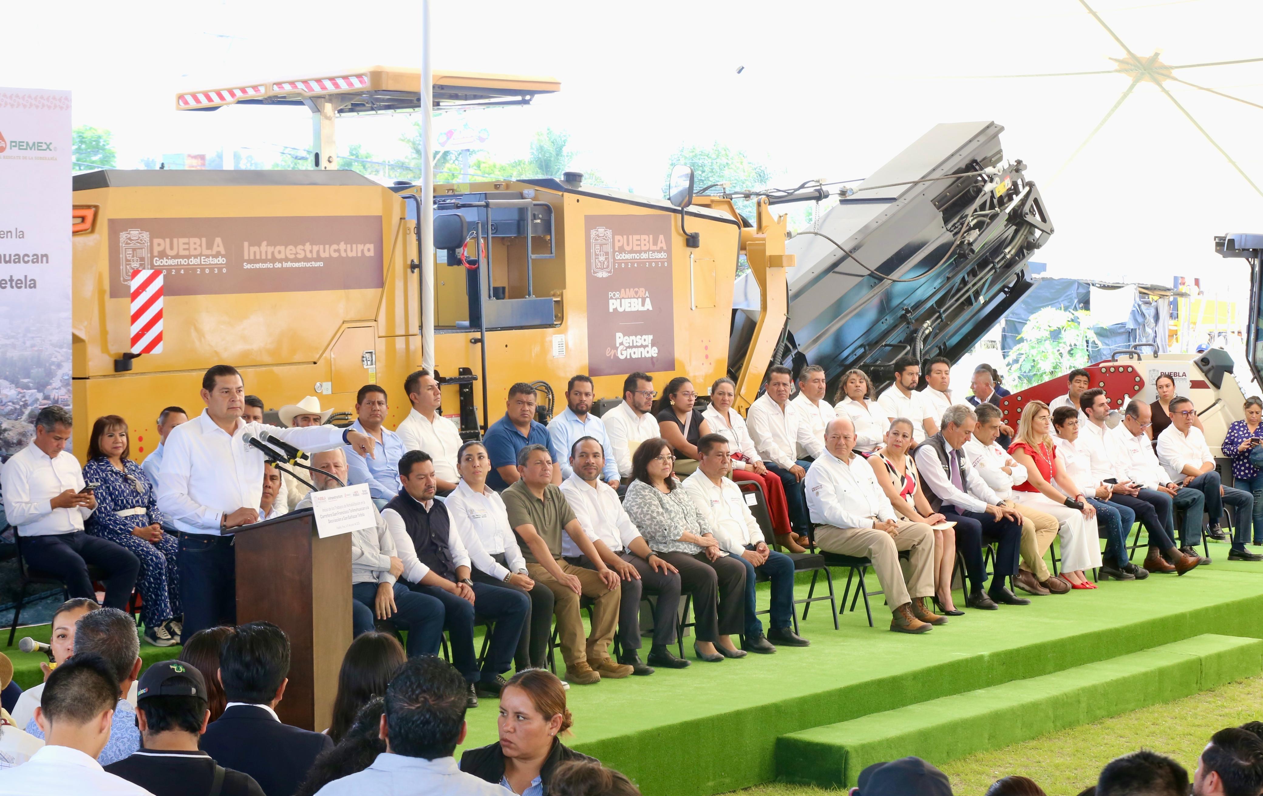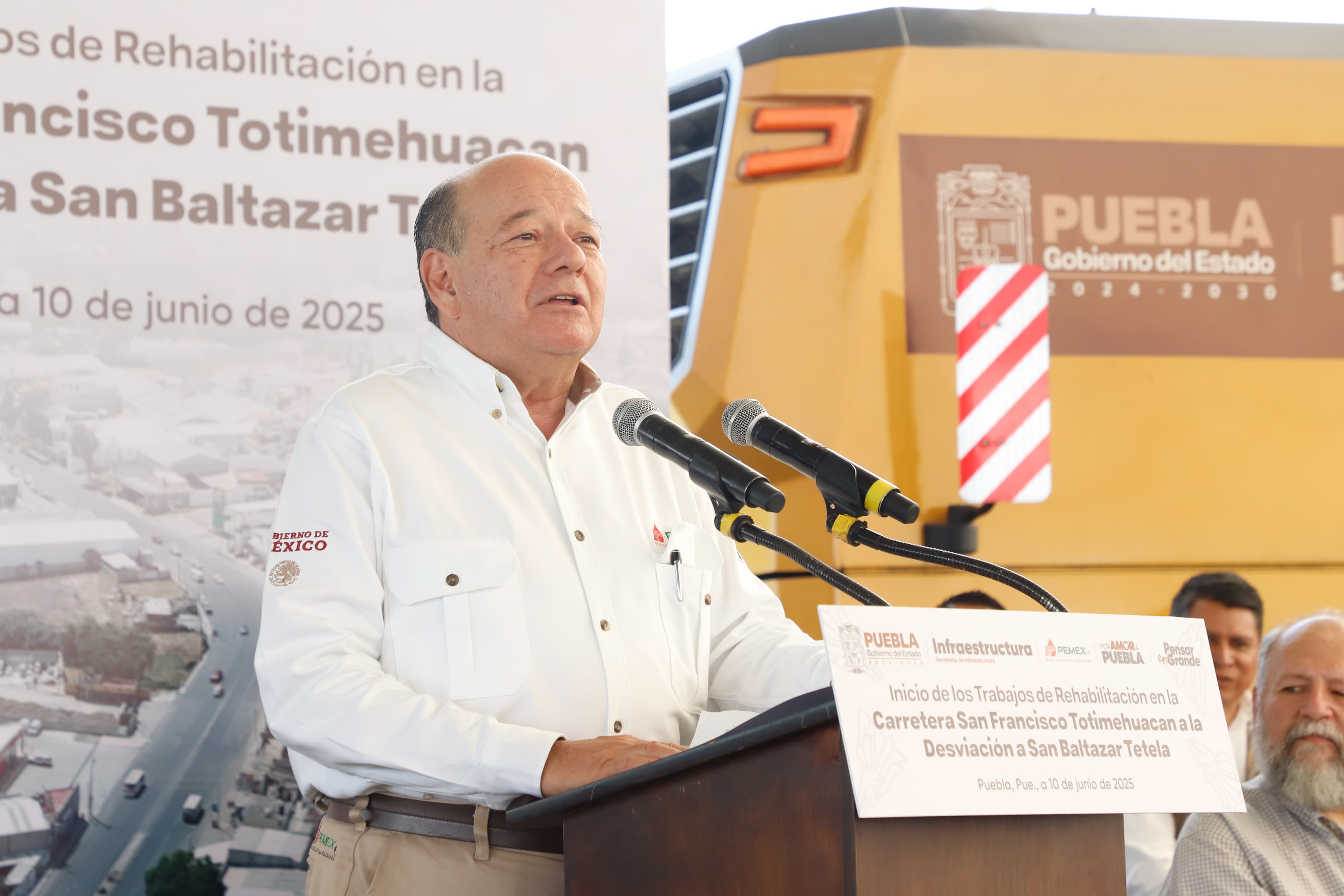 Petróleos Mexicanos (PEMEX) entregó al Gobierno del Estado de Puebla un donativo estratégico de 3 mil 500 toneladas de cemento asfáltico AC-20, 350 mil litros de gasolina magna y 330 mil litros de diésel, en el marco del inicio de los trabajos de rehabilitación de la carretera de San Francisco Totimehuacán a la desviación a San Baltazar Tetela, una vía clave para la conectividad regional.