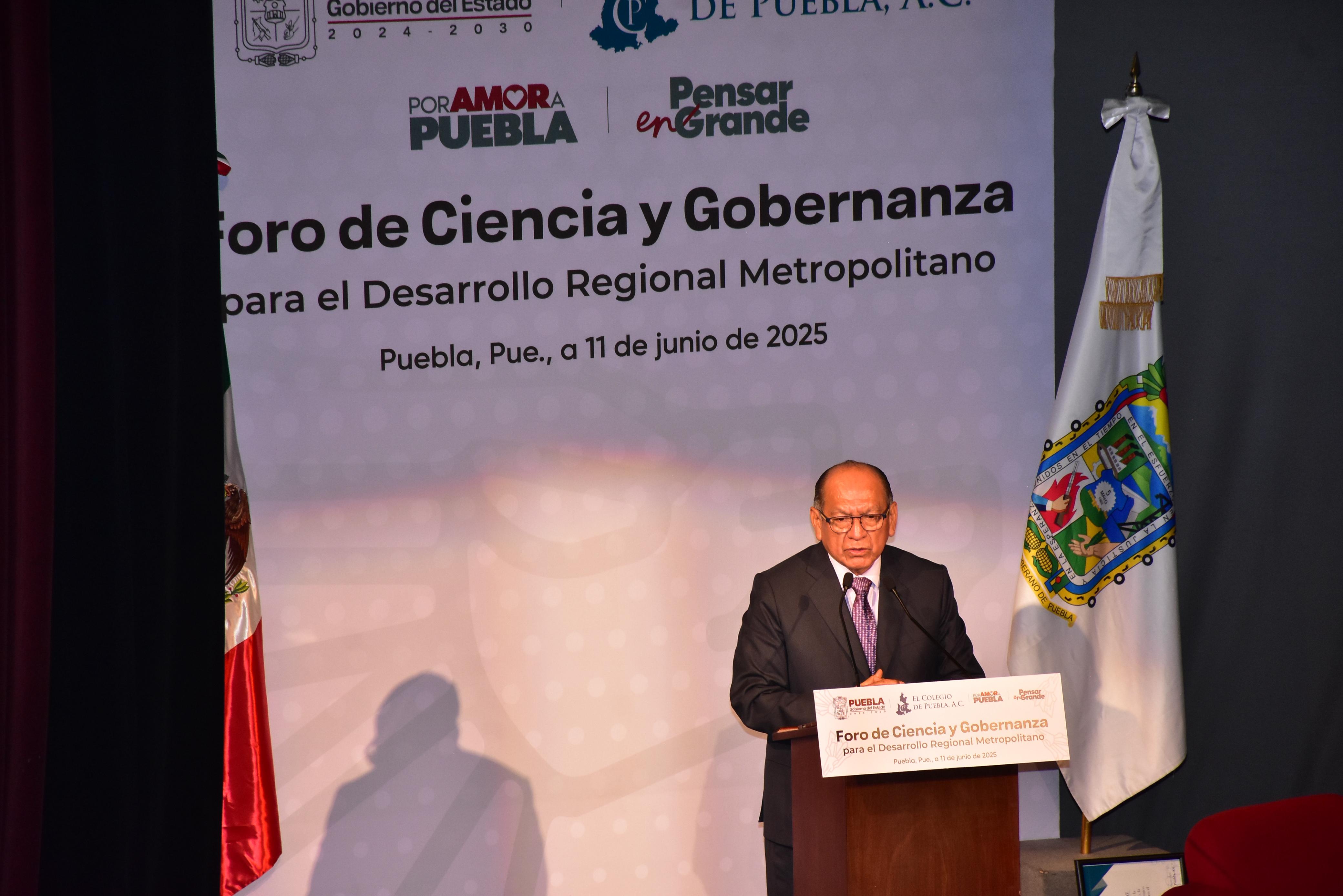 CIUDAD DE PUEBLA, Pue.- En representación del gobernador del Estado de Puebla, Alejandro Armenta, el secretario de Gobernación, Samuel Aguilar Pala, inauguró el Foro de Ciencia y Gobernanza para el Desarrollo Regional Metropolitano, organizado por el Colegio de Puebla, donde afirmó que será de gran importancia analizar las propuestas de las diferentes instancias presentes para retroalimentación y en beneficio de las y los poblanos.