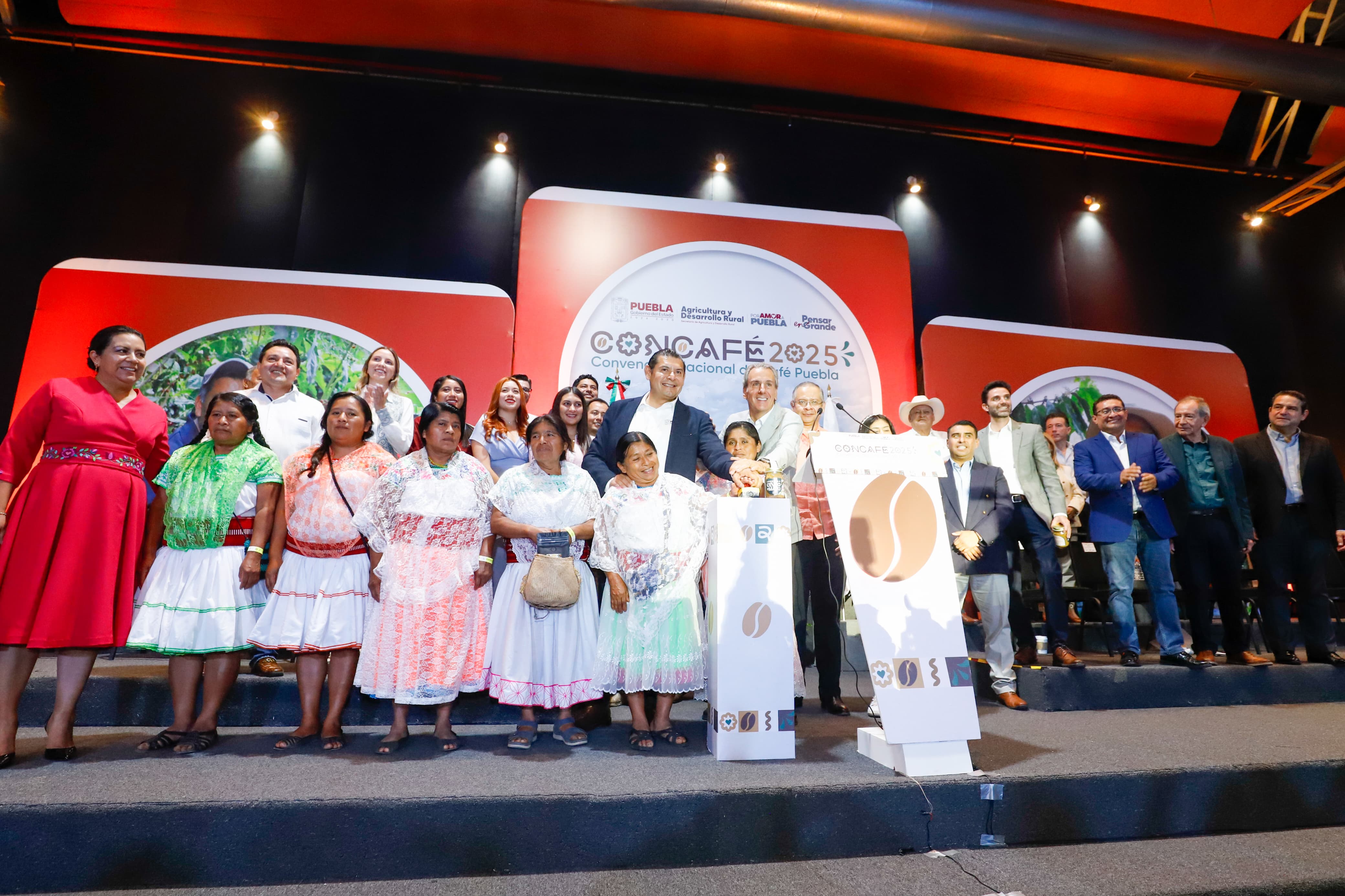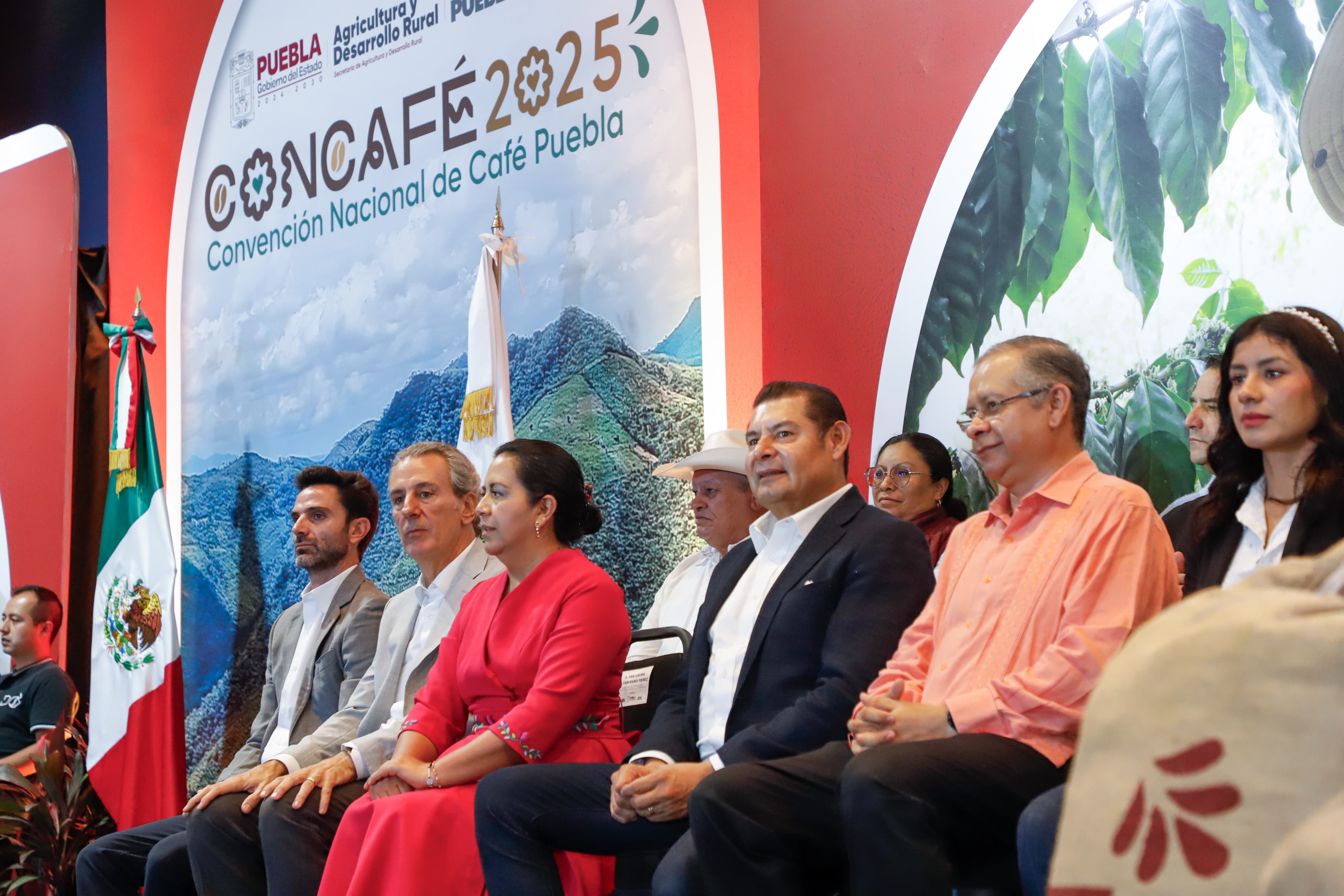 CIUDAD DE PUEBLA, Pue.- Con el compromiso de fortalecer el desarrollo económico de la cafeticultura y las cadenas de valor en la entidad, el gobernador Alejandro Armenta, inauguró la Convención Nacional de Café que por primera vez se desarrolla en la entidad, donde presentó el nacimiento de la marca poblana de Café Soluble “5 de Mayo”, como un producto de Puebla para México y de México para el mundo.