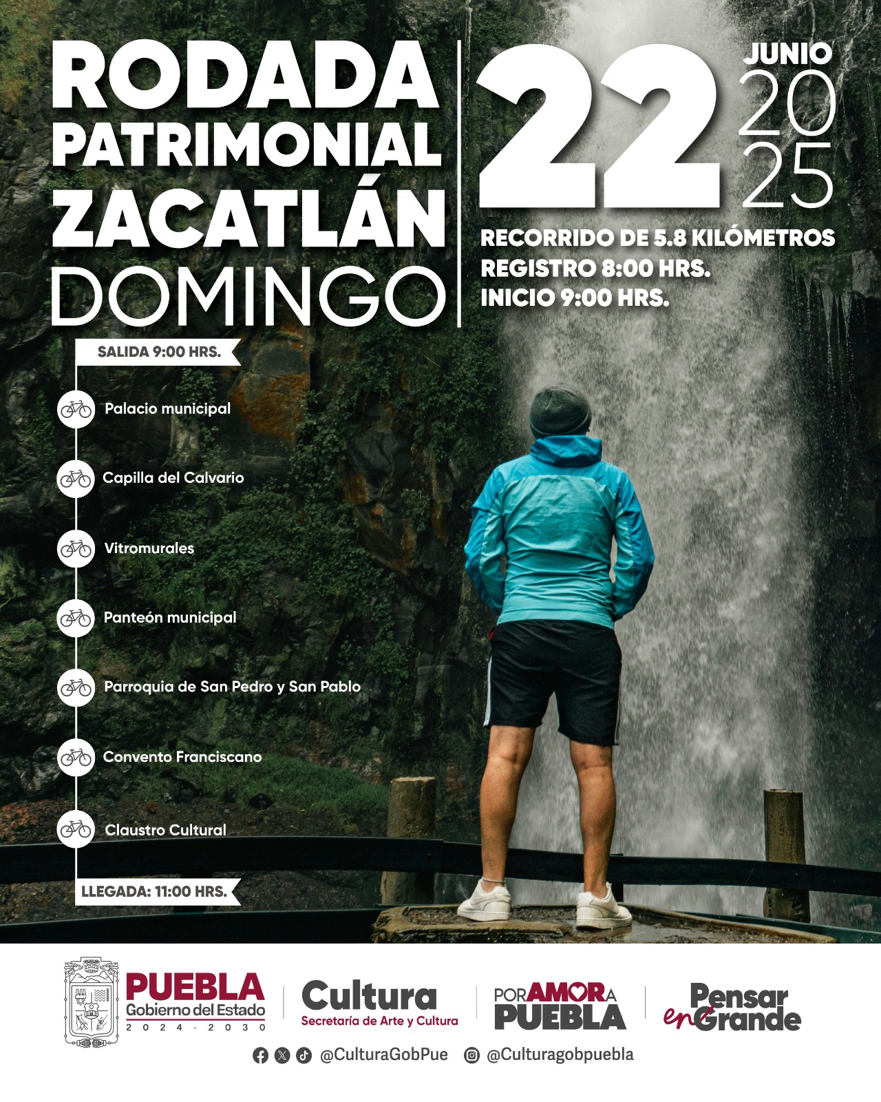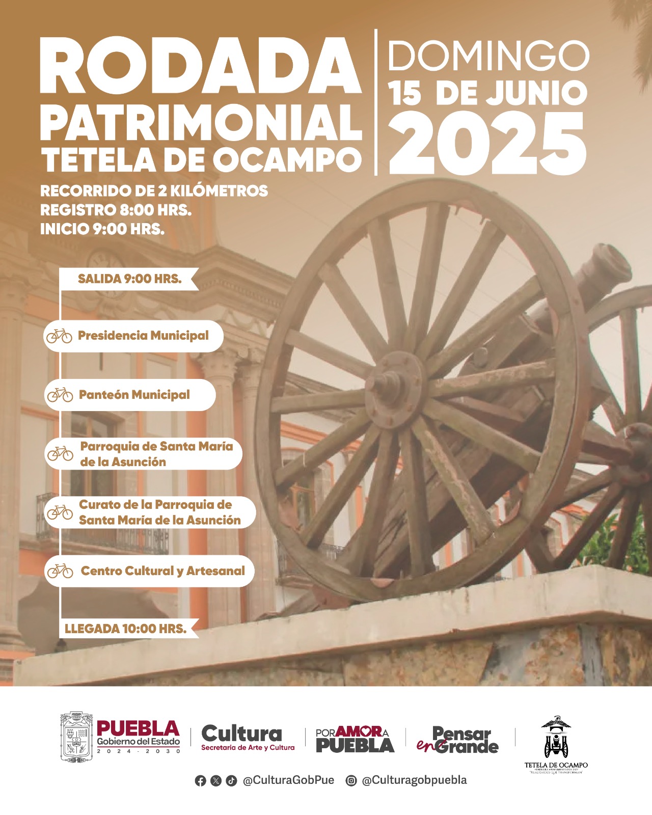 CIUDAD DE PUEBLA, Pue.- De acuerdo a la estrategia que el gobierno estatal impulsa para dar a conocer y promover la riqueza de los municipios poblanos, la Secretaría de Arte y Cultura invita a las rodadas patrimoniales de junio, que tendrán lugar el domingo 15 en Tetela de Ocampo y el 22 en Zacatlán.