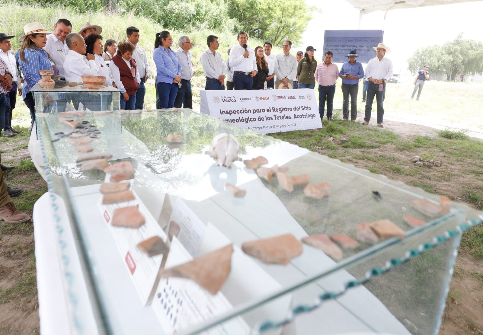 ACATZINGO, Pue.- Con una visión donde el patrimonio es un tesoro colectivo que se debe preservar, proteger e impulsar, el gobernador de Puebla, Alejandro Armenta, en compañía del director del Centro INAH-Puebla, Manuel Villarruel Vázquez, encabezaron un recorrido en el sitio arqueológico localizado en la comunidad de Los Teteles, con el objetivo de ubicarlo en los ojos del mundo y el municipio sea un sitio turístico-comercial que rescate su esplendor.