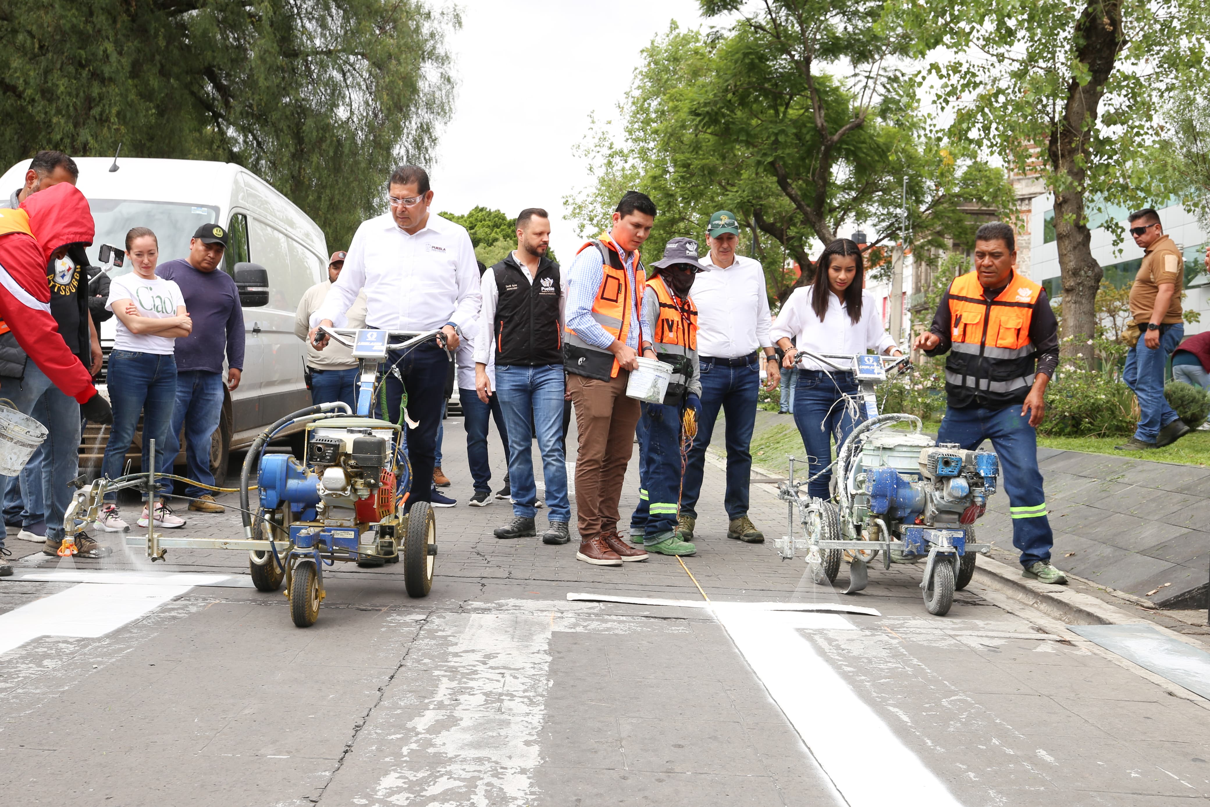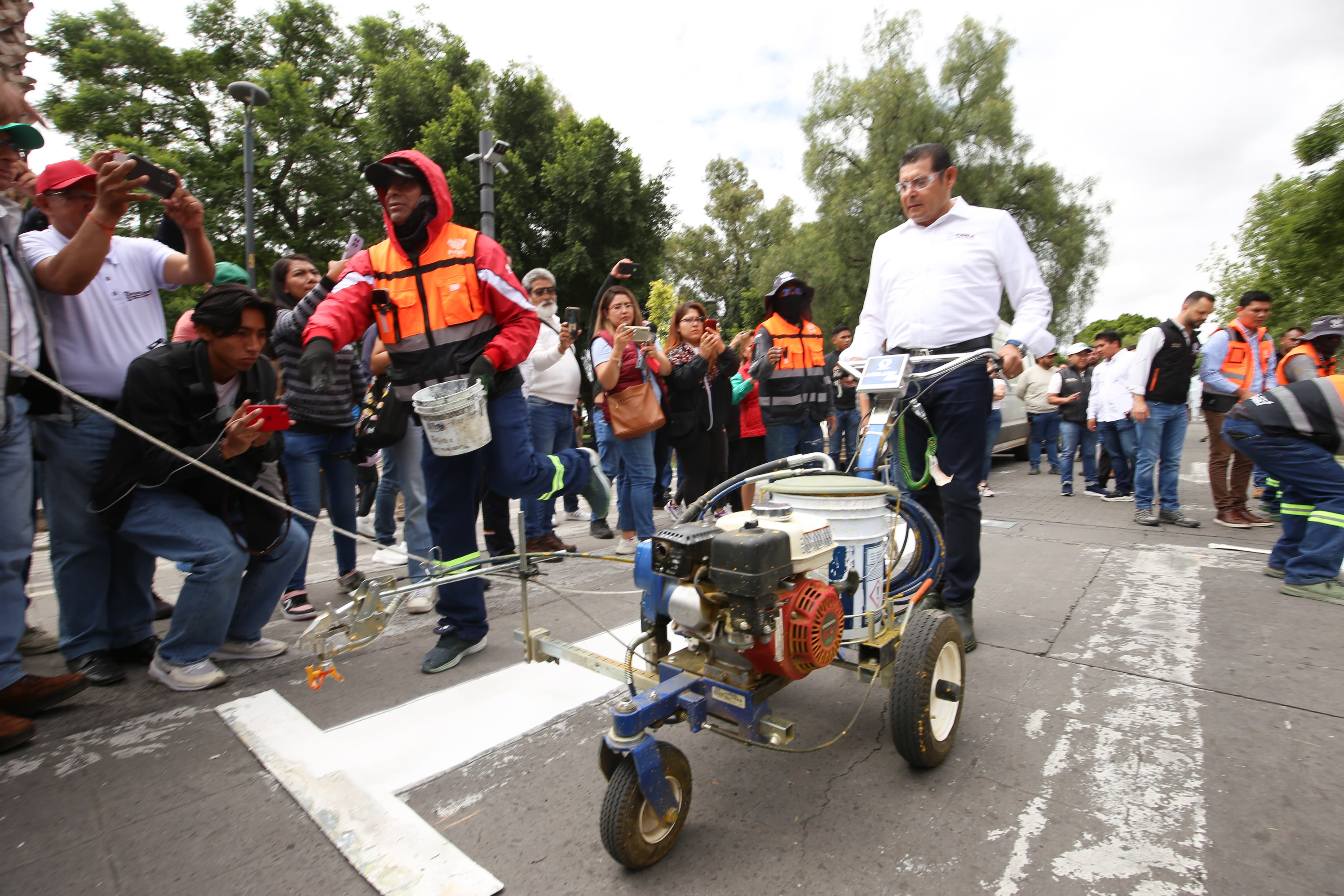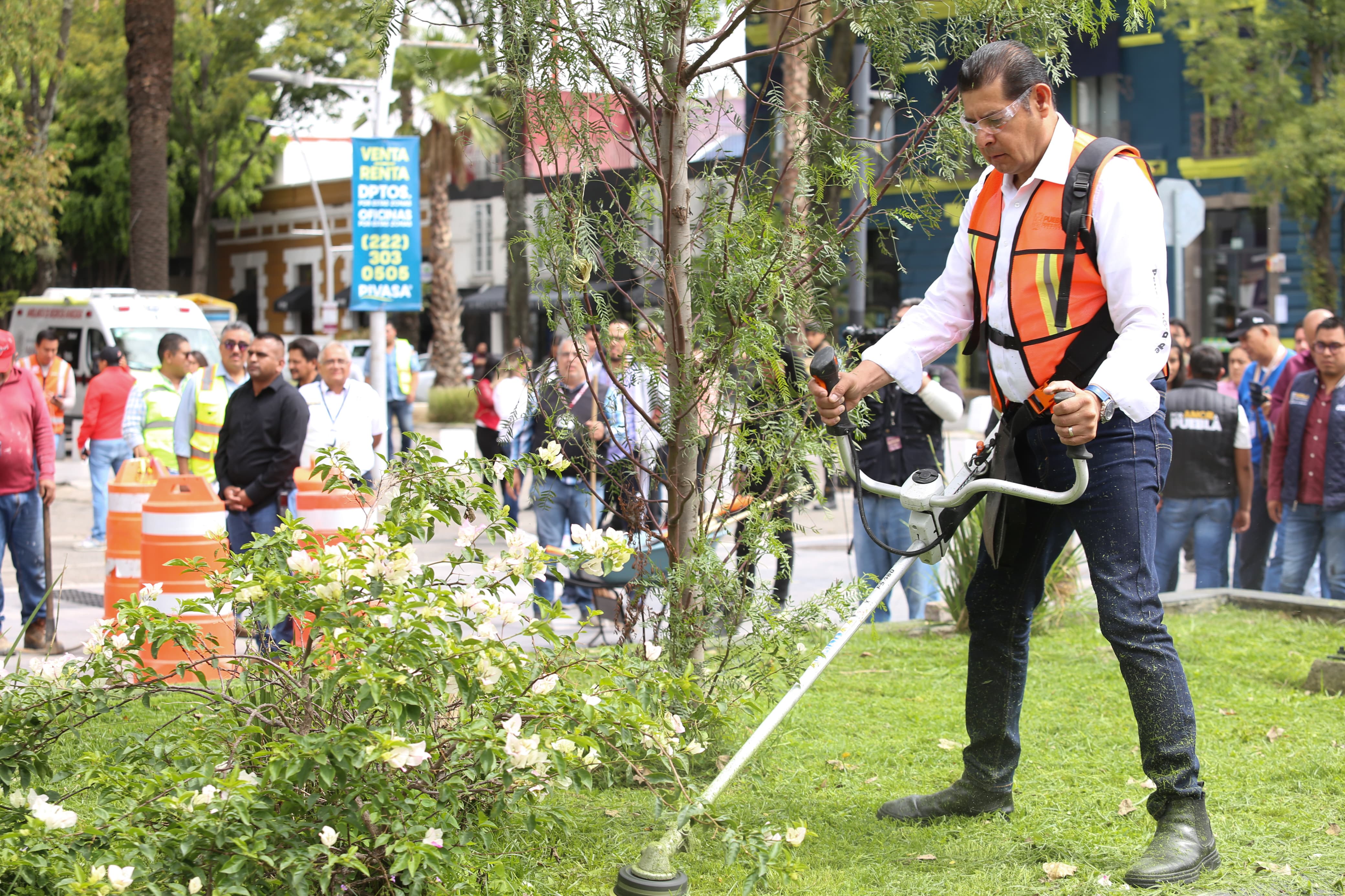 Acompañado por el presidente municipal José Chedraui, el mandatario impulsó una jornada de limpieza que incluyó pinta de bolardos, rehabilitación de pasos peatonales, poda de camellones y mantenimiento en la zona del Paseo Bravo como la fuente histórica frente al mausoleo de Nicolás Bravo, exgobernador e insurgente.