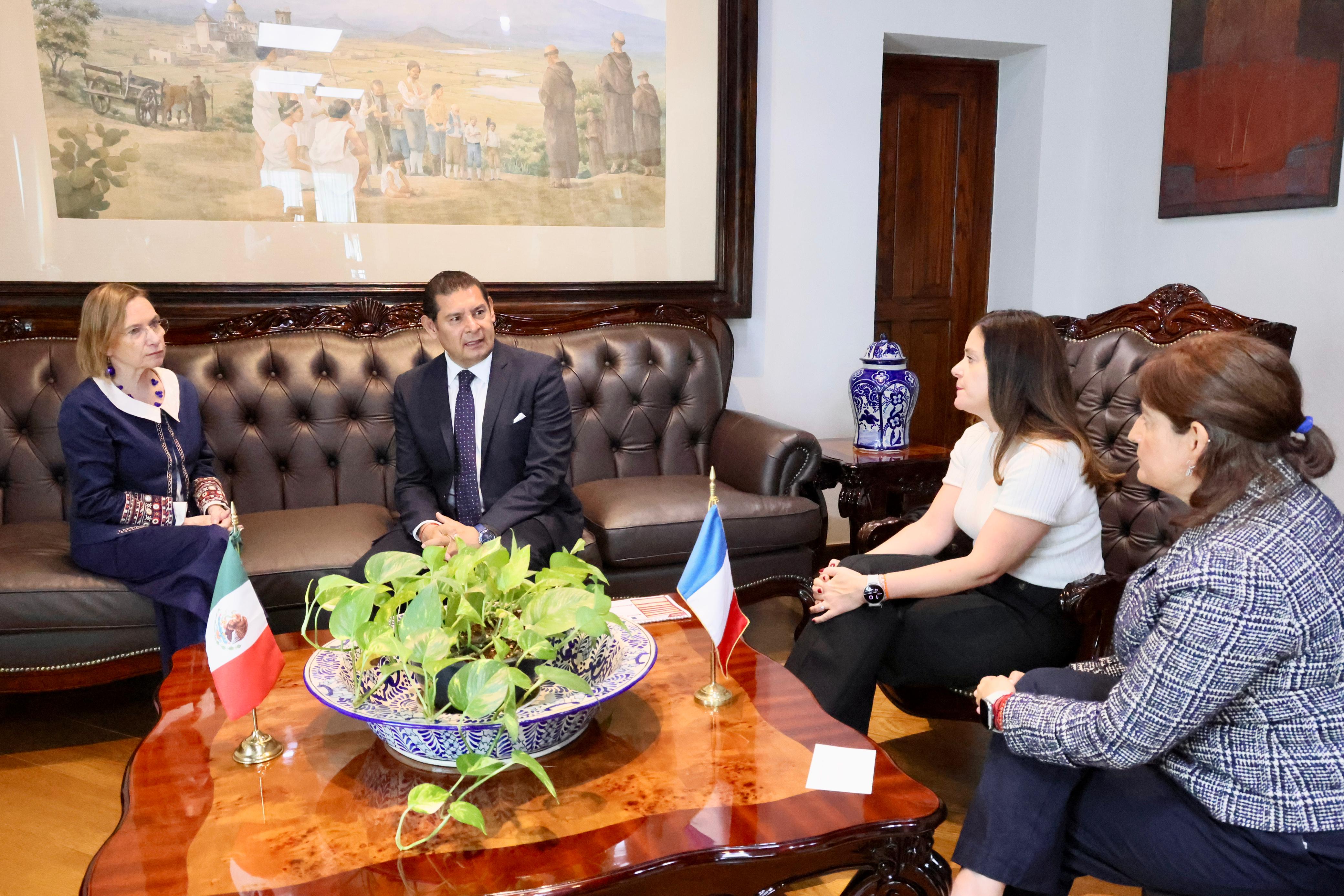CIUDAD DE PUEBLA, Pue. – En el marco de una reunión encabezada por el Gobernador Alejandro Armenta y la Embajadora de Francia en México, Delphine Borione, autoridades de ambos países reafirmaron su compromiso de fortalecer los lazos de cooperación bilateral con acciones concretas en materia educativa, tecnológica, cultural y económica, alineadas con el Plan México y el Plan Francia 2030.