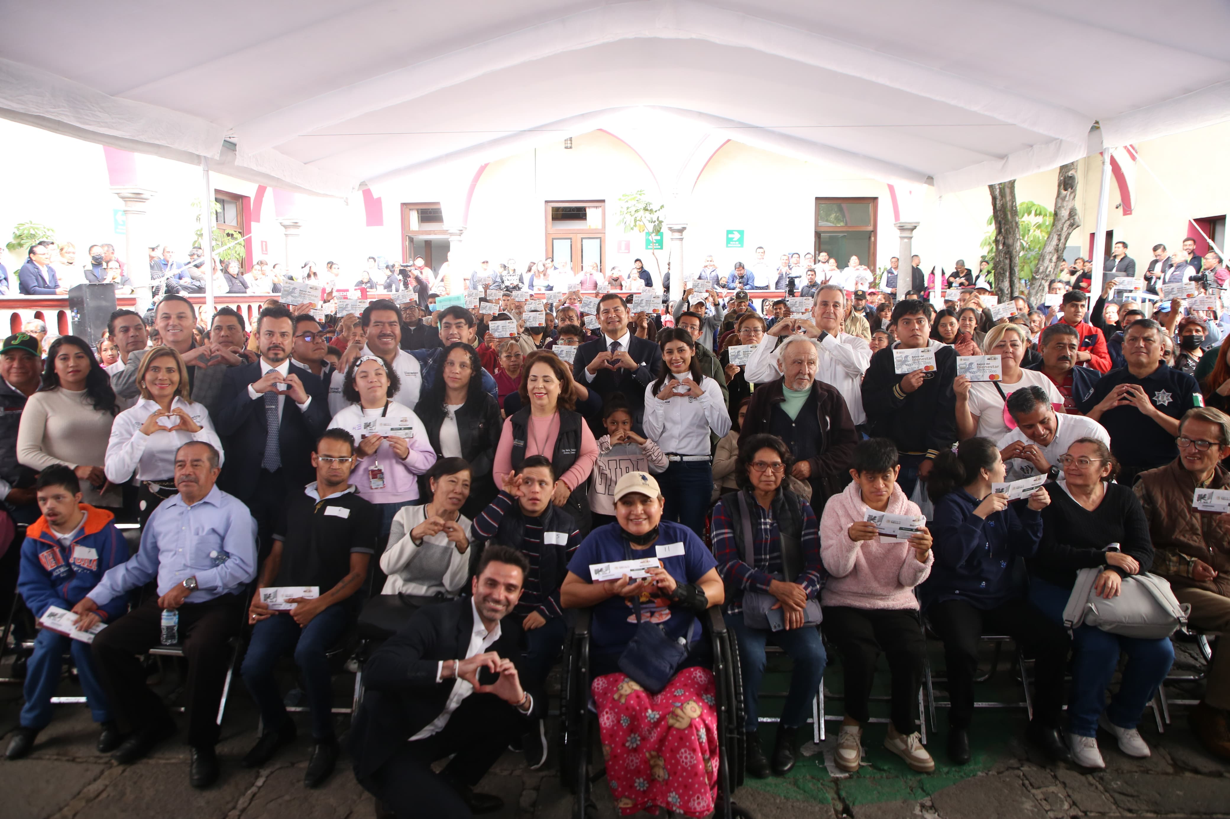 -El gobernador de Puebla, Alejandro Armenta encabezó la entrega de 200 tarjetas del Programa Pensión para el Bienestar de las personas con discapacidad permanente.