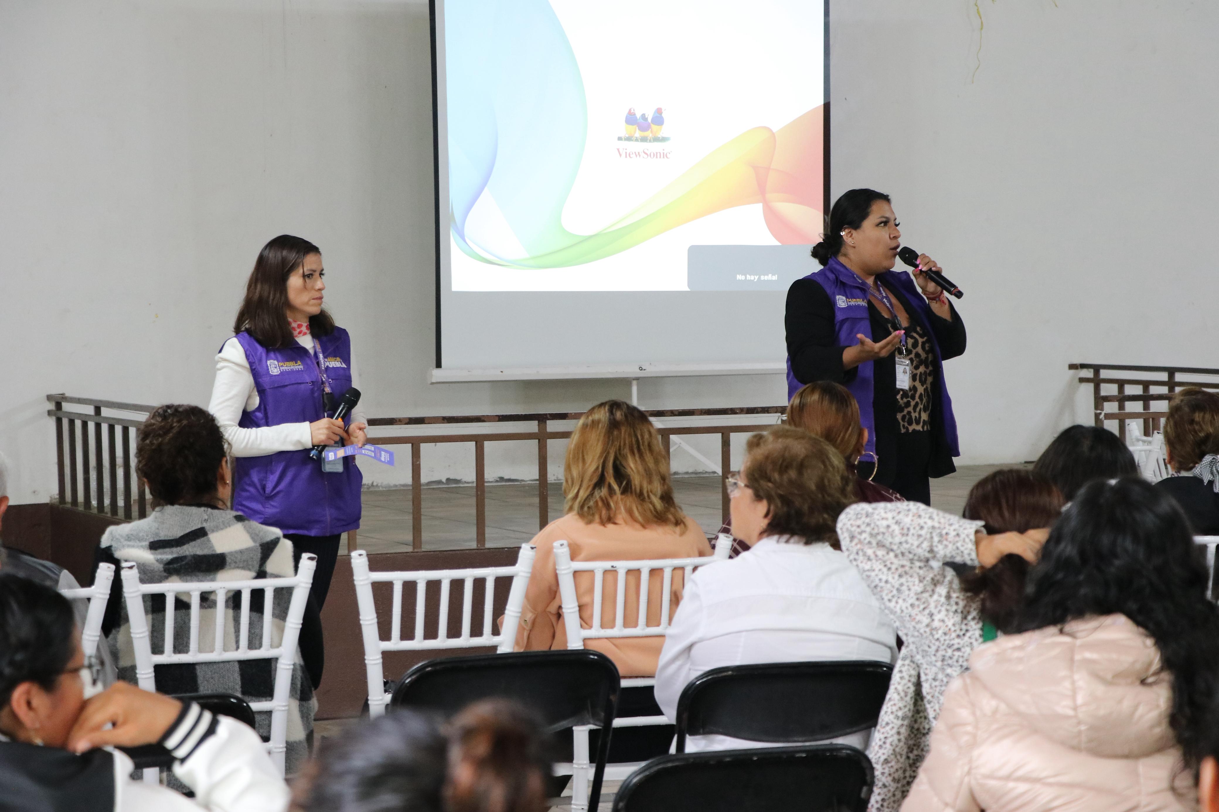 Durante la jornada se impartieron capacitaciones en materia del Modelo de Atención a Mujeres en Situación de Violencia mediante intervención de DUPLA Especializada, Equidad de Género y Prevención de la Violencia a fin de fortalecer la atención integral a las ciudadanas en sus territorios, con énfasis en el acceso a la justicia y la prevención y la no discriminación.