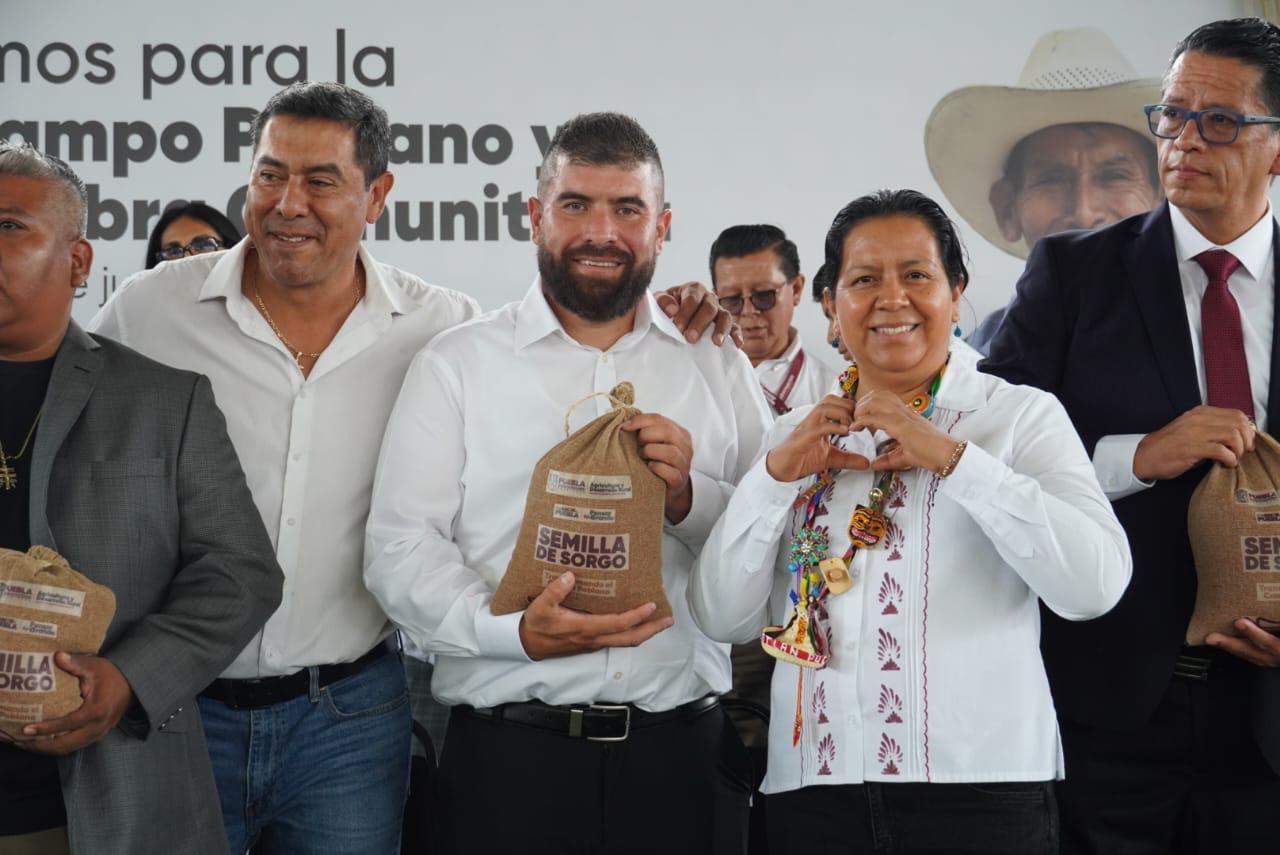 Acatlán de Osorio, Pue., - Como parte de la estrategia de transformación para el campo poblano, este día se llevó a cabo la entrega de insumos estratégicos para la producción en el municipio de Acatlán de Osorio. En representación del gobernador Alejandro Armenta, el secretario de Gobernación, Samuel Aguilar Pala, encabezó el evento acompañado de la secretaria de Desarrollo Rural, Ana Laura Altamirano.