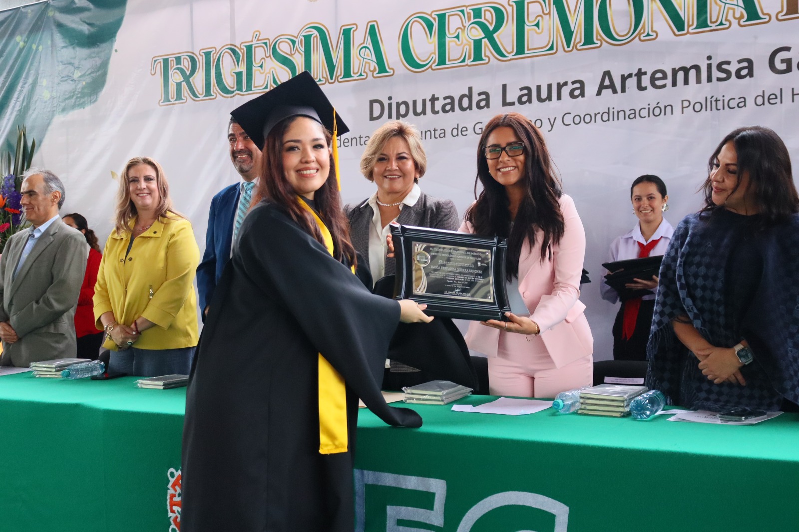El acto protocolario contó con la presencia de representantes de los tres órdenes de gobierno, entre quienes destacaron la diputada federal Marilyn Ballesteros; la diputada local Floricel González, en representación de la diputada Laura Artemisa García Chávez, madrina de la generación; y la presidenta municipal de Teziutlán, Karla Victoria Martínez Gallegos.