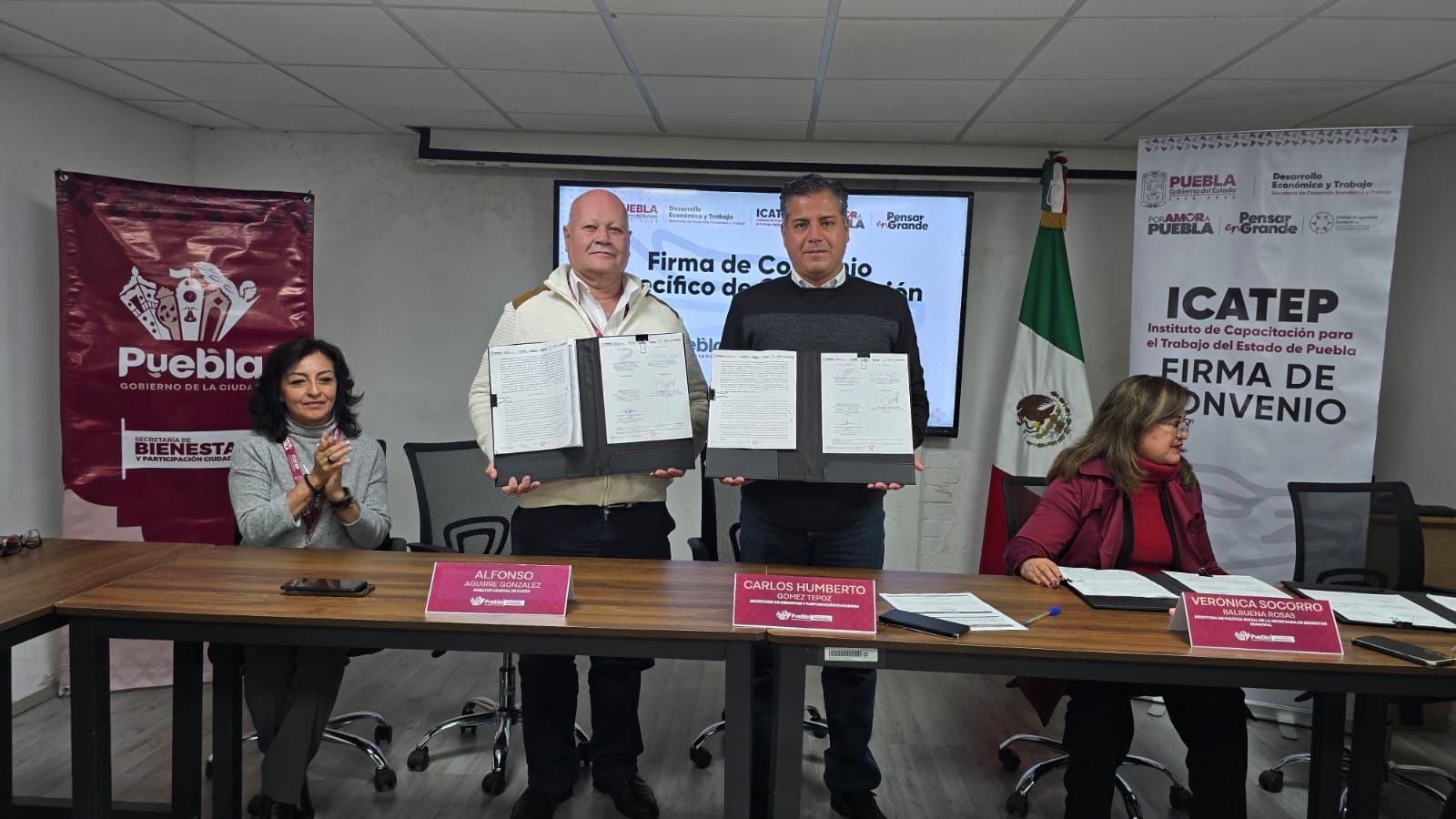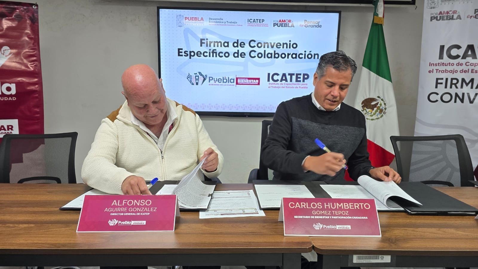 CIUDAD DE PUEBLA, Pue.– Derivado de la estrategia de la administración estatal que encabeza el gobernador Alejandro Armenta, el Instituto de Capacitación para el Trabajo del Estado de Puebla (ICATEP) firmó un convenio de colaboración con la Secretaría de Bienestar y Participación Ciudadana del Ayuntamiento, con el fin de beneficiar a 200 migrantes.