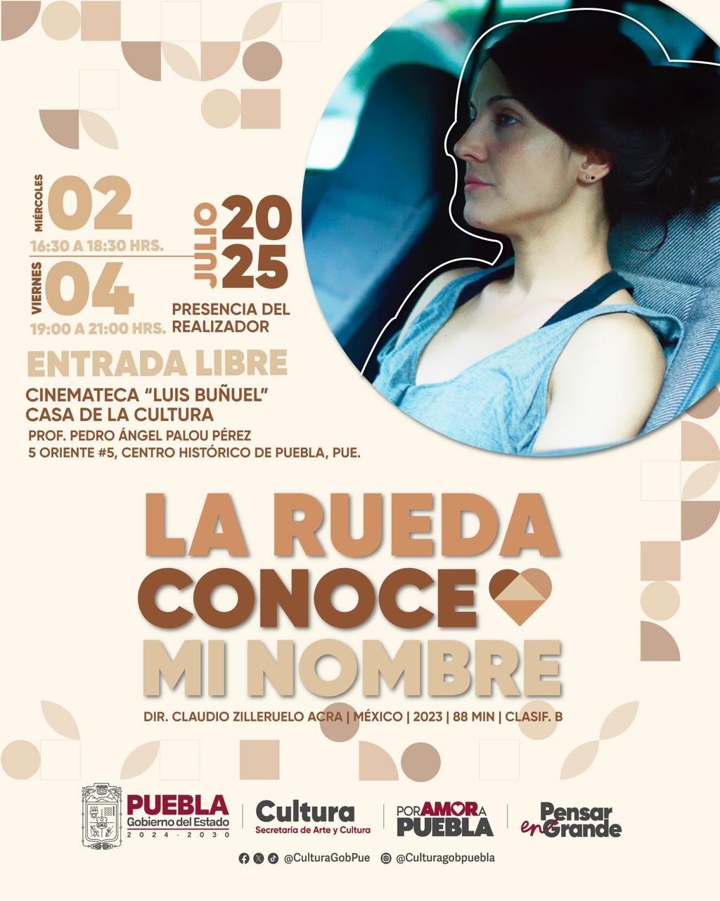 CIUDAD DE PUEBLA, Pue.- El cineasta Claudio Zilleruelo Acra visitará la ciudad de Puebla este viernes 04 de julio, durante la proyección de su película “La rueda conoce mi nombre”, que se llevará a cabo a las 19:00 horas en la Cinemateca “Luis Buñuel”, un espacio en el que el gobierno estatal, a través de la Secretaría de Arte y Cultura, brinda seguridad y acceso al séptimo arte para poblanas, poblanos y visitantes.